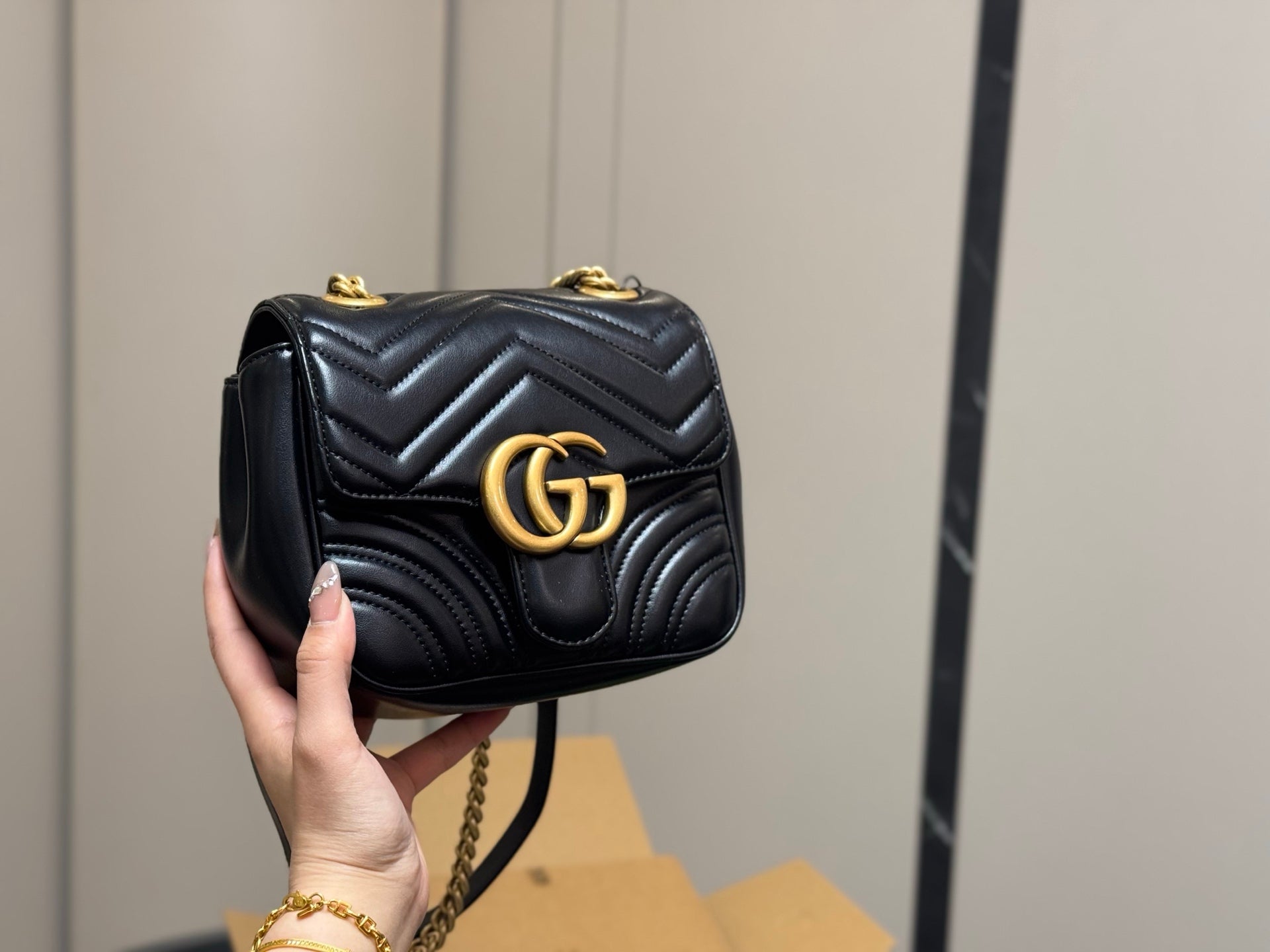 Introducing the Gucci GG Marmont Fang Fatty Folding Box Airplane Case, meticulously crafted from first-layer sheepskin. Measuring 18.16 cm, this elegant and versatile case is designed for both style and functionality. Experience exceptional quality and an outstanding price point, ensuring you enjoy luxury without compromise. Elevate your accessories collection with this authentic Gucci piece, perfect for travel and everyday use.