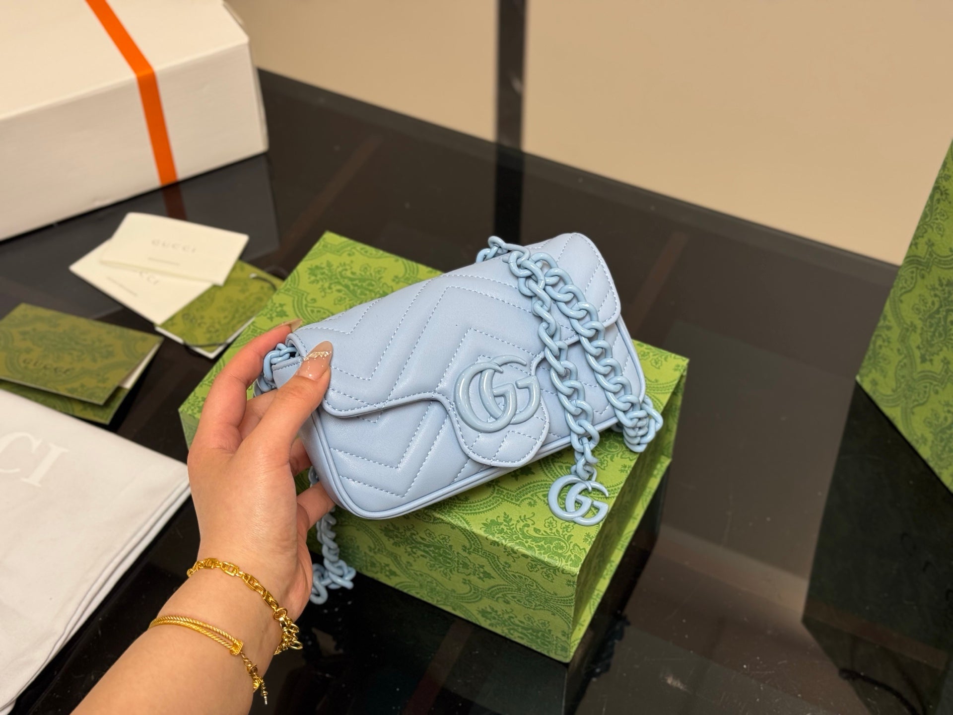 Introducing the Gucci GG Marmont Sheepskin Macaron Bag, a luxurious accessory crafted from high-quality sheepskin. Measuring 16cm, this chic bag is not only stylish but also cost-effective, making it a perfect addition to your collection. It comes beautifully packaged in a folding box along with a compact airplane case for easy travel. Experience the original quality of Gucci with this elegant piece that effortlessly elevates any outfit.
