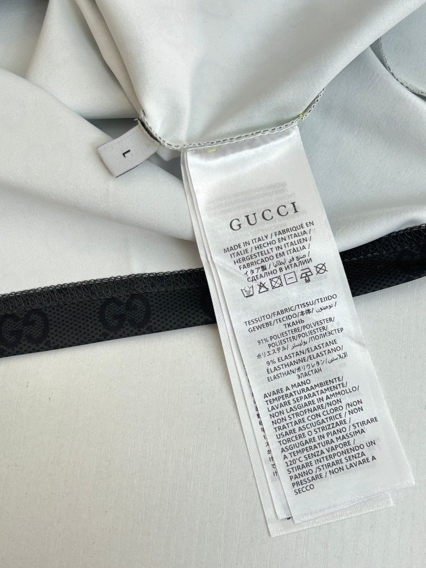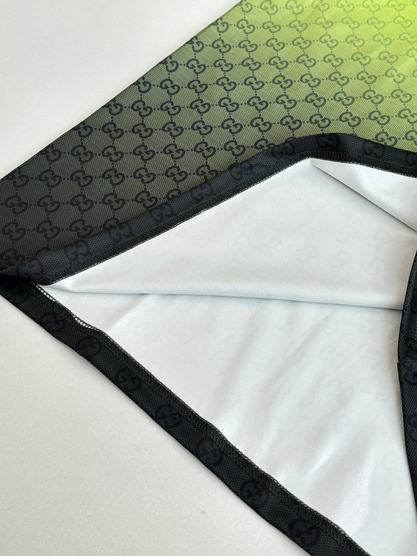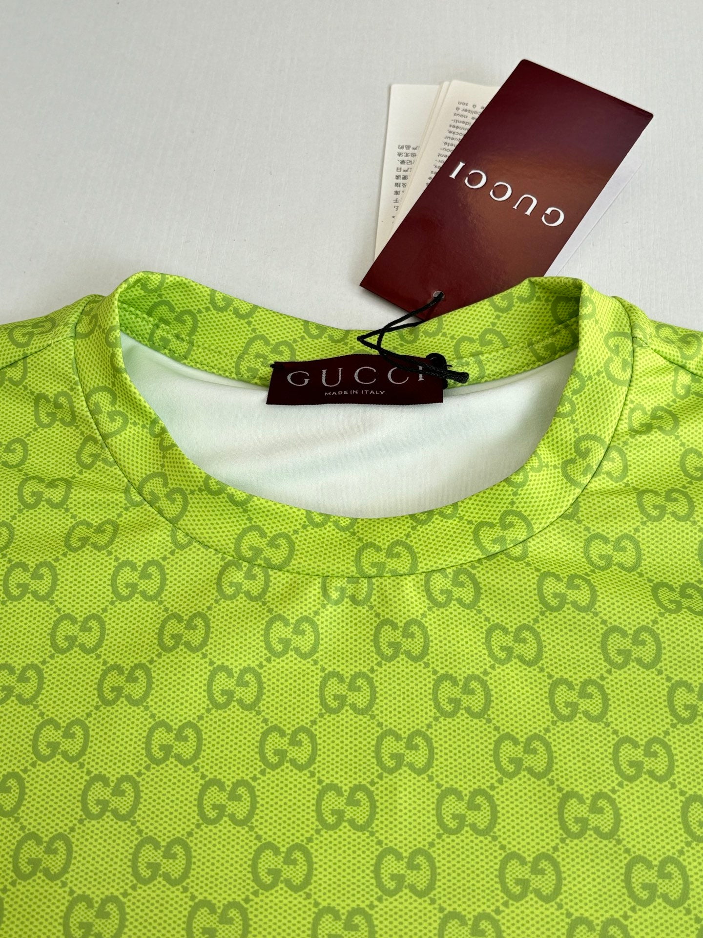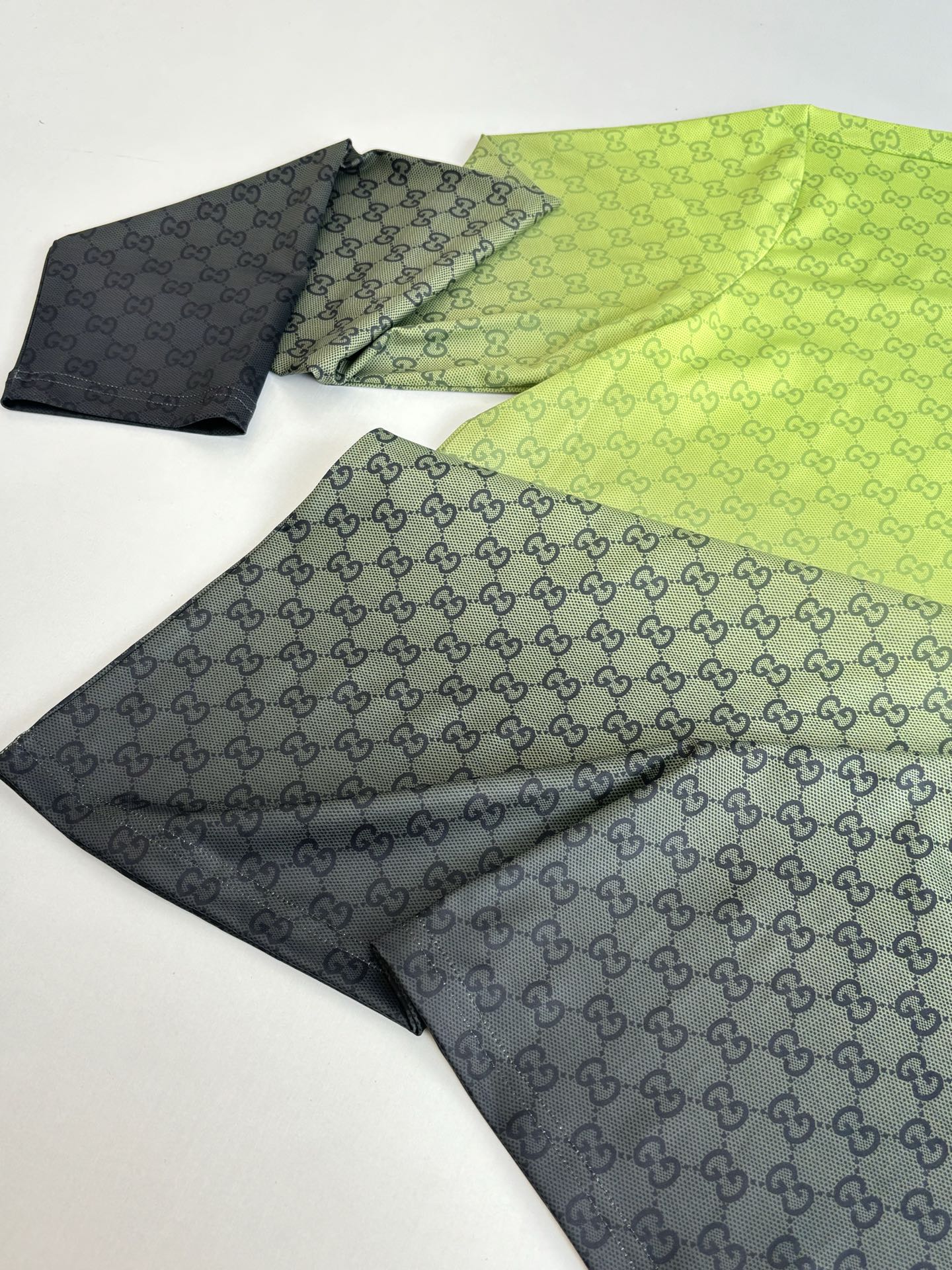 Elevate your wardrobe with the Gucci Gradient Print Long-Sleeve T-Shirt. Crafted from premium jersey cotton, this stylish tee showcases an eye-catching gradient design that transitions from vibrant lime green to deep black. Featuring a comfortable round neck and long sleeves, it offers both versatility and a modern flair. Perfect for making a statement, this T-shirt is available in sizes S, M, L, and XL. Experience the unique texture and iconic Gucci pattern with this standout piece.