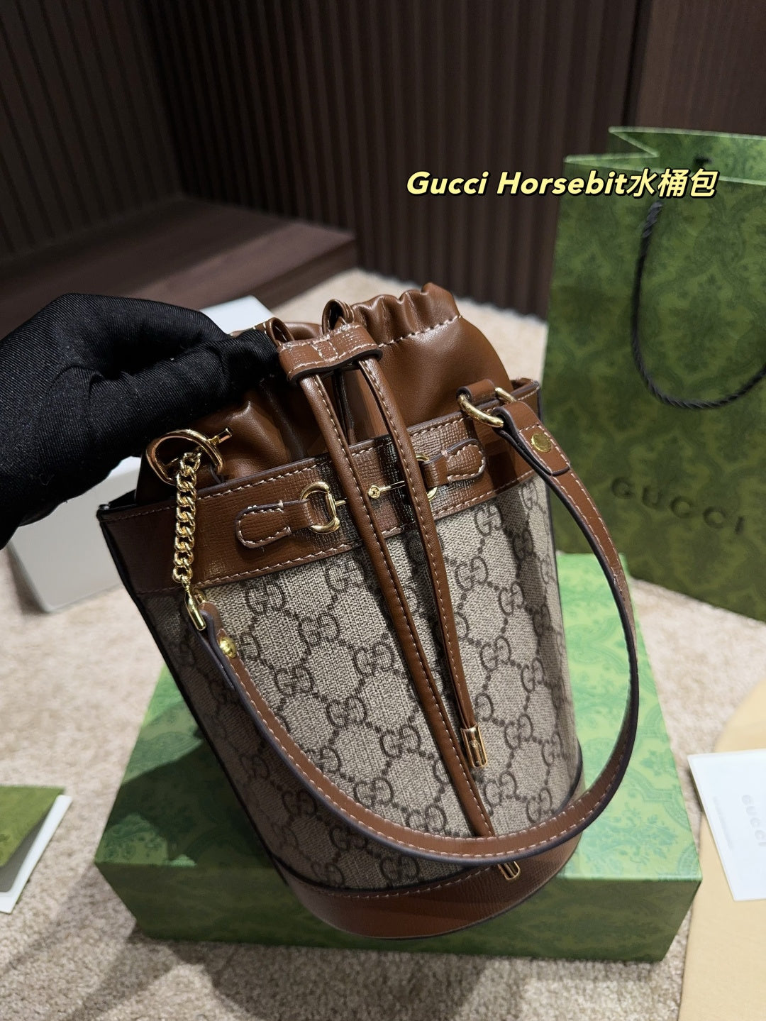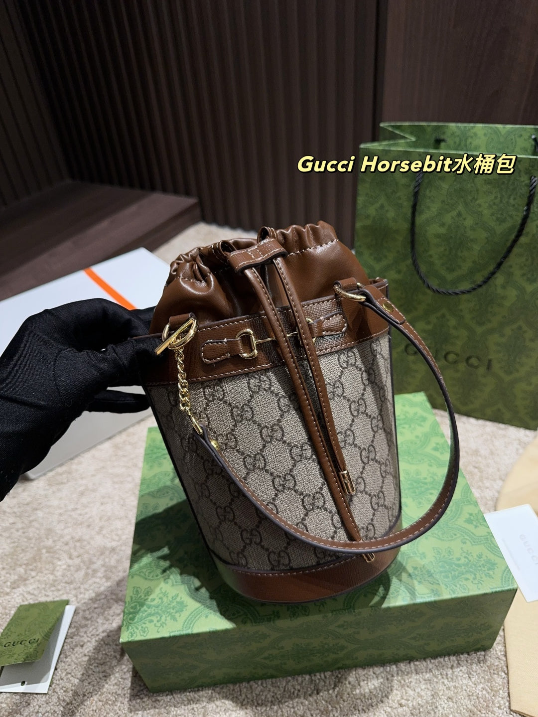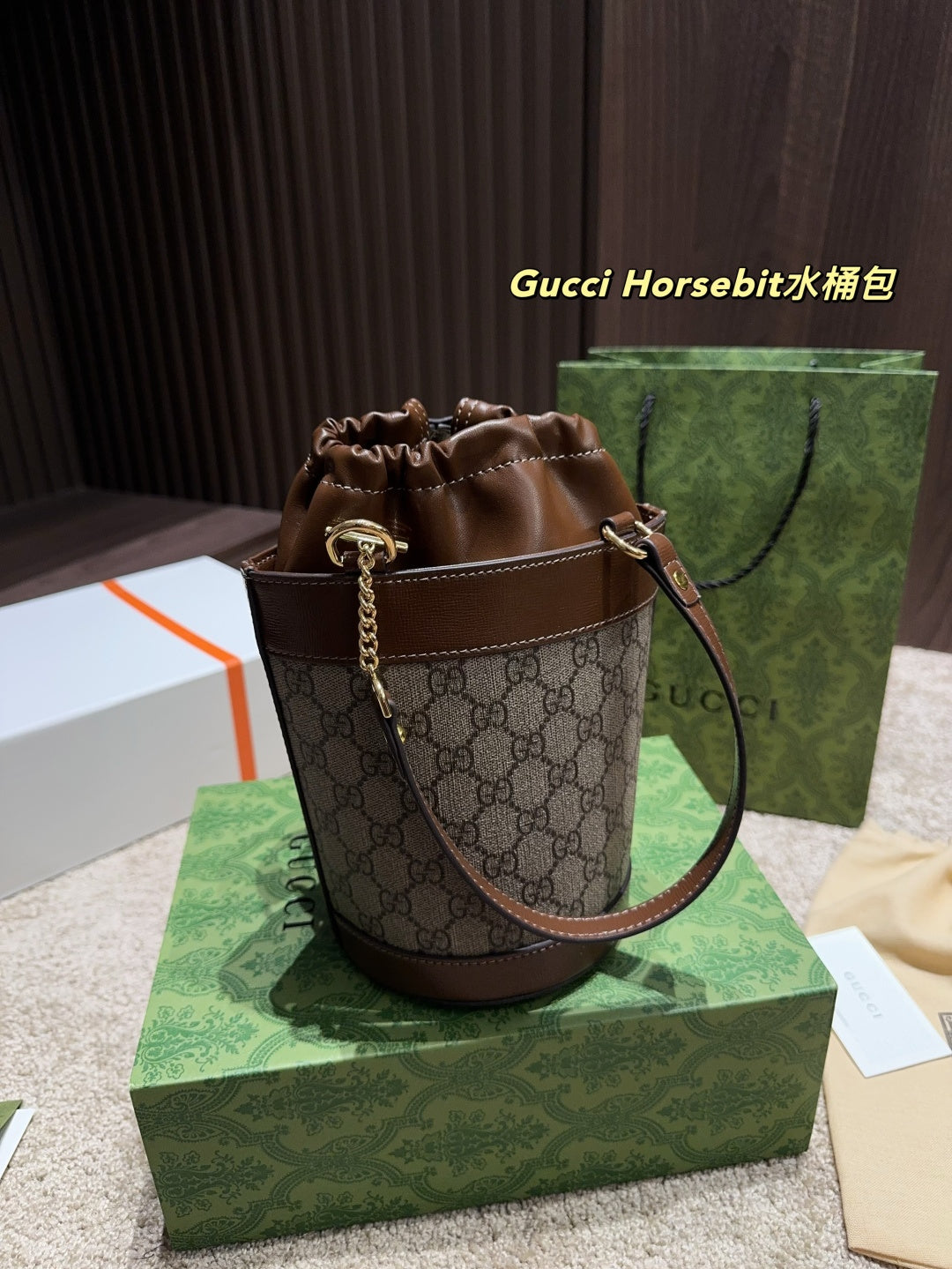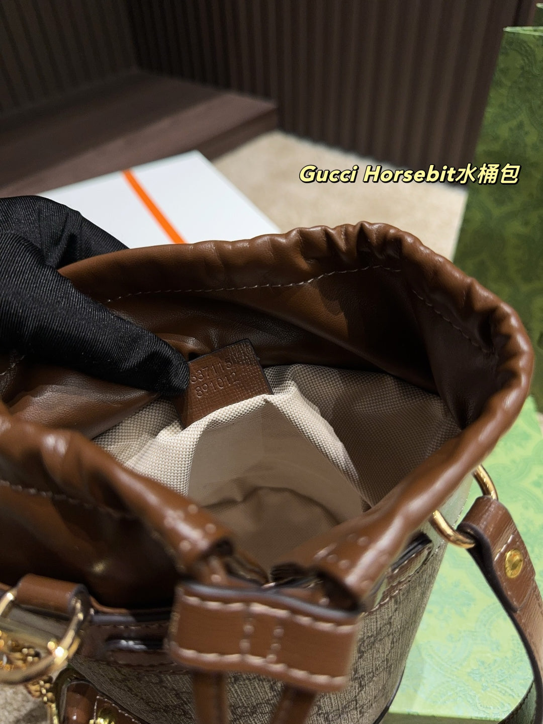 Elevate your style with the iconic Gucci Horsebit Bucket Bag, sized at 17.19. This chic accessory features the signature horsebit detail, embodying luxury and sophistication. Crafted from high-quality materials, this bag is perfect for both casual outings and upscale events. Its spacious interior allows for effortless organization, while the stylish design makes it a standout piece in any wardrobe. Make a statement and enhance your collection with this timeless Gucci bag.