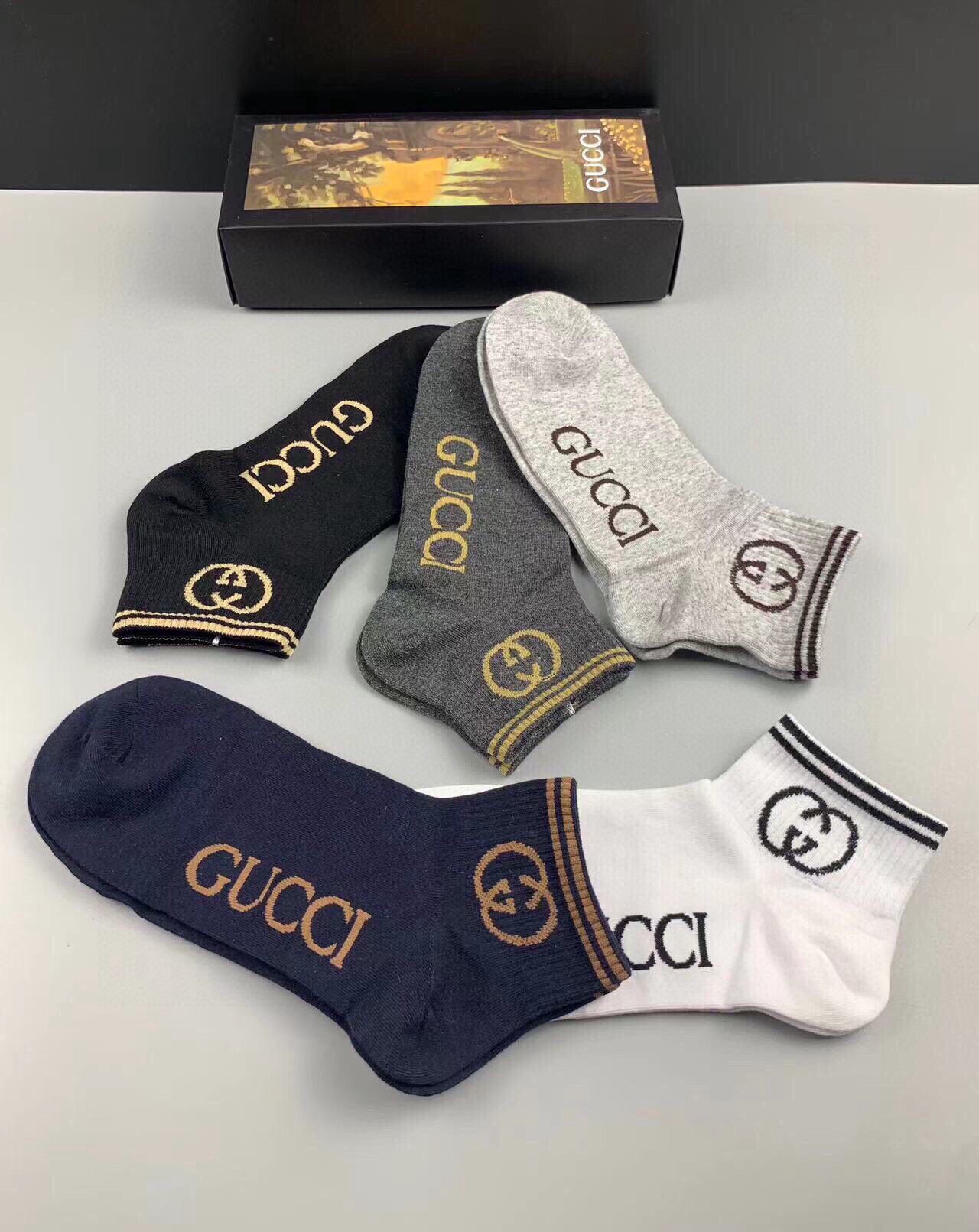 Elevate your style with the new Gucci Jacquard Cotton Socks, featuring five pairs presented in an elegant gift box. Crafted from 100% pure cotton, these socks are designed for both comfort and sophistication. The classic Gucci letter logo adds a touch of luxury, making them a perfect addition to any outfit. Ideal for fashion enthusiasts, these versatile socks are easy to mix and match, ensuring you always step out in style. Upgrade your wardrobe with this must-have accessory today!