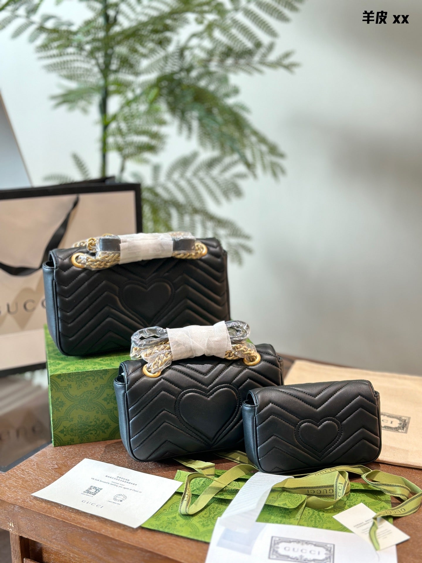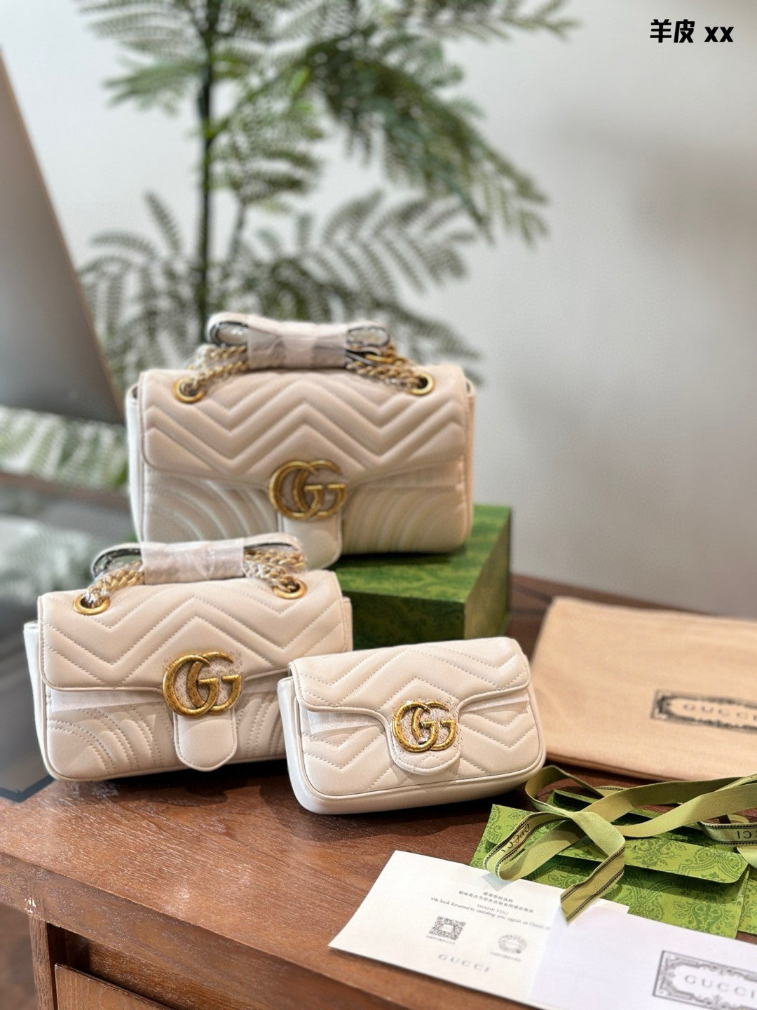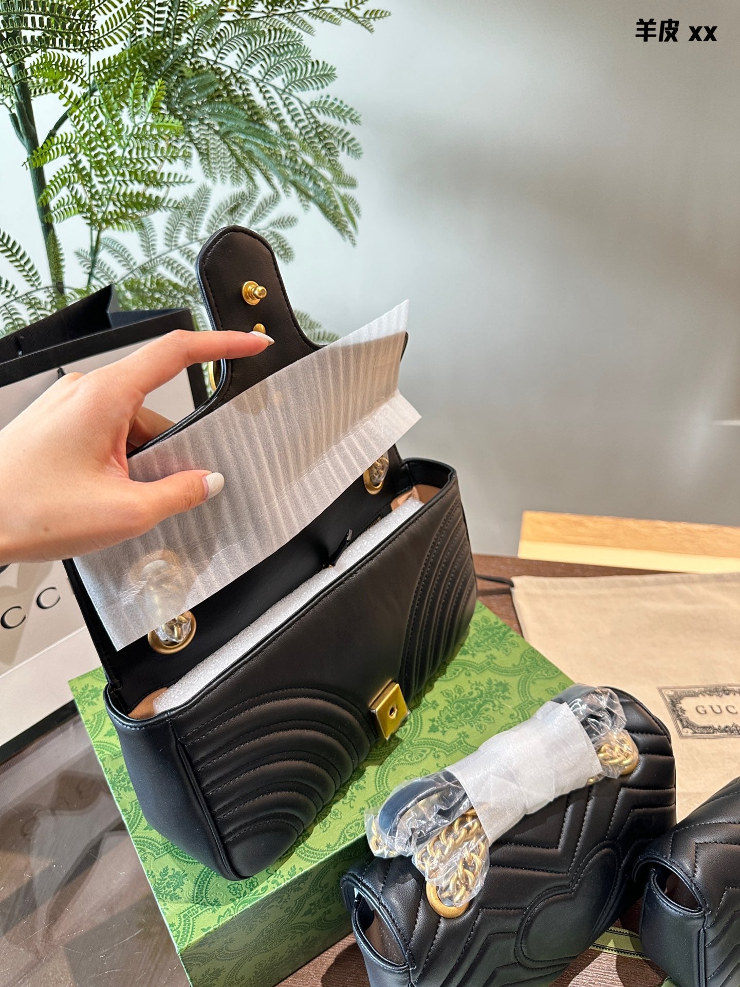 Elevate your style with the Gucci Marmont Classic Chain Bag, a perfect blend of sophistication and versatility. Measuring 22cm x 26cm, this iconic bag features a distinctive gold double G logo and retro distressed hardware, exuding luxury. Crafted from high-quality calfskin, it boasts a shiny finish and remarkable durability.