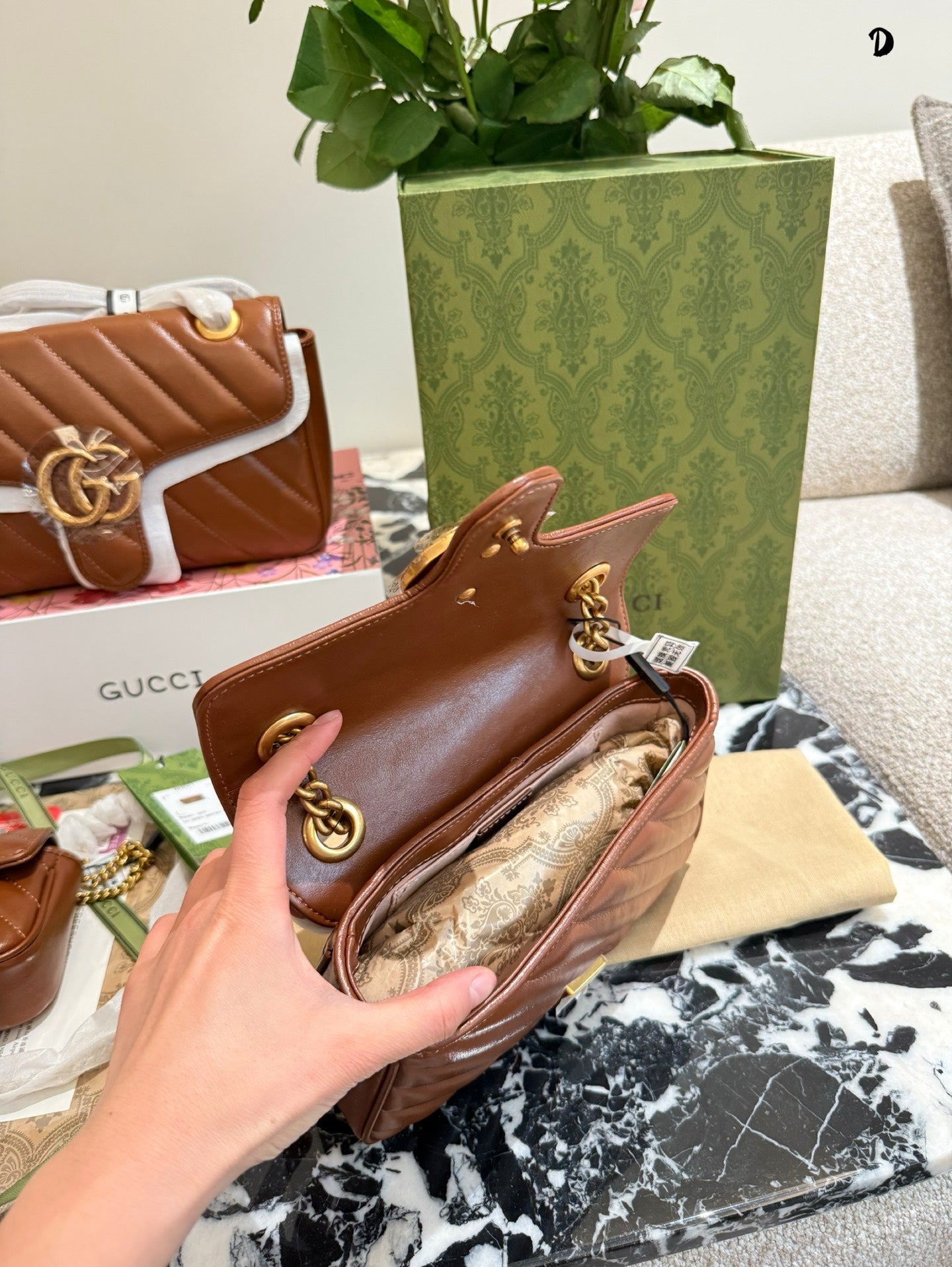 Wear it elegantly on your shoulder for a refined look or cross-body for a casual, stylish flair. This bag is a true investment piece, offering the functionality of multiple styles in one chic design. Transform your outfit effortlessly with the Gucci Marmont Classic Chain Bag – one bag that truly encompasses the essence of luxury.