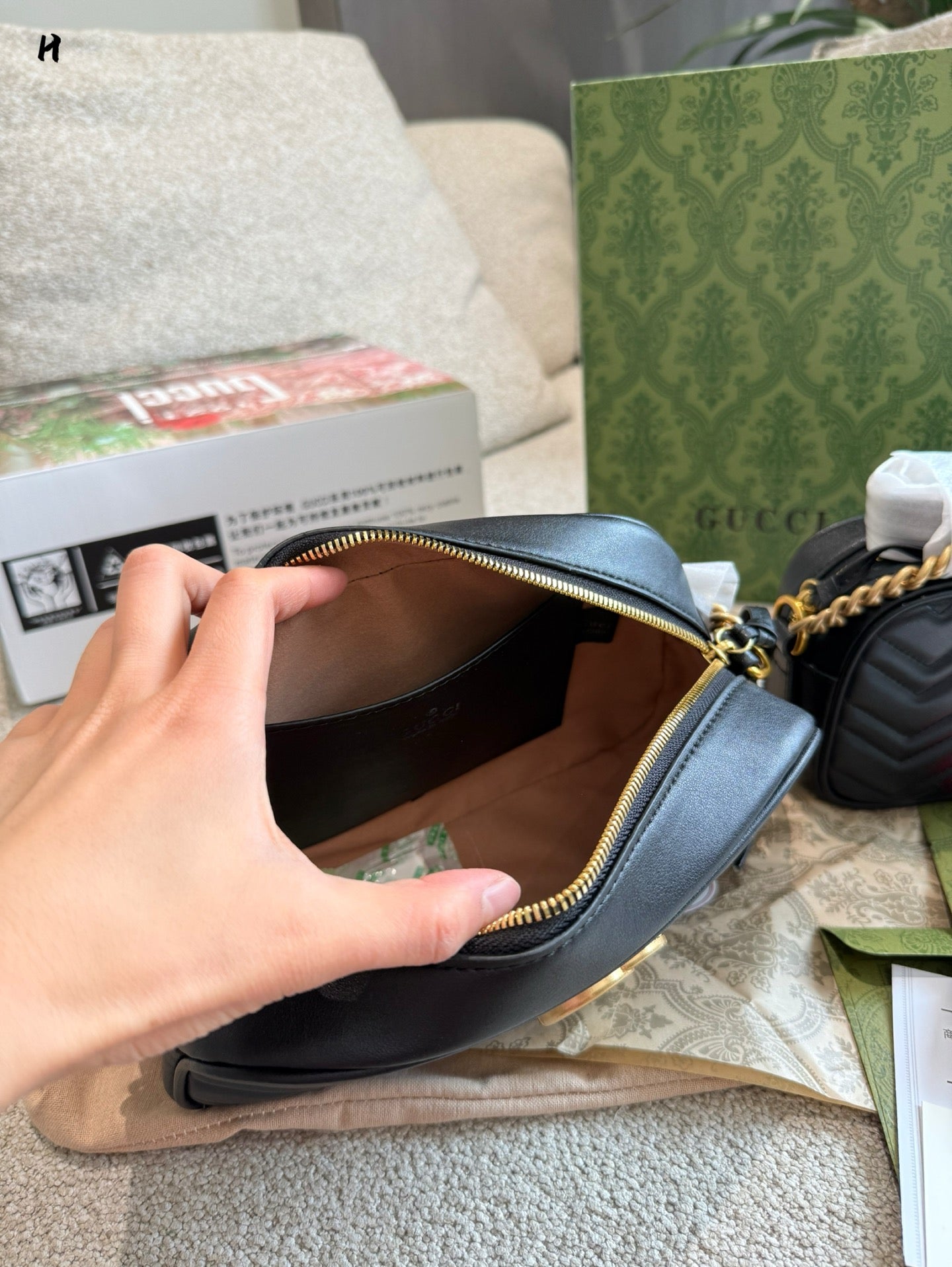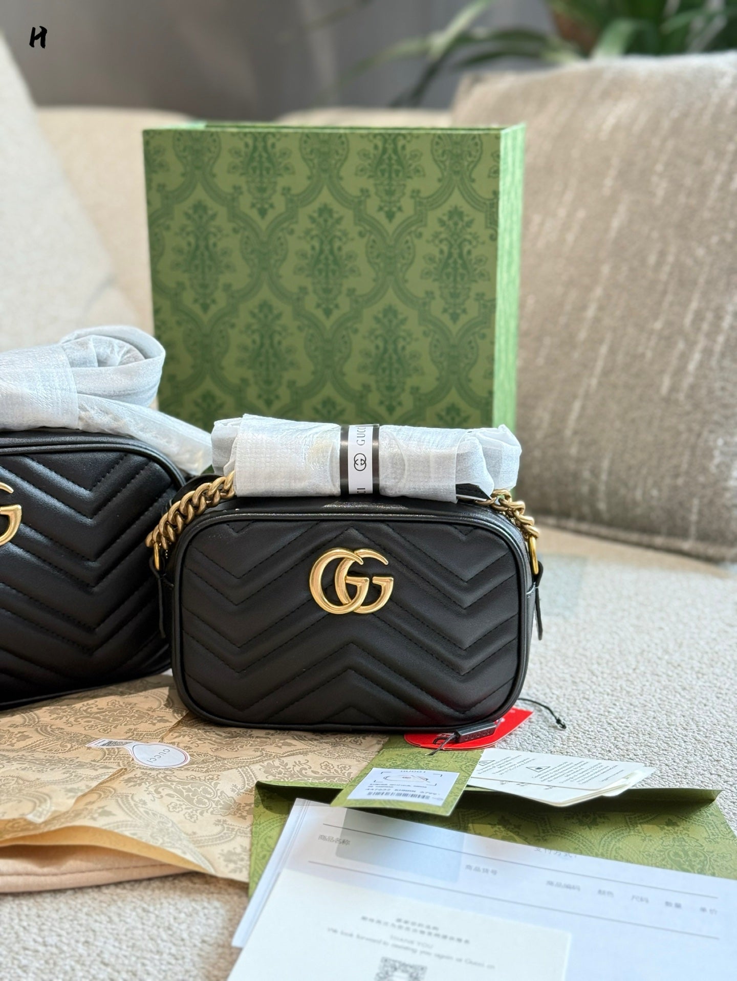 In a chic 19cm x 24cm size and presented in a stylish double box packaging, this bag is not just a fashion accessory—it’s a statement piece that embodies luxury and practicality. Perfect for daily outings, weekend adventures, or special events, the Gucci Marmont Small Camera Bag is your go-to choice for a sophisticated look.
