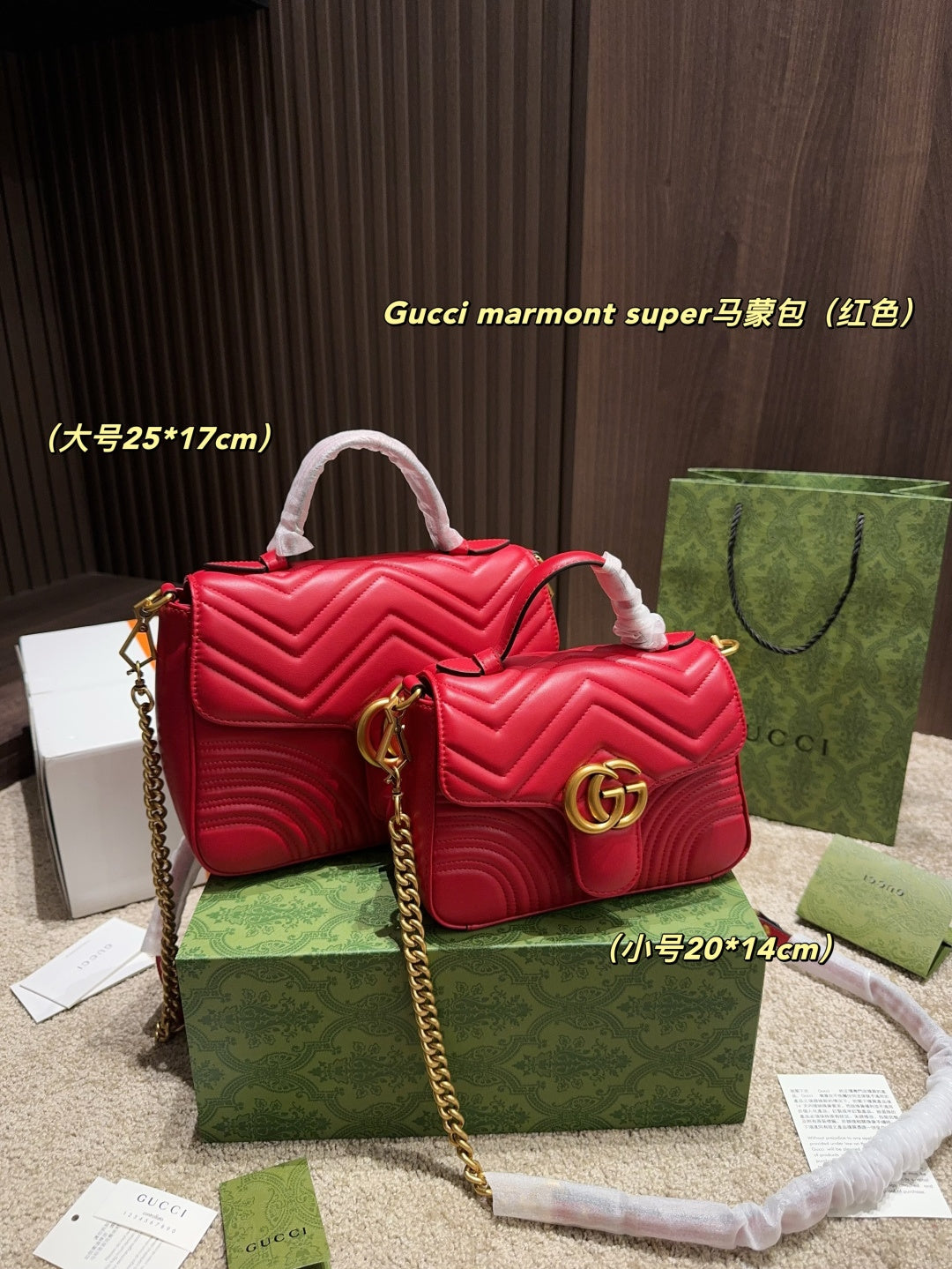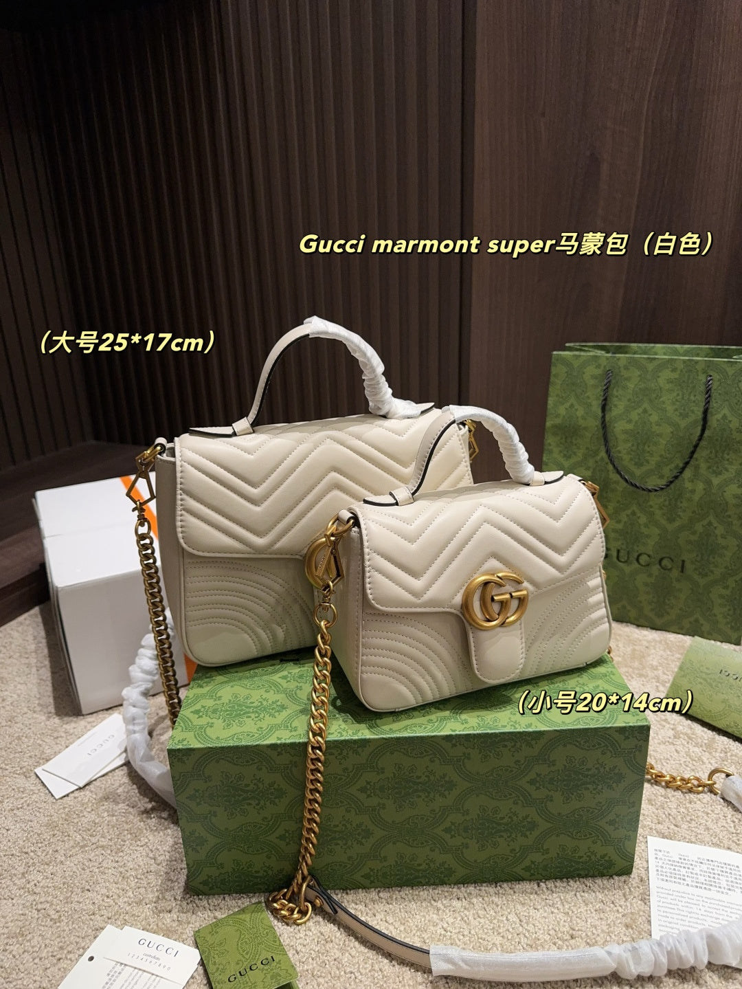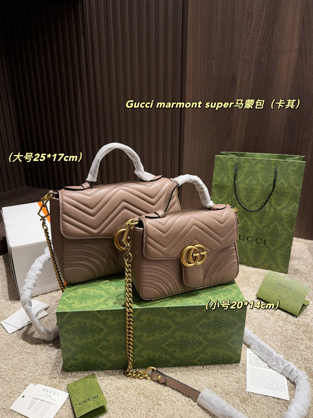 Discover the luxurious Gucci Marmont Super Marmont Bag, a stylish accessory that elevates any outfit. This chic bag comes in two sizes to suit your preference: the Large Complete Package (Size 25.17) and the Small Complete Package (Size 20.14). Crafted with attention to detail and featuring the iconic Gucci design, this bag is perfect for day or evening use. Make a statement with this timeless piece that combines sophistication with practicality. Elevate your collection today!