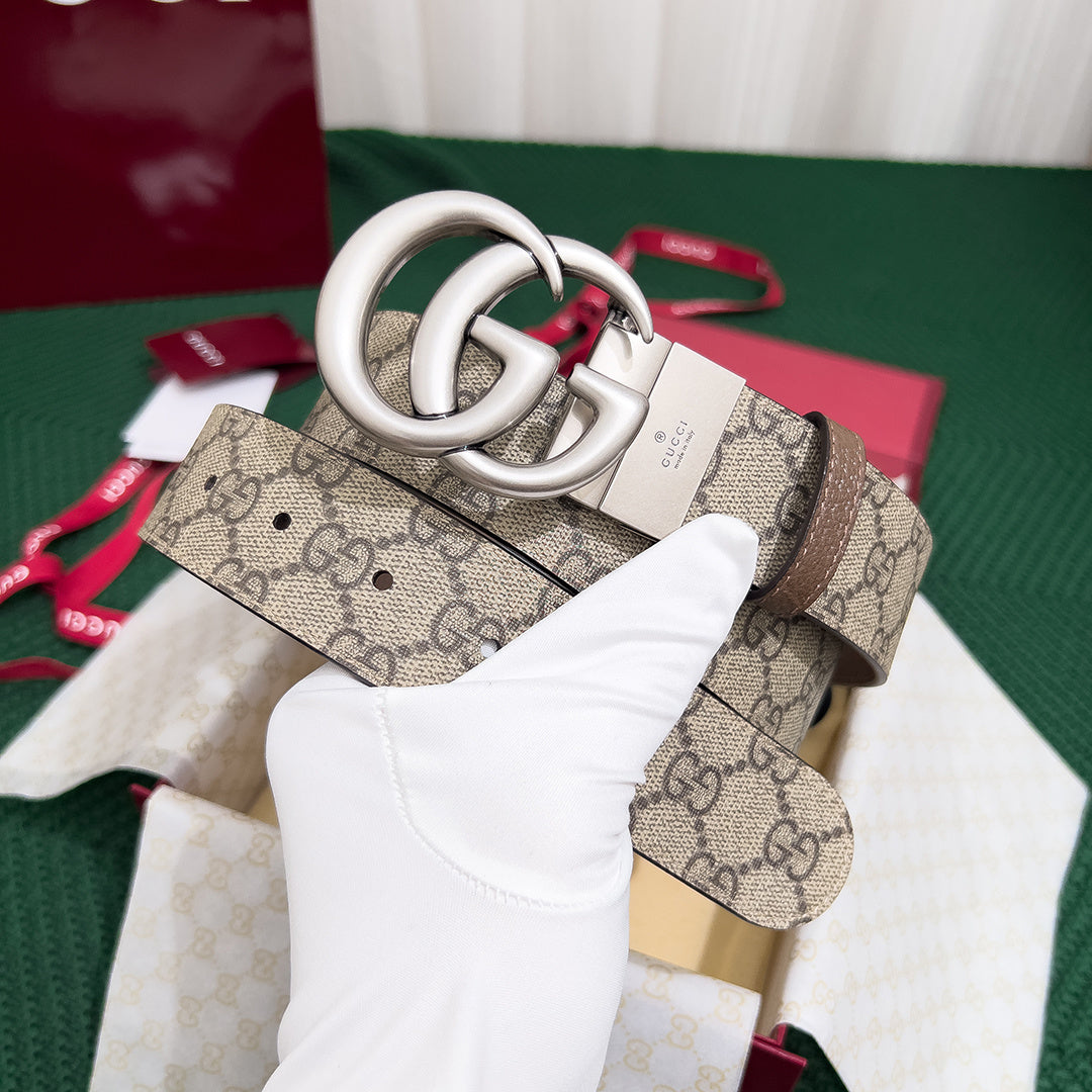 Explore the elegance of the GUCCI Men's 3.7MM Double-Sided Leather Counter Rotating Buckle belt. Crafted from premium quality original leather, this sophisticated accessory showcases a unique double-sided design, allowing you to effortlessly switch up your style. The counter-rotating buckle offers a seamless blend of functionality and luxury, making it a must-have for any discerning gentleman. Elevate your wardrobe with this top-tier GUCCI piece, perfect for both formal and casual occasions.