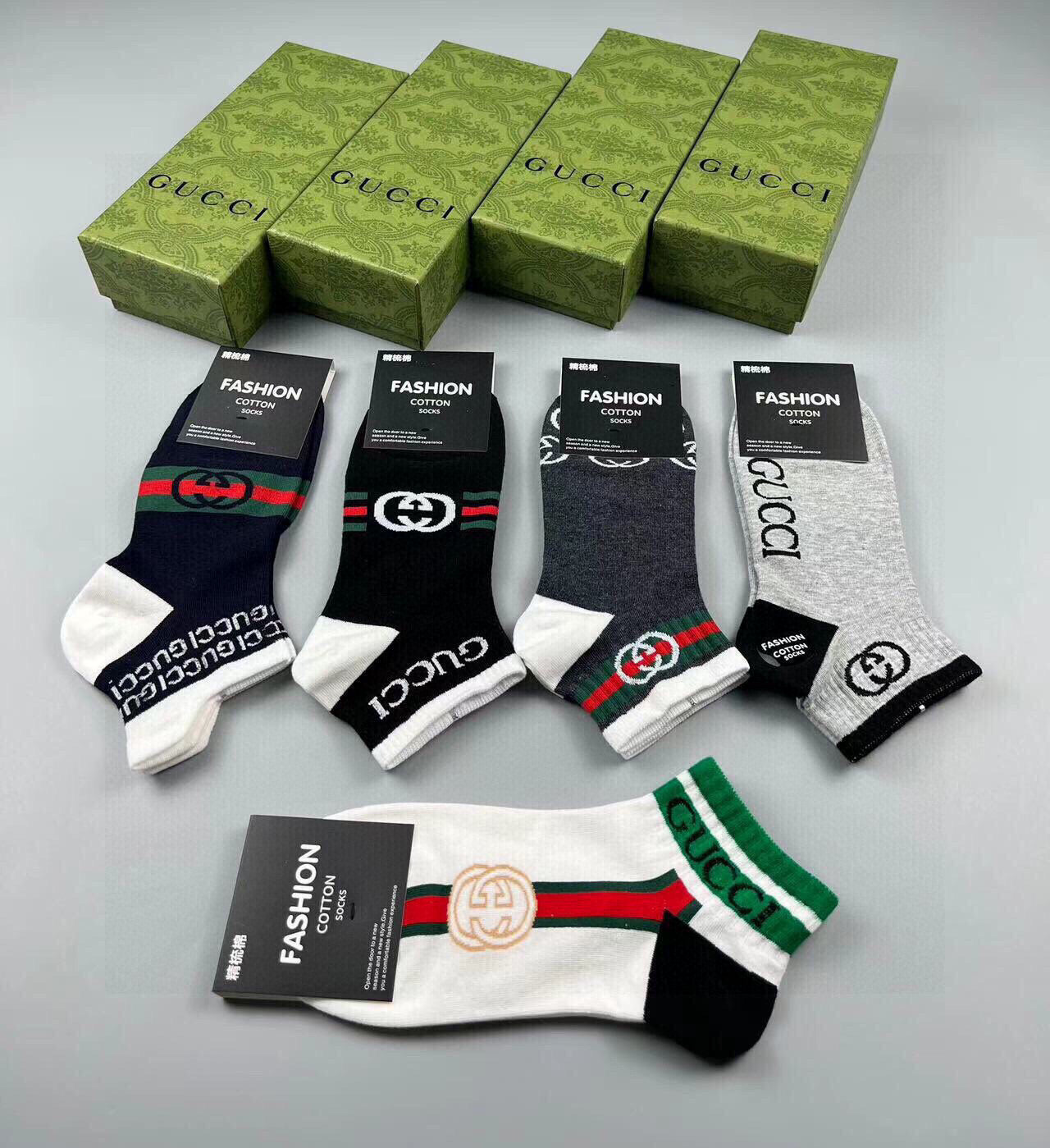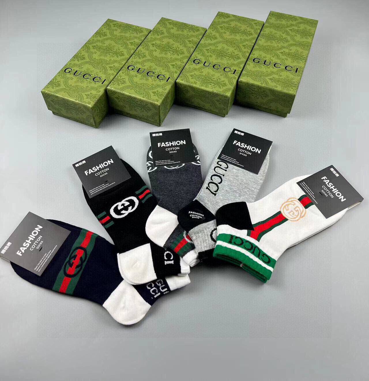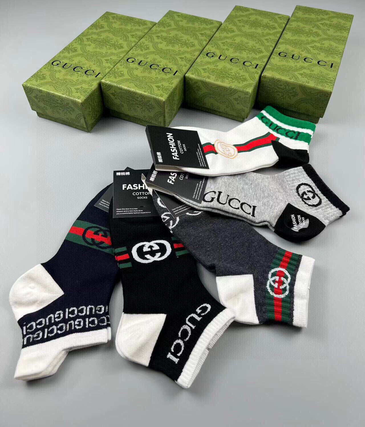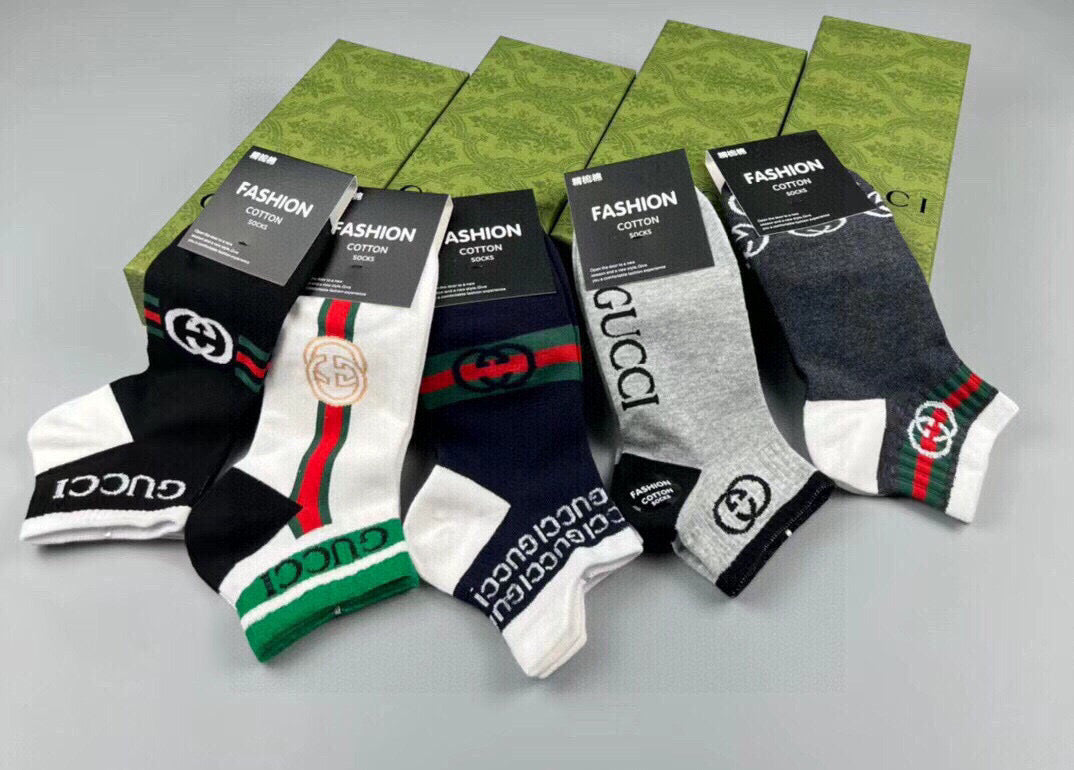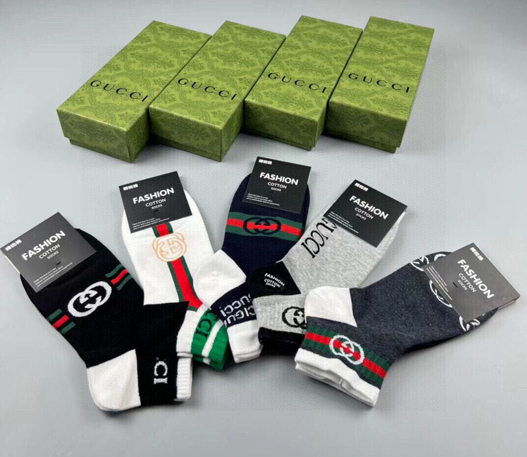 Elevate your style with the new Gucci Men's Jacquard Logo Socks, featuring a classic logo design. This set includes five pairs, each crafted for comfort and sophistication. Perfect for fashion enthusiasts, these socks are not only versatile but also a statement piece for any wardrobe. Easy to pair with various outfits, they are a must-have accessory for trendsetters. Experience luxury with every step in these iconic socks by Gucci.