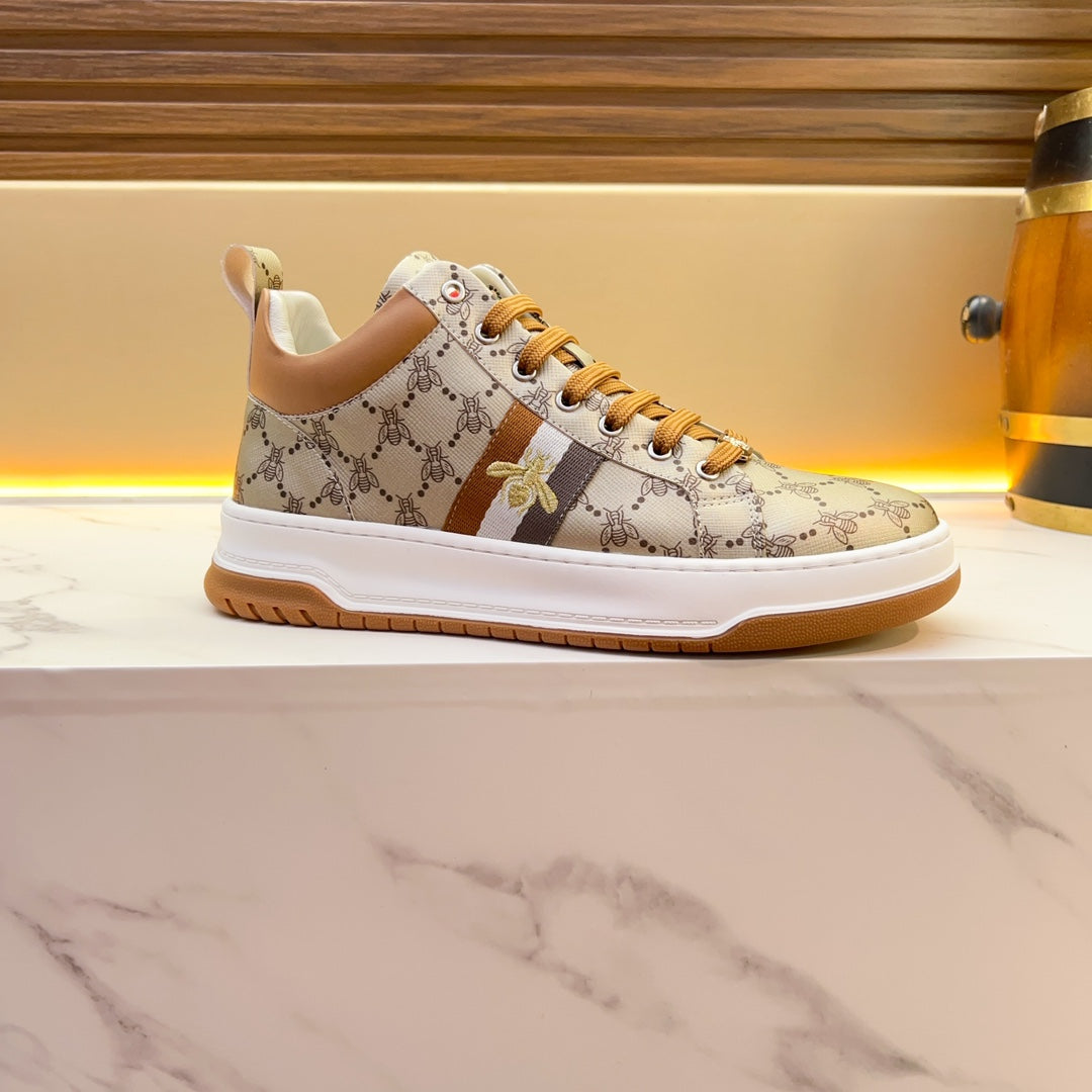 Experience the sophistication of GUCCI with these premium men's leather sneakers, featuring a luxurious velvet lining for unparalleled comfort. Designed with a simple yet elegant style, these sneakers embody classic and timeless colors that enhance the gentlemanly appeal.