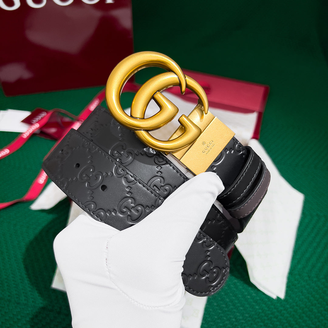 Discover luxury with the GUCCI men's belt featuring a 3.7MM counter rotating buckle. Crafted from premium original leather, this versatile accessory offers a double-sided design, allowing for multiple styling options. Experience high-end quality and sophistication with this essential piece that complements any wardrobe. Ideal for formal or casual wear, the GUCCI reversible leather belt is the perfect addition to elevate your style.