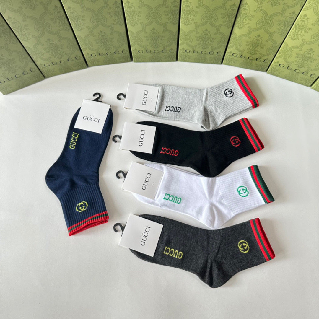 Elevate your sock collection with Gucci's Mid-Length Pile Socks. This stylish pack includes five pairs of coordinated tube socks, perfect for fashion-forward individuals. Designed to make a statement, these socks effortlessly blend comfort and chic, making them a versatile accessory for any outfit. Ideal for everyday wear or special occasions, these must-have socks are perfect for fashionistas looking to enhance their street style. Upgrade your wardrobe with this luxurious and trendy addition!