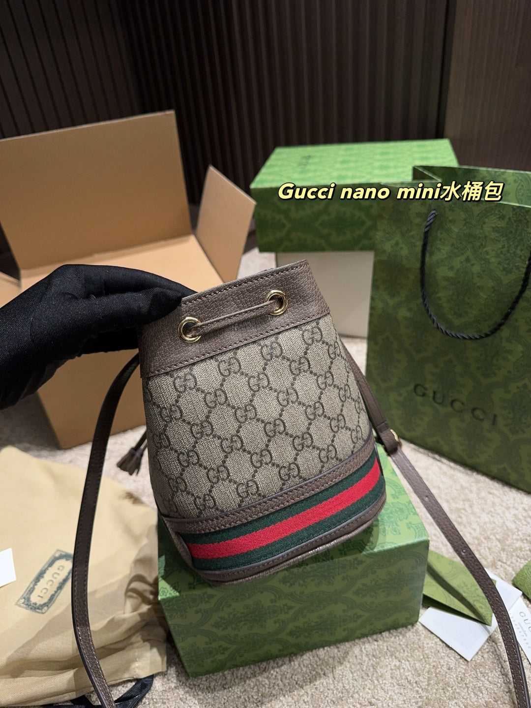 Gucci Nano Mini Bucket Bag - Full Package, Size 17.19