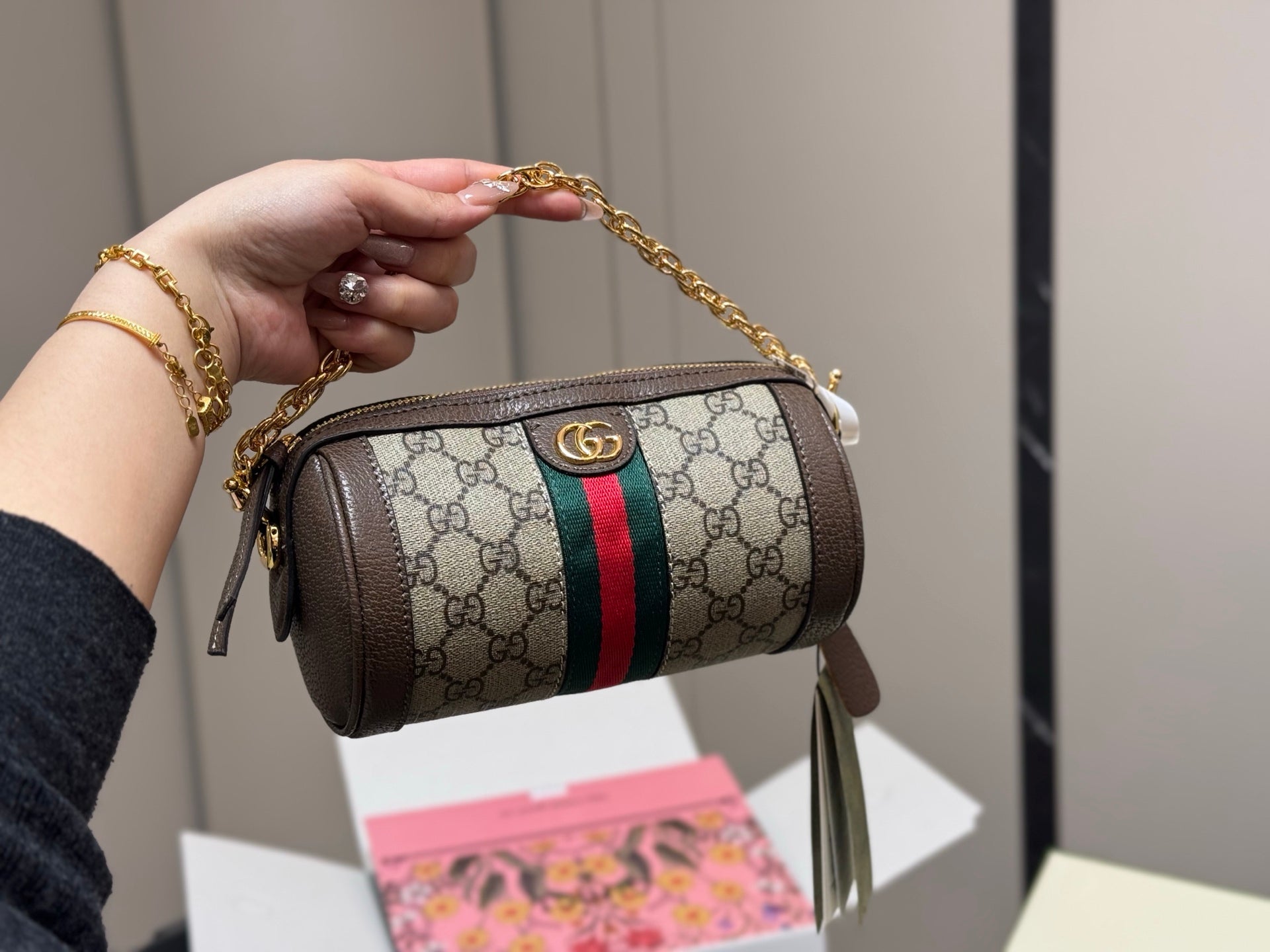 Introducing the Gucci New Pillow Bag, a perfect blend of elegance and functionality. Designed with a folding box and airplane case size of 19.11cm, this stylish bag is ideal for your travel needs. With ample capacity, it's not just about aesthetics – it's practical too. Elevate your accessory collection with this classic and versatile piece that exudes refined taste. Perfect for any occasion, whether you're jet-setting or enjoying a day out.