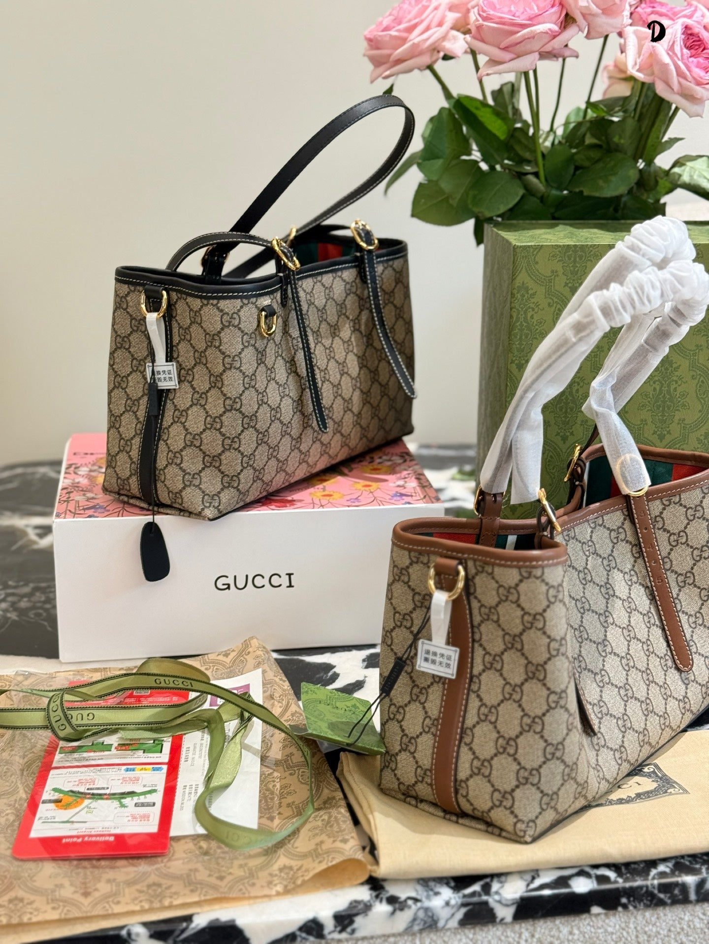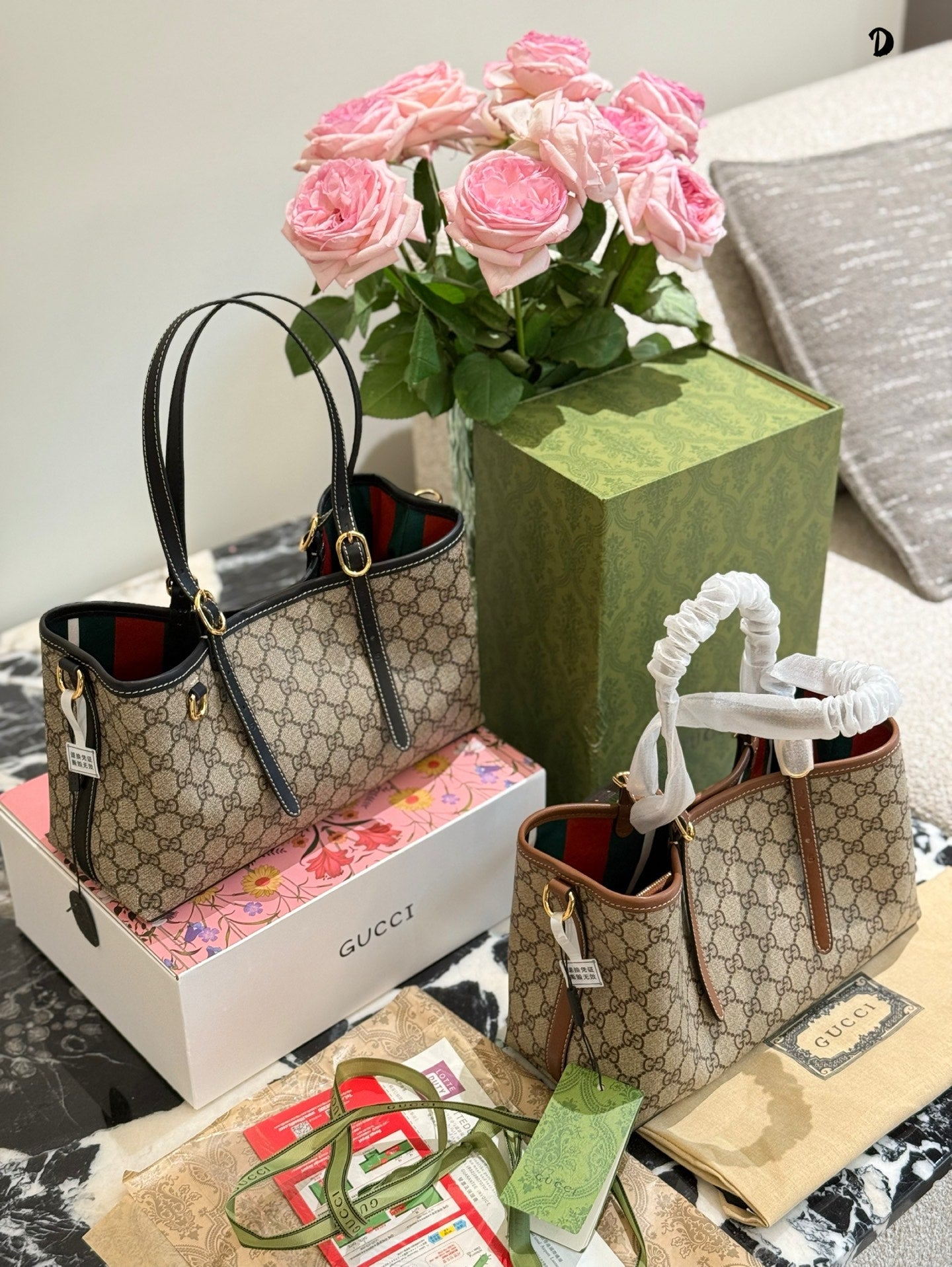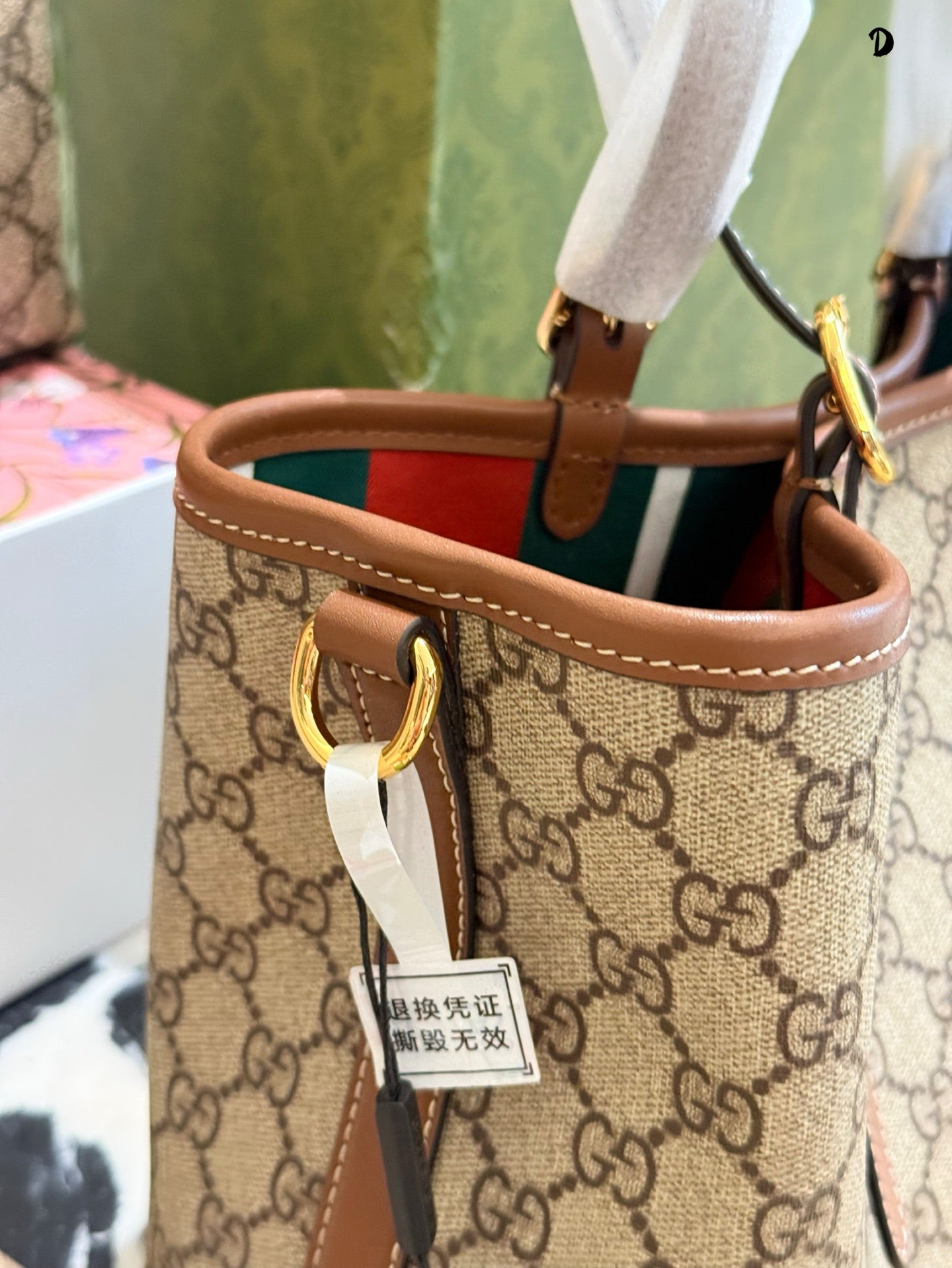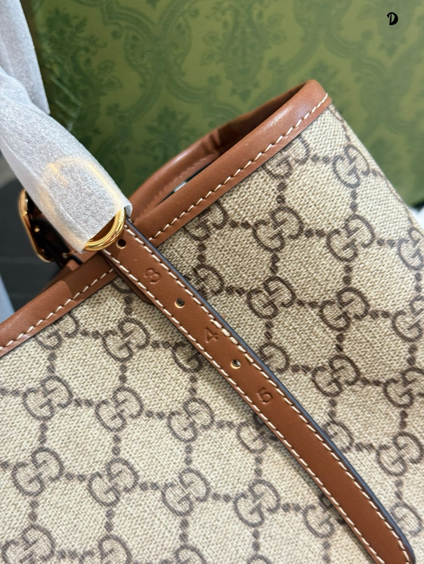 Discover the elegance of the Gucci Ophidia Tote Bag, featuring the iconic GG pattern and distinctive striped webbing. This stylish shopping bag seamlessly blends classic design with contemporary flair. Its spacious dimensions (31 x 18 x 11 cm) and included box make it a perfect choice for both everyday use and special occasions. Elevate your accessory collection with this timeless piece from the evolving Ophidia line.