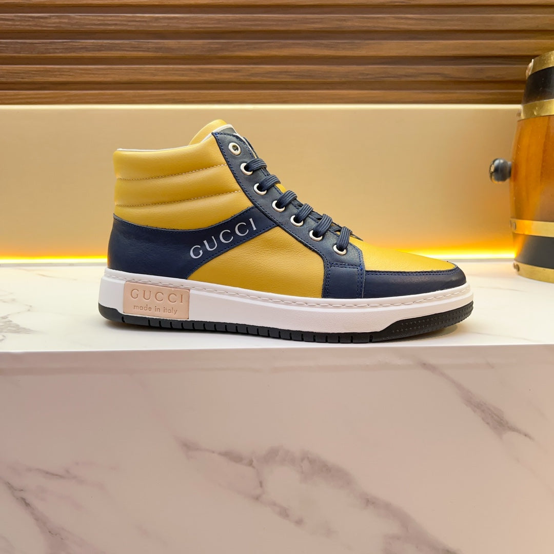The meticulously crafted shoes boast a plush velvet lining and a durable rubber outsole, ensuring both comfort and longevity. Available in sizes 38-44 and offered in two eye-catching colors, these shoes are perfect for those who appreciate quality without compromise. Experience unparalleled style and sophistication—these Gucci high-tops are a must-have for any modern wardrobe. Transform your look today!
