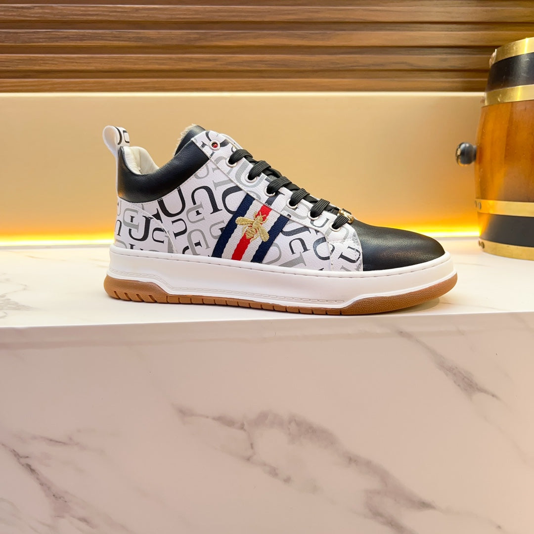Step into luxury with the Gucci Retro High-Top Men's Shoes, designed for trendsetters who appreciate style and comfort. Featuring a vibrant color palette that exudes sophistication, these shoes are crafted from premium Italian cowhide leather for an exceptional texture and durability. The original rubber outsole ensures longevity, while the plush velvet and leather lining provide a comfortable fit. Available in sizes 38-44, these monochrome high-tops are a must-have addition to any fashion-forward wardrobe. Elevate your shoe collection with these exclusive, high-quality shoes that blend iconic style with modern trends.