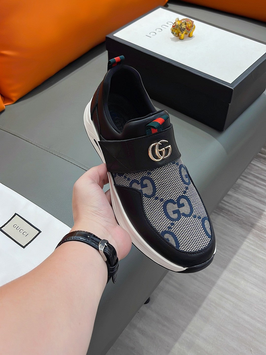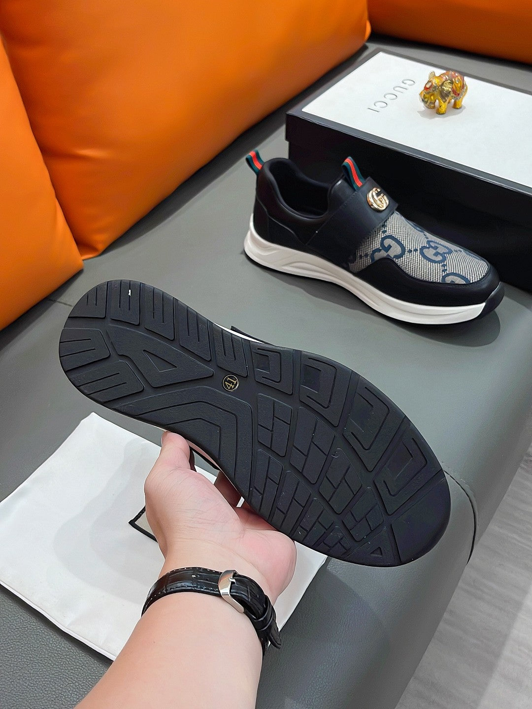 Step into luxury with the GUCCI Slip-On Shoes, designed for the modern man. Crafted from selected cowhide uppers, these shoes offer both durability and a refined aesthetic. The soft sheepskin lining ensures all-day comfort, while the original outsole provides exceptional traction and longevity. Available in sizes 38-44, these versatile slip-ons effortlessly elevate your style, whether for casual outings or more formal occasions. Experience the perfect blend of sophistication and comfort with GUCCI.