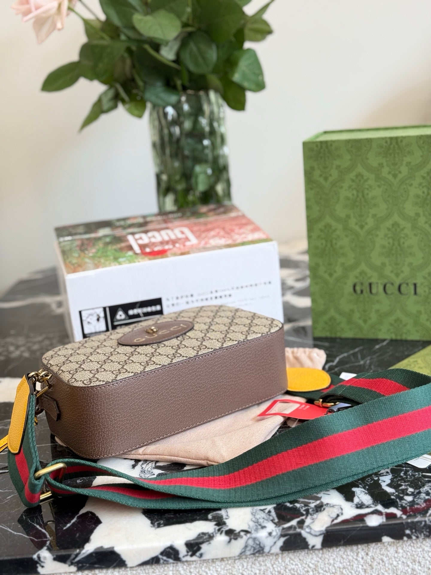 Designed with comfort in mind, it features lightweight construction and wide shoulder straps, ensuring ease of wear throughout the day. Crafted for durability, this bag showcases all the hallmark elements of Gucci's timeless design.