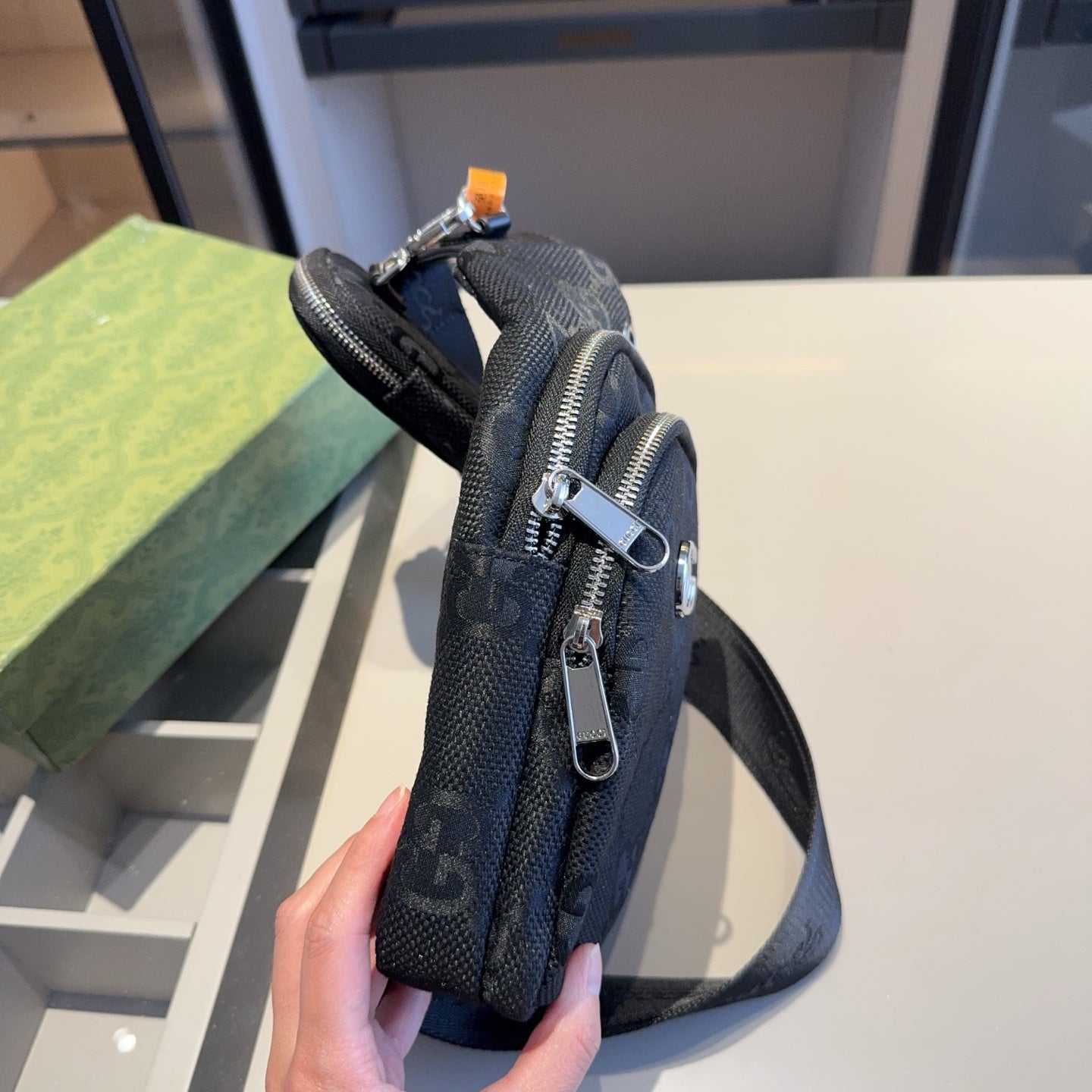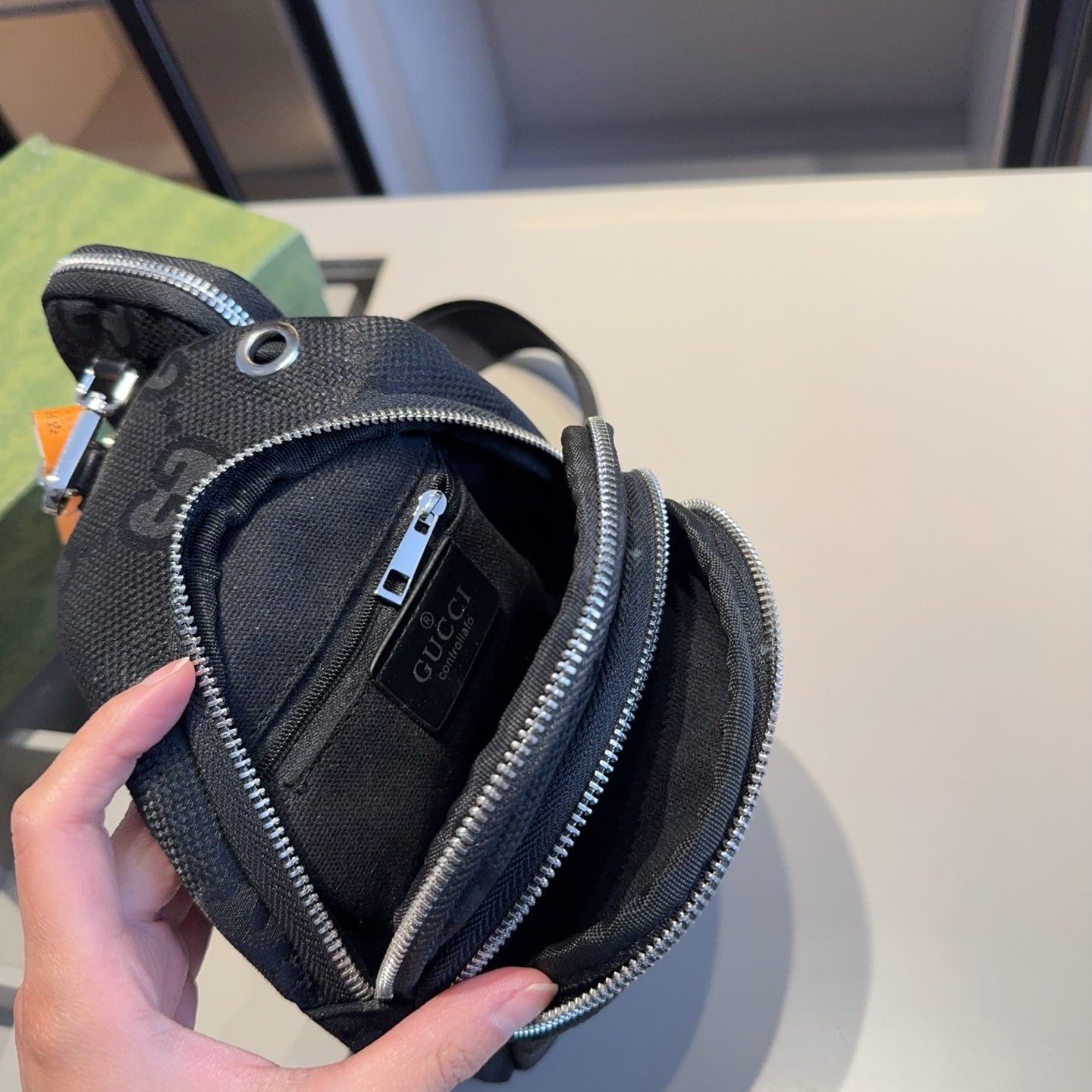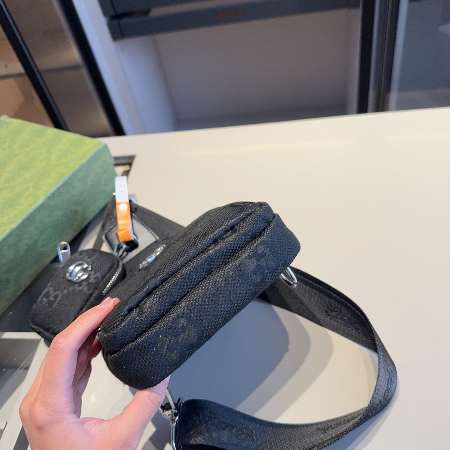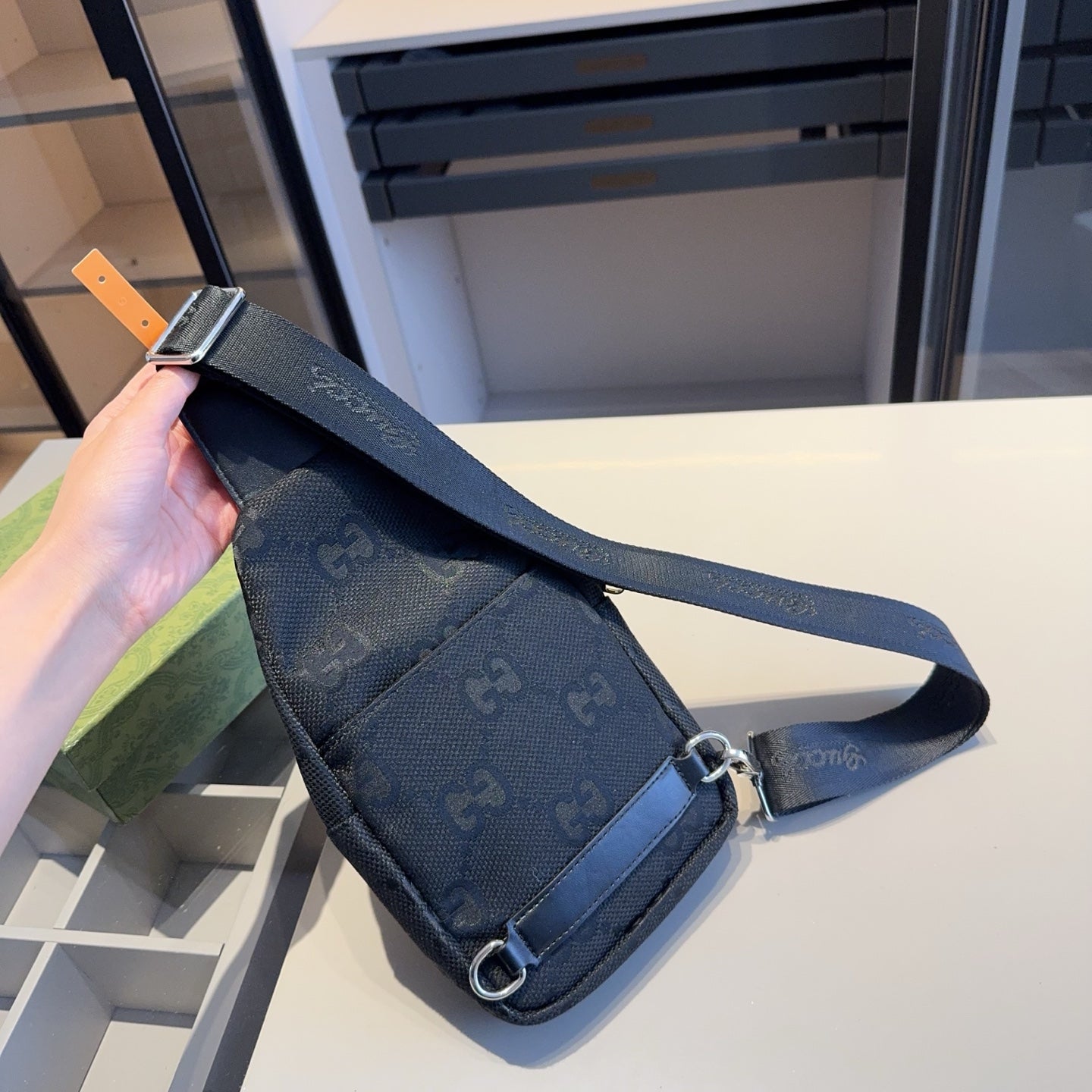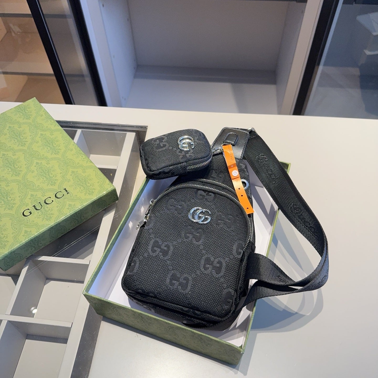 Discover the latest addition to our collection: the GUCCI Unisex Chest Bag with a Mini Bag. This stylish accessory is designed to turn heads, embodying the same high-quality aesthetics found in luxury retail.