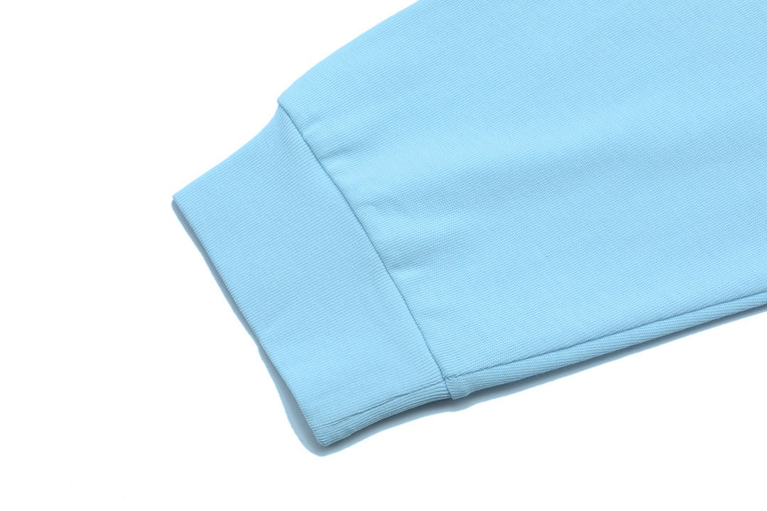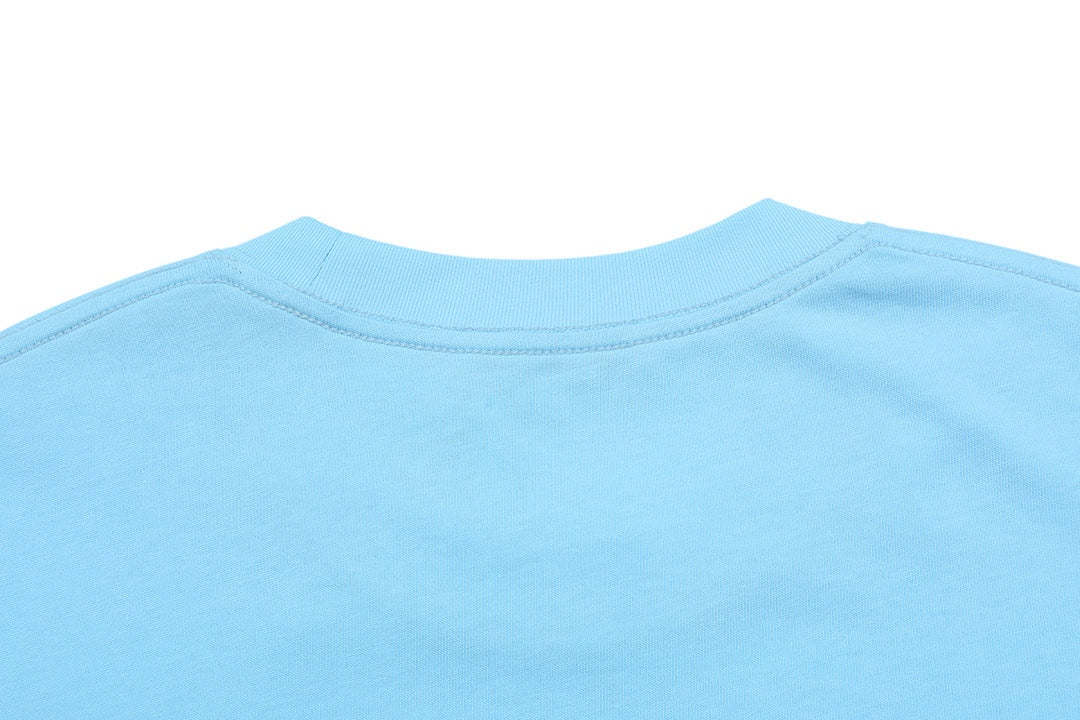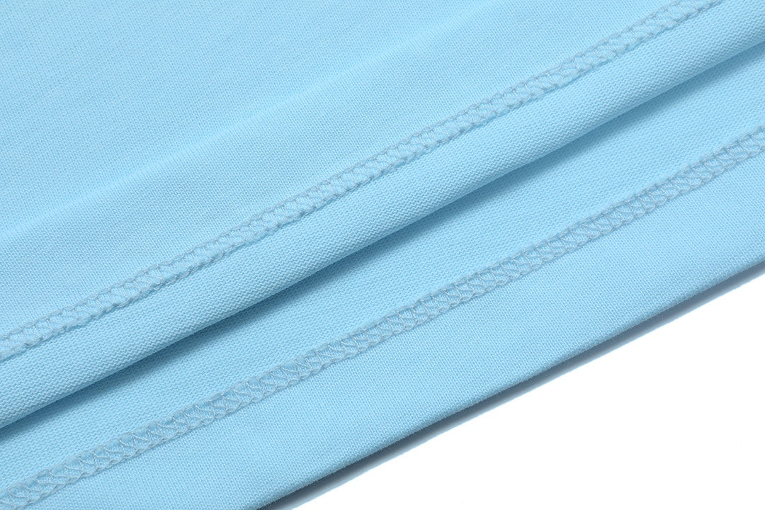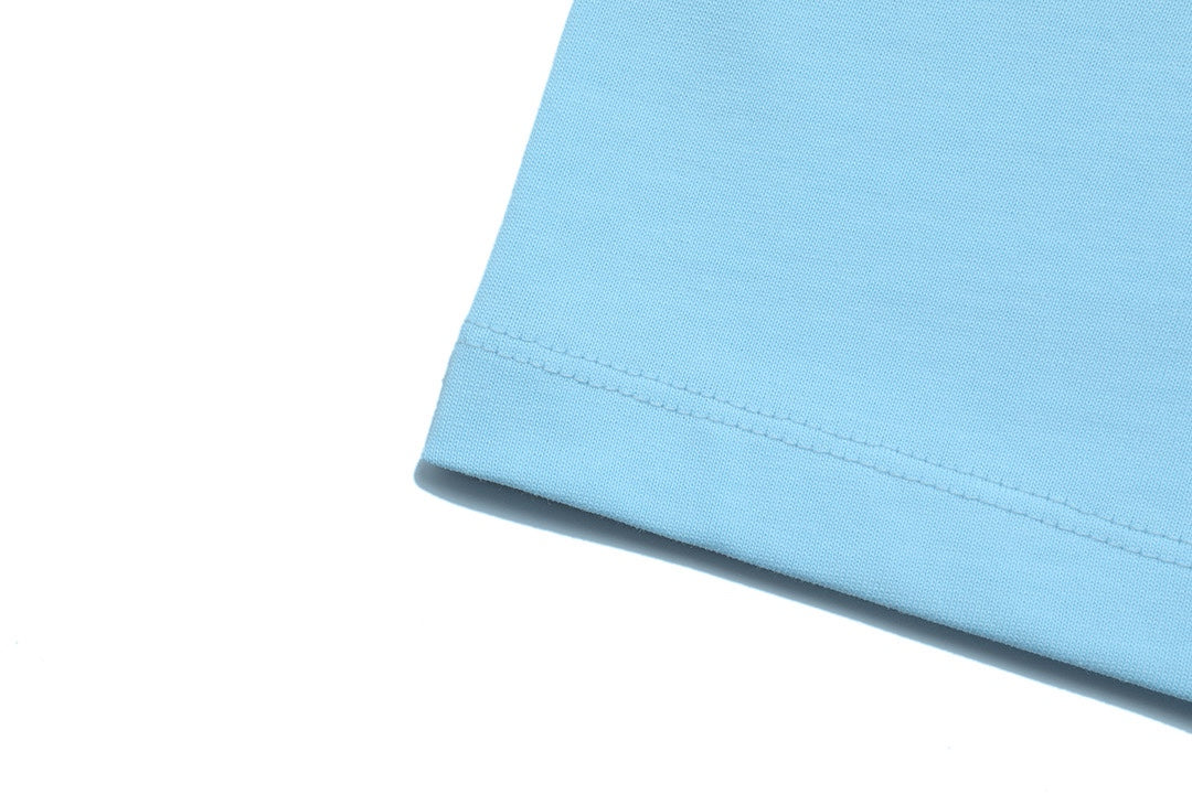 Featuring a subtle printed logo and a vibrant sky blue color, this versatile piece is suitable for any occasion. The fabric is dyed using 32 double-stranded threads, ensuring lasting quality and a smooth finish.