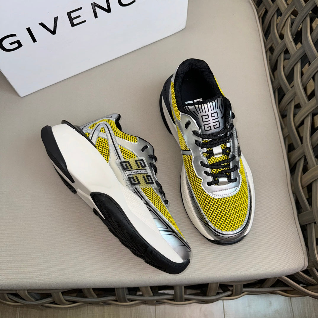 Discover the Gv *y GIV1 Men's Casual Sneakers, designed for style and comfort. The upper features a premium calfskin and breathable fabric combination that not only enhances your look but also provides a snug fit. With a stylish 4CM height increase, these sneakers elevate your presence while the bold contrast color splicing adds a unique touch. Adorned with the iconic 4G logo and a three-dimensional GIVENCHY emblem, these shoes make a statement. The lightweight TPU foam outsole ensures a comfortable walking experience. Available in sizes 39-44, with custom options for 38 and 45. Step out with confidence in Gv *y's GIV1 Sneakers.