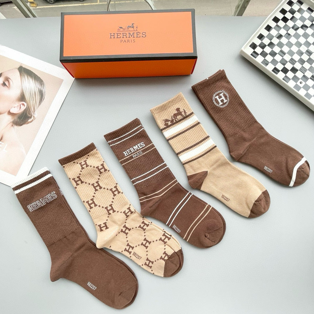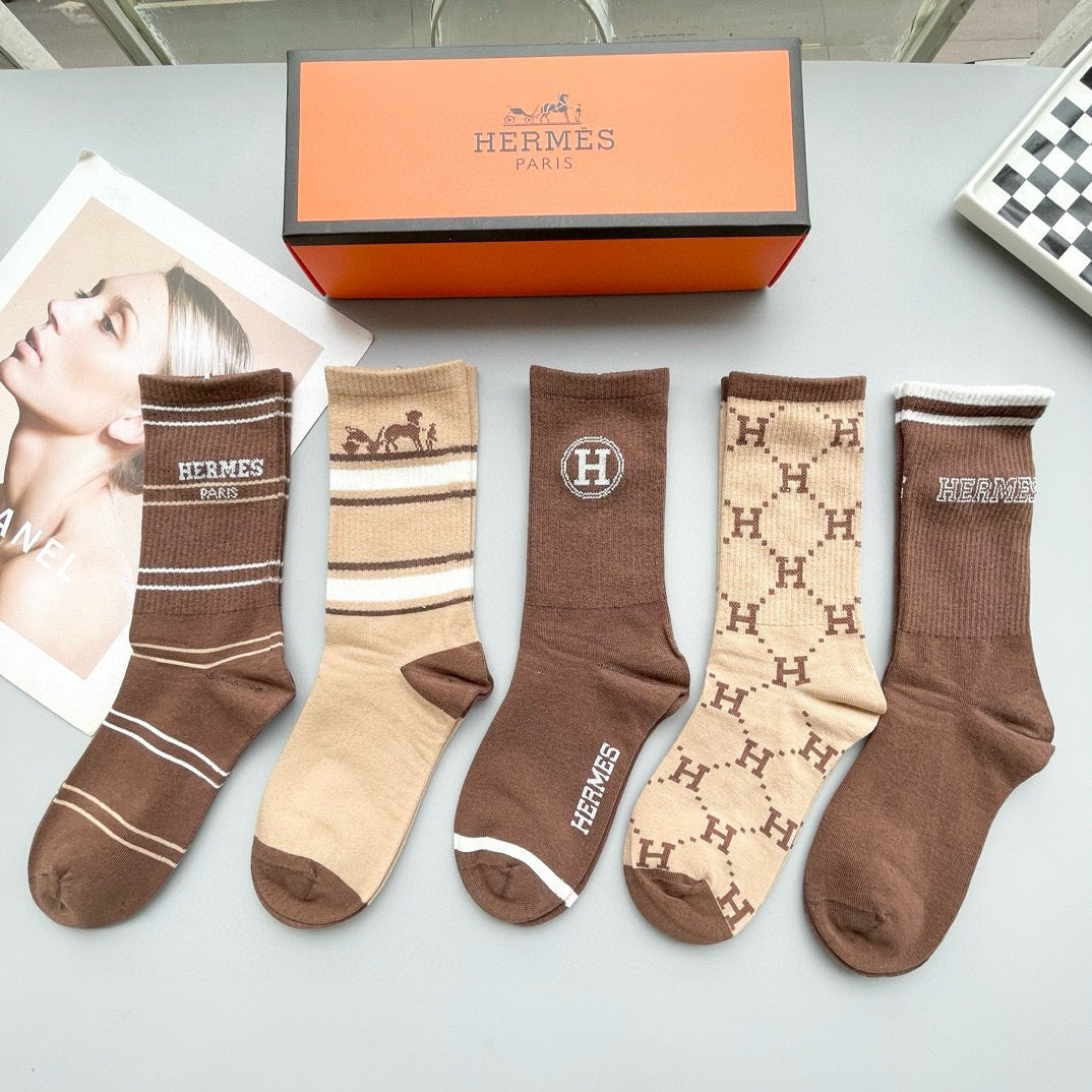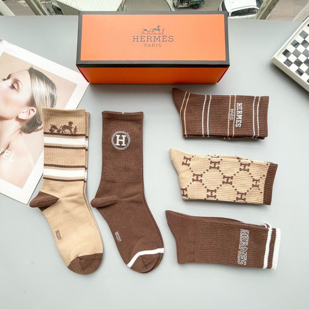 Hermès Classic Mid-Calf Cotton Socks - 5 Pairs