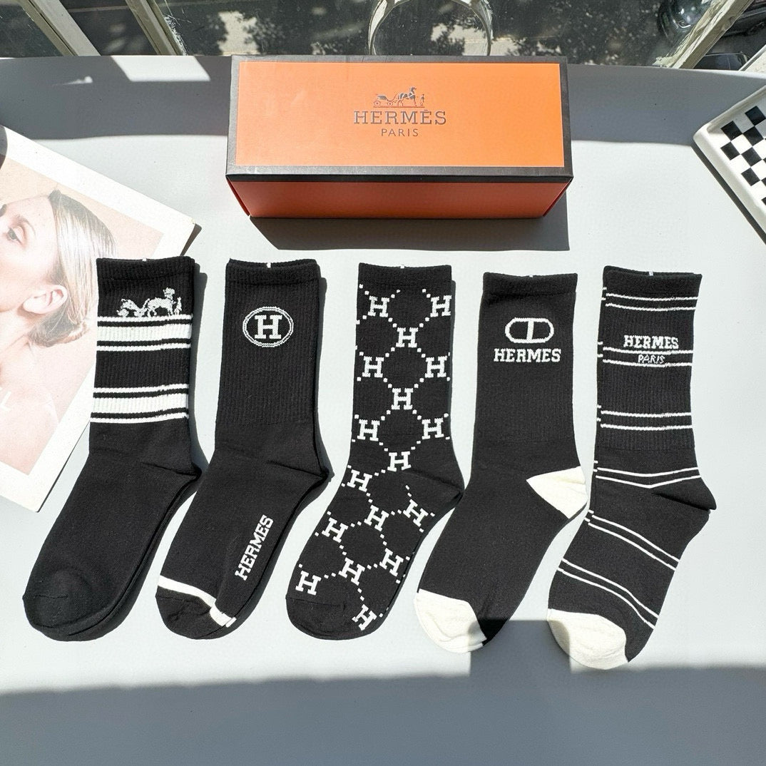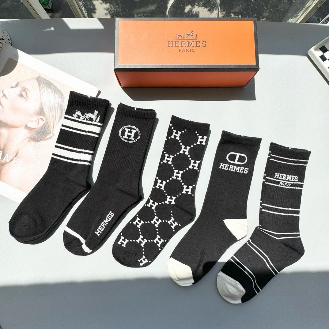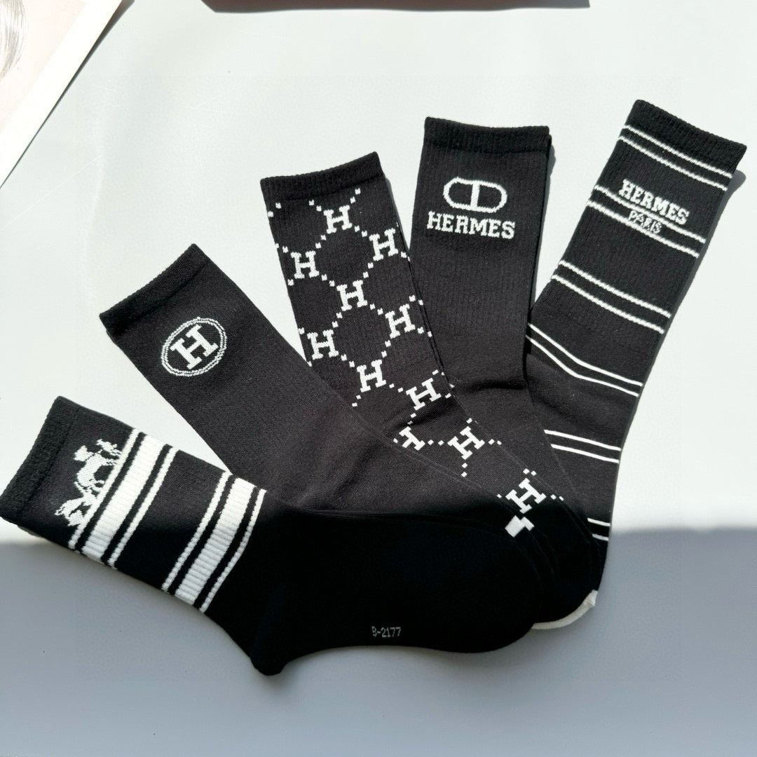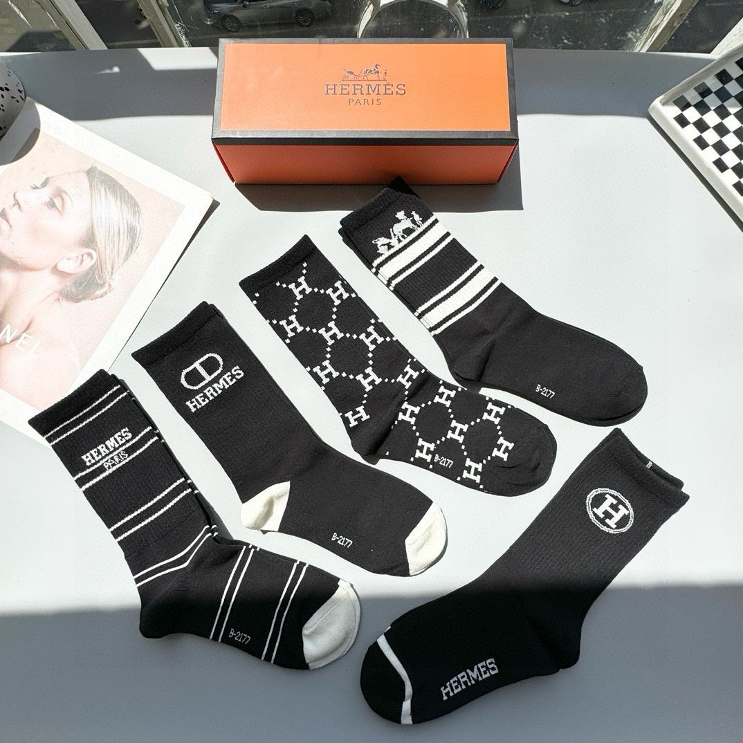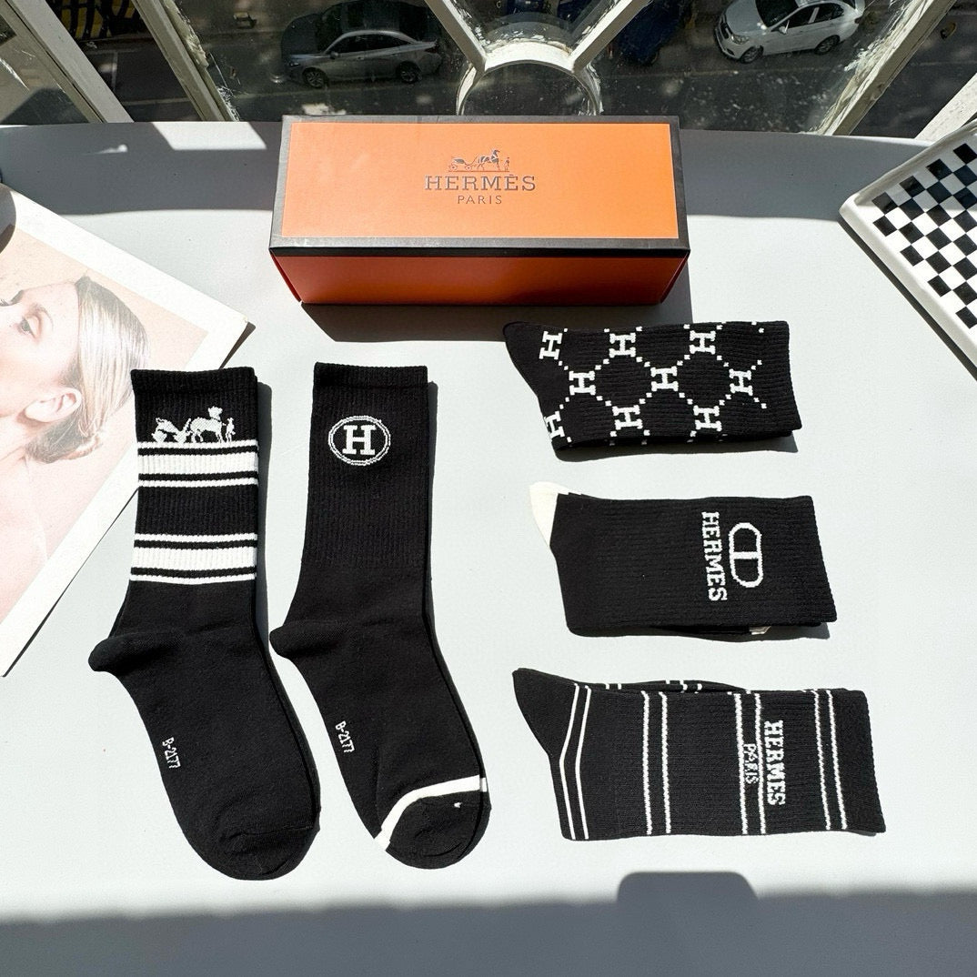 Hermès Classic Mid-Calf Cotton Socks - Five Pairs