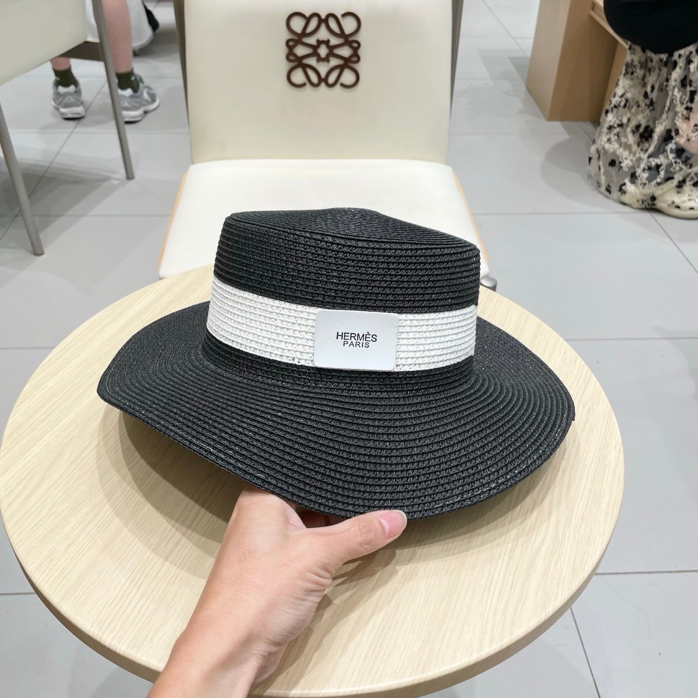 Hermès Flat Top Straw Hat - 57cm