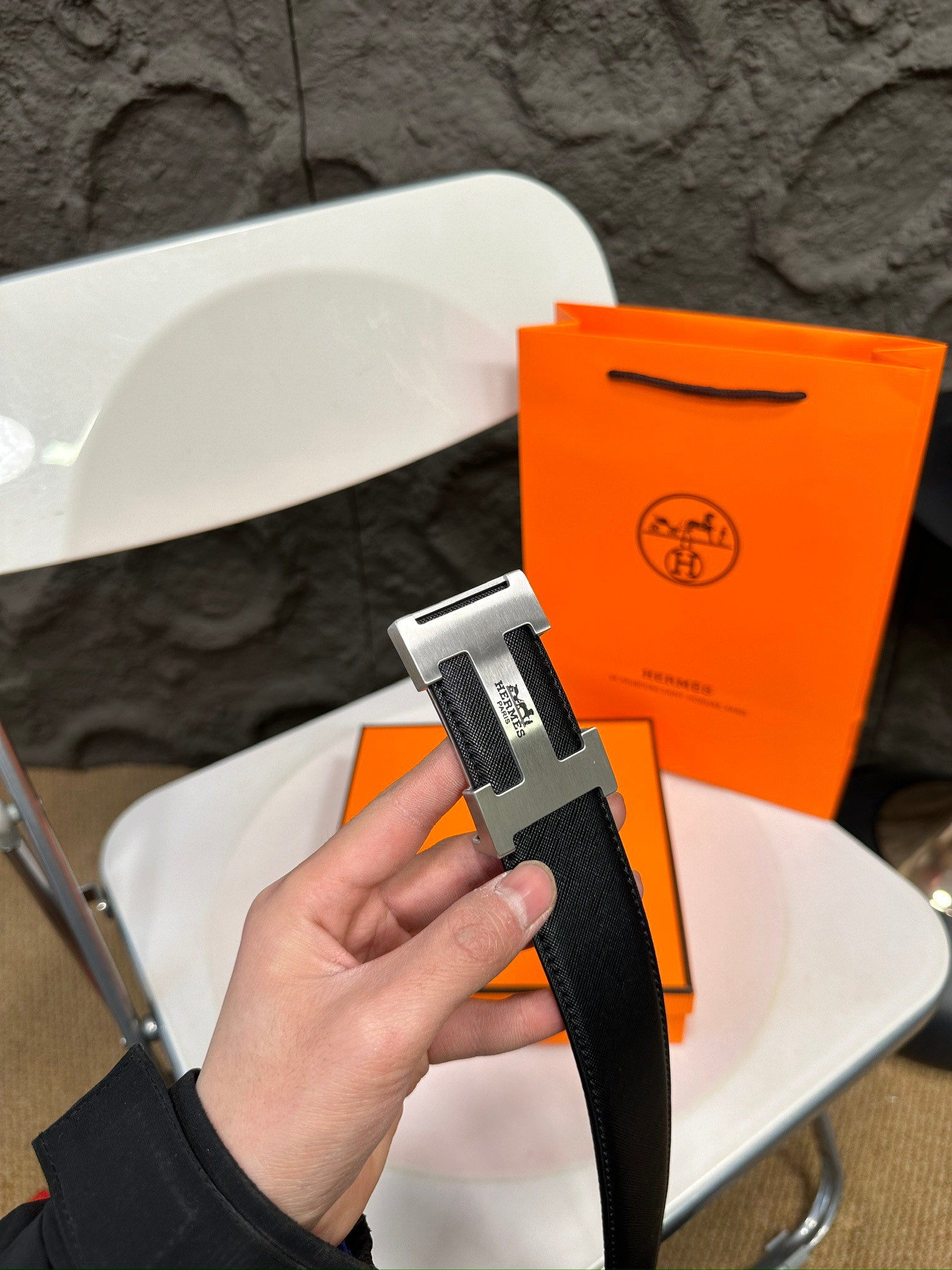 Hermès "Heyha" Premium Leather Belt with Steel Hardware