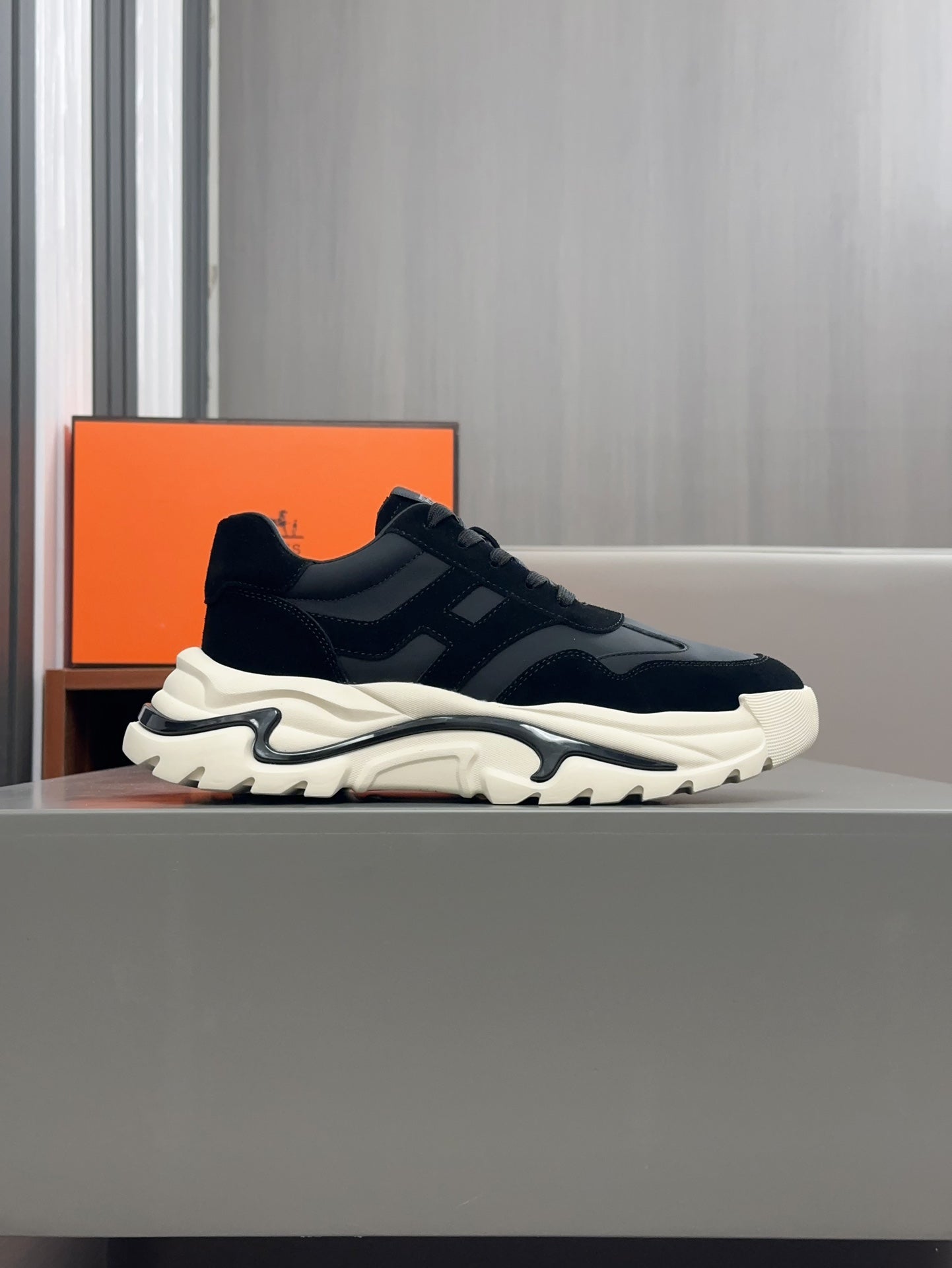 Experience exceptional comfort with luxurious cowhide lining and cushioned cowhide footpads, ensuring breathability and support throughout the day. The rubber sole is not only durable but also features geometric patterns and the iconic "H" detail for a signature touch. Available in sizes 39-44, these sneakers are the perfect addition to elevate your casual wardrobe.