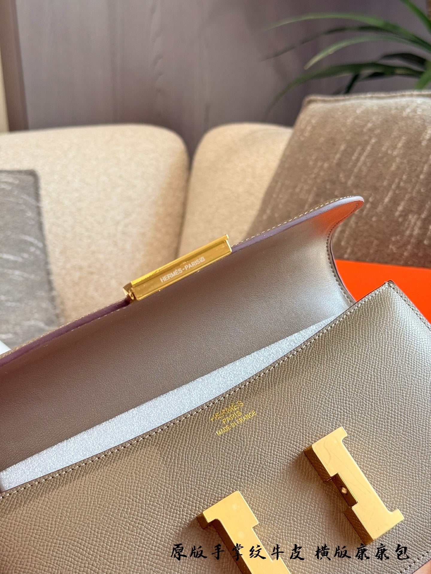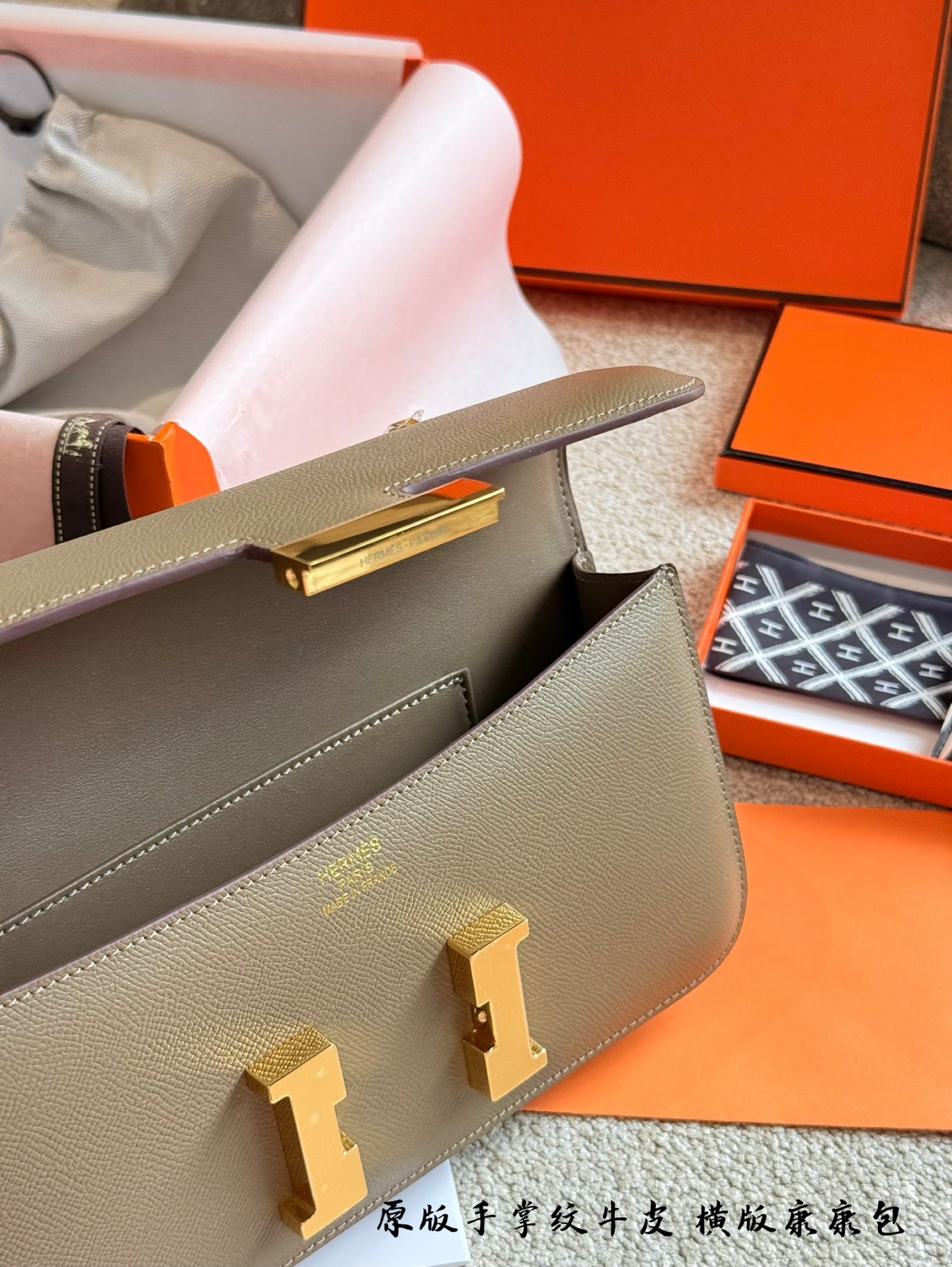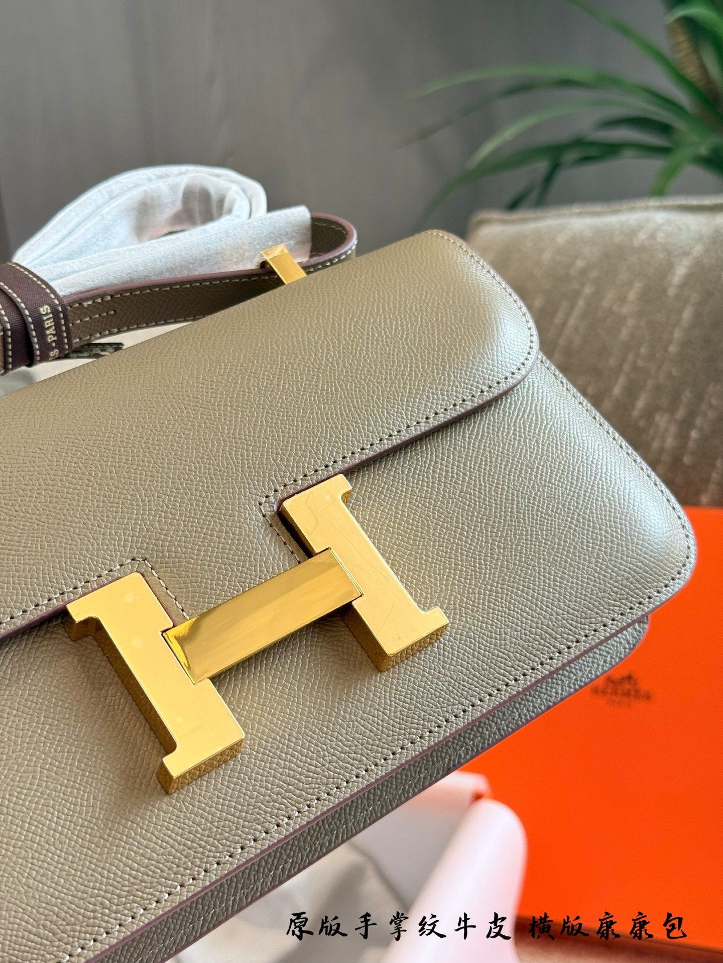 Elevate your fashion with the exquisite Hermès Kangkang Horizontal Handbag. Crafted from premium first-layer cowhide with a stunning palm pattern, this luxurious accessory embodies sophistication and timeless style.