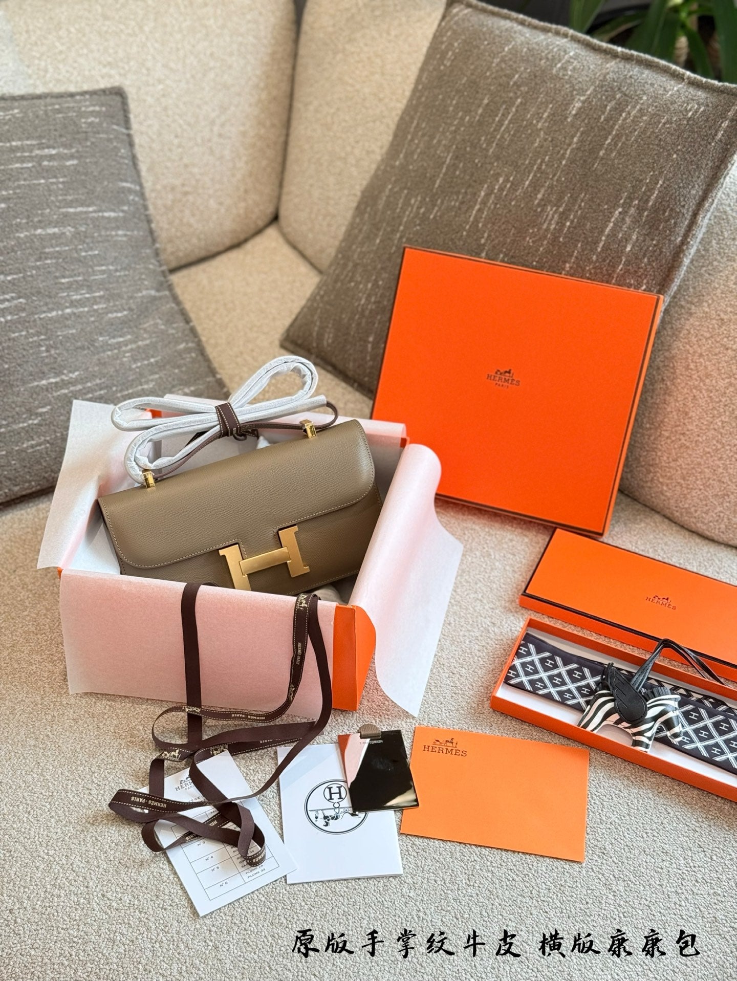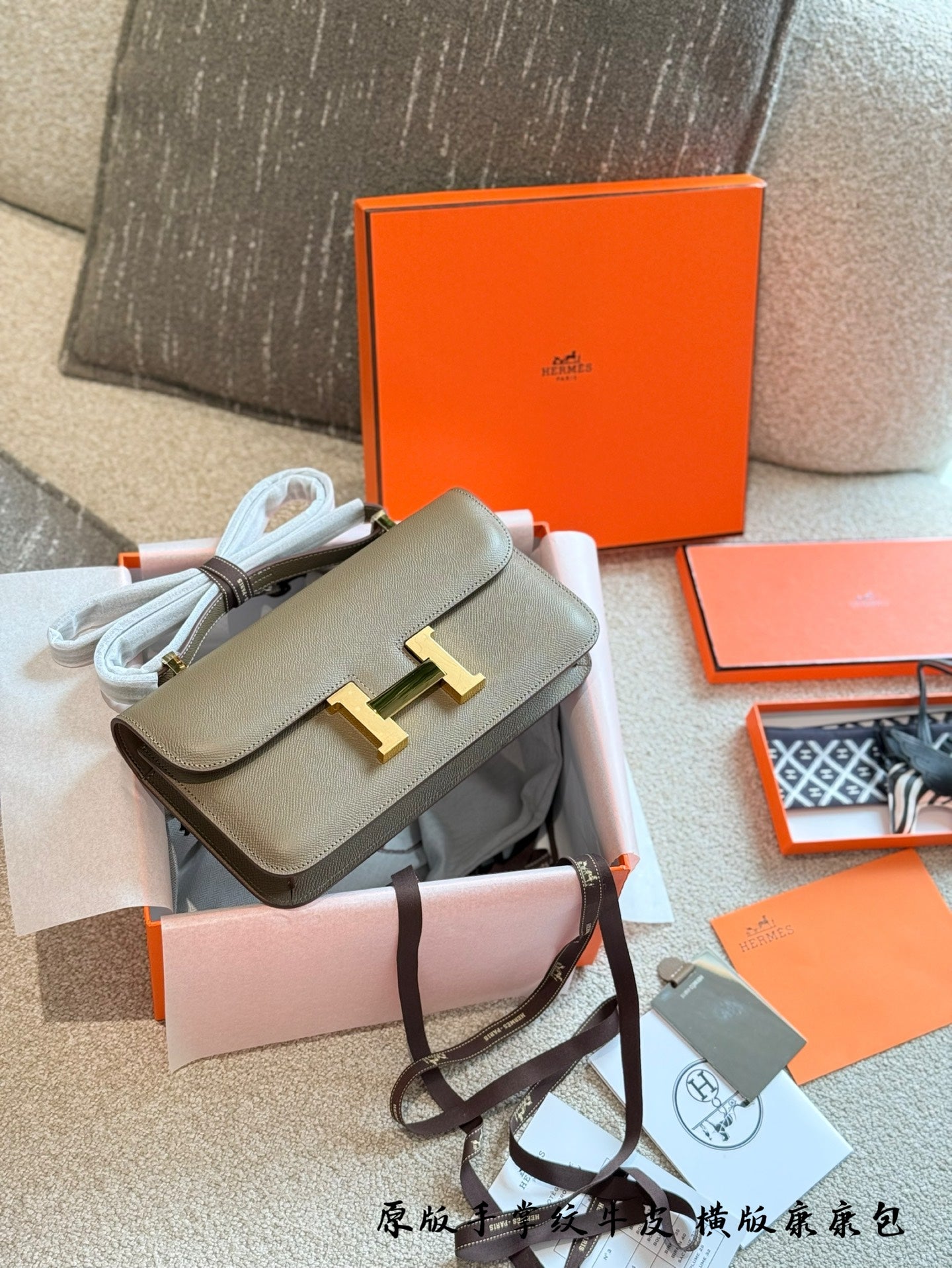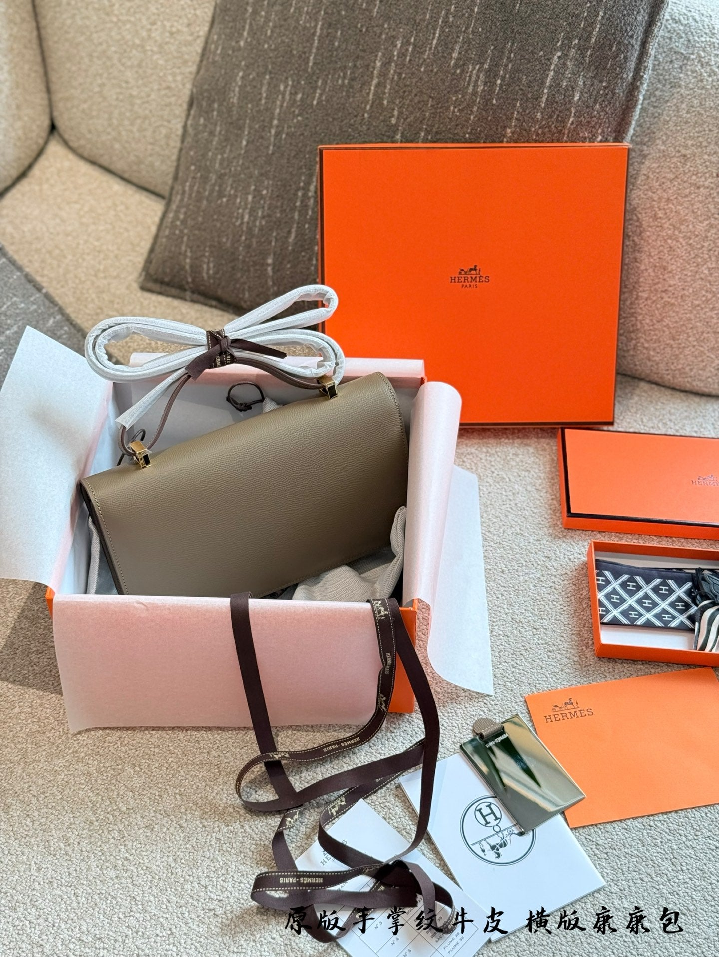 Elevate your fashion with the exquisite Hermès Kangkang Horizontal Handbag. Crafted from premium first-layer cowhide with a stunning palm pattern, this luxurious accessory embodies sophistication and timeless style.