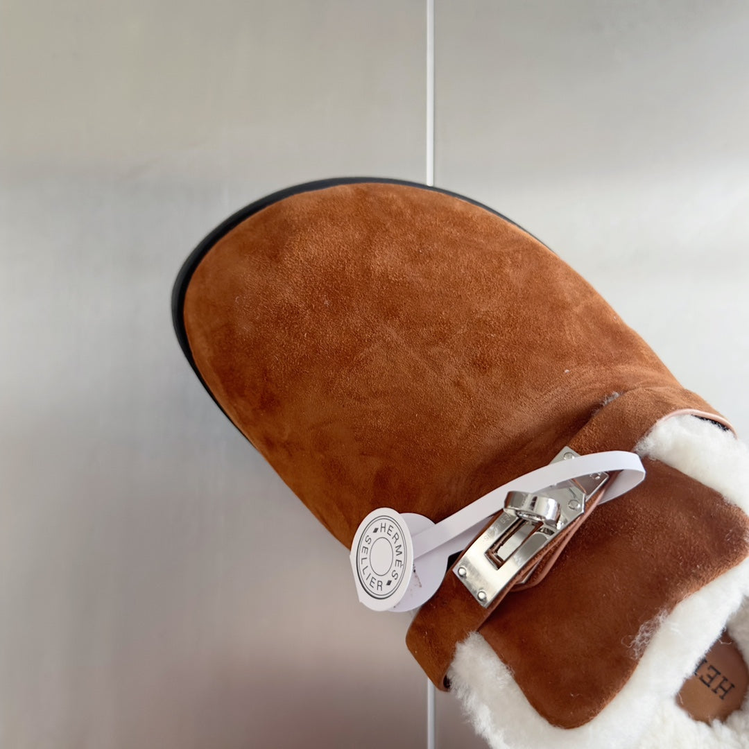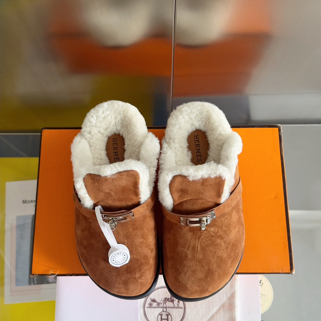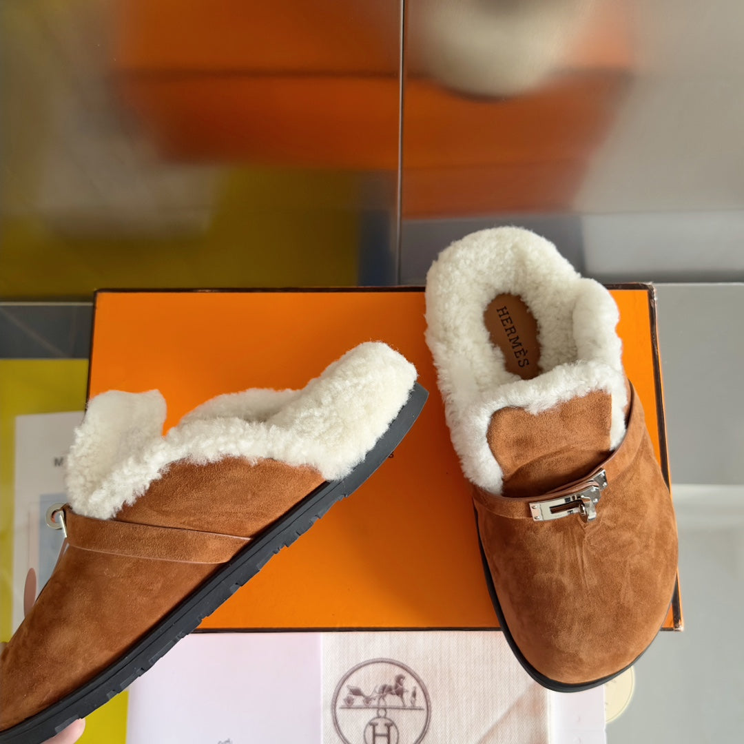 Hermès Kelly Buckle Women's Teddy Mules - Luxury Suede Slippers