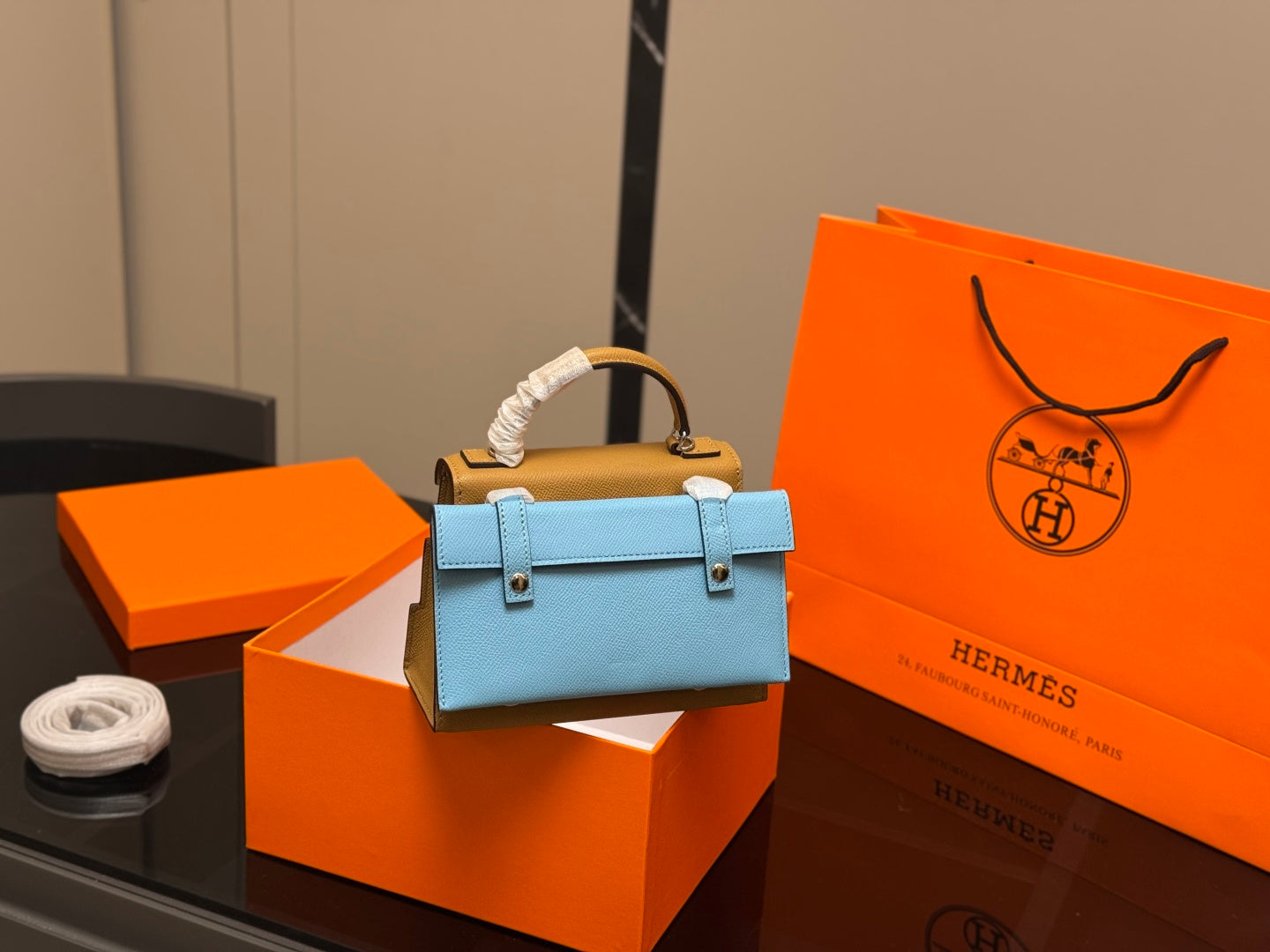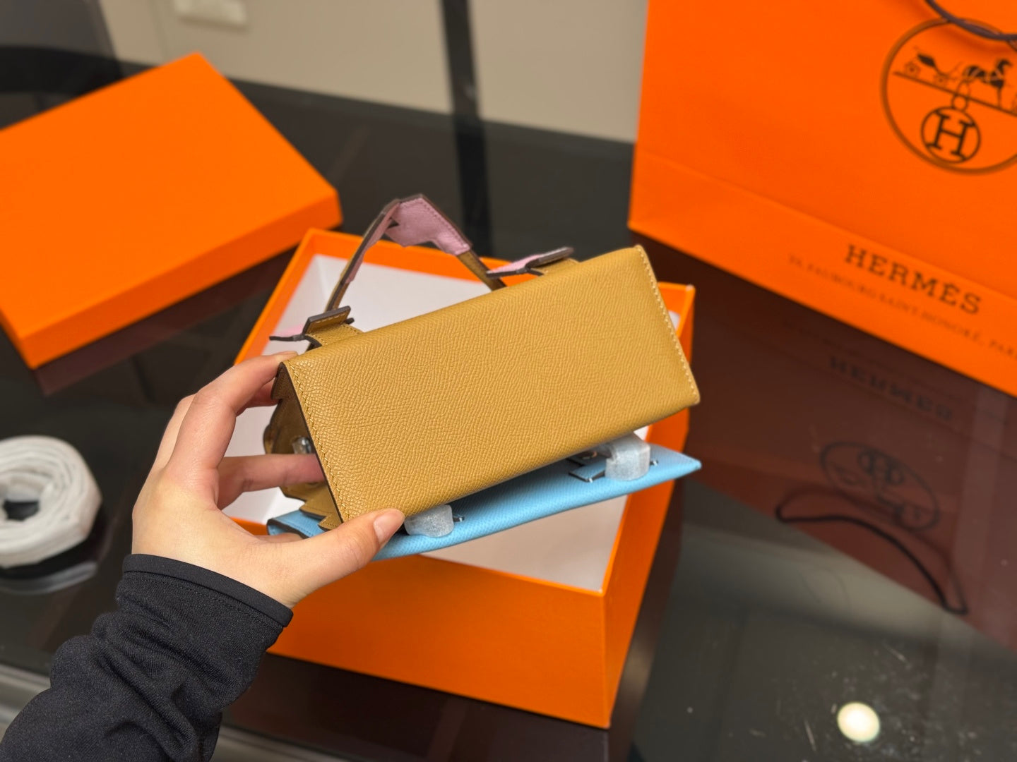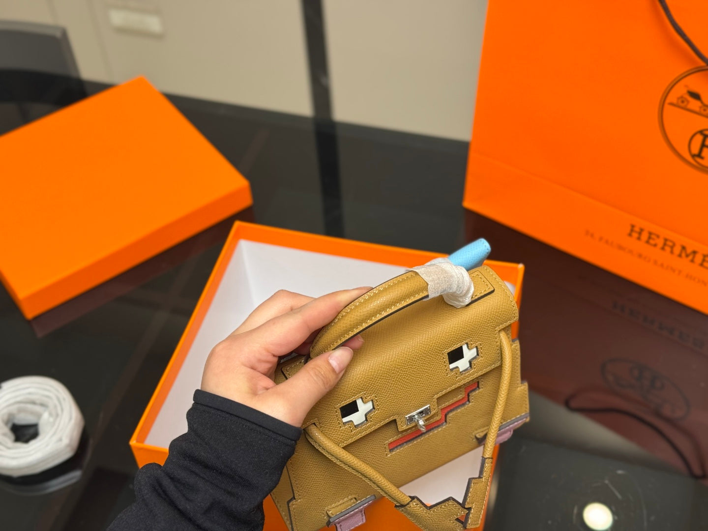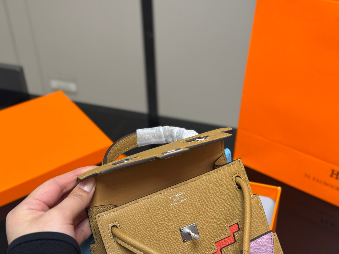 Discover the exquisite Hermès Kelly Doll Picto Mosaic, crafted from premium EPSOM calfskin in a stunning biscuit color, complemented by elegant mallow purple accents. This luxurious 18cm doll comes beautifully packaged in a gift box, making it a perfect gift for collectors and fashion enthusiasts alike. Elevate your collection with this iconic piece of craftsmanship and style.