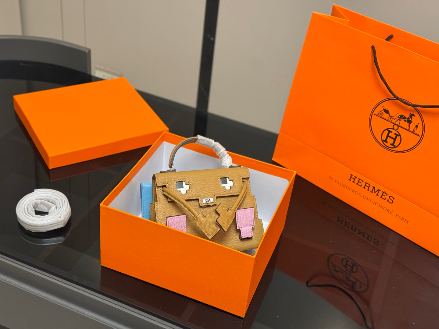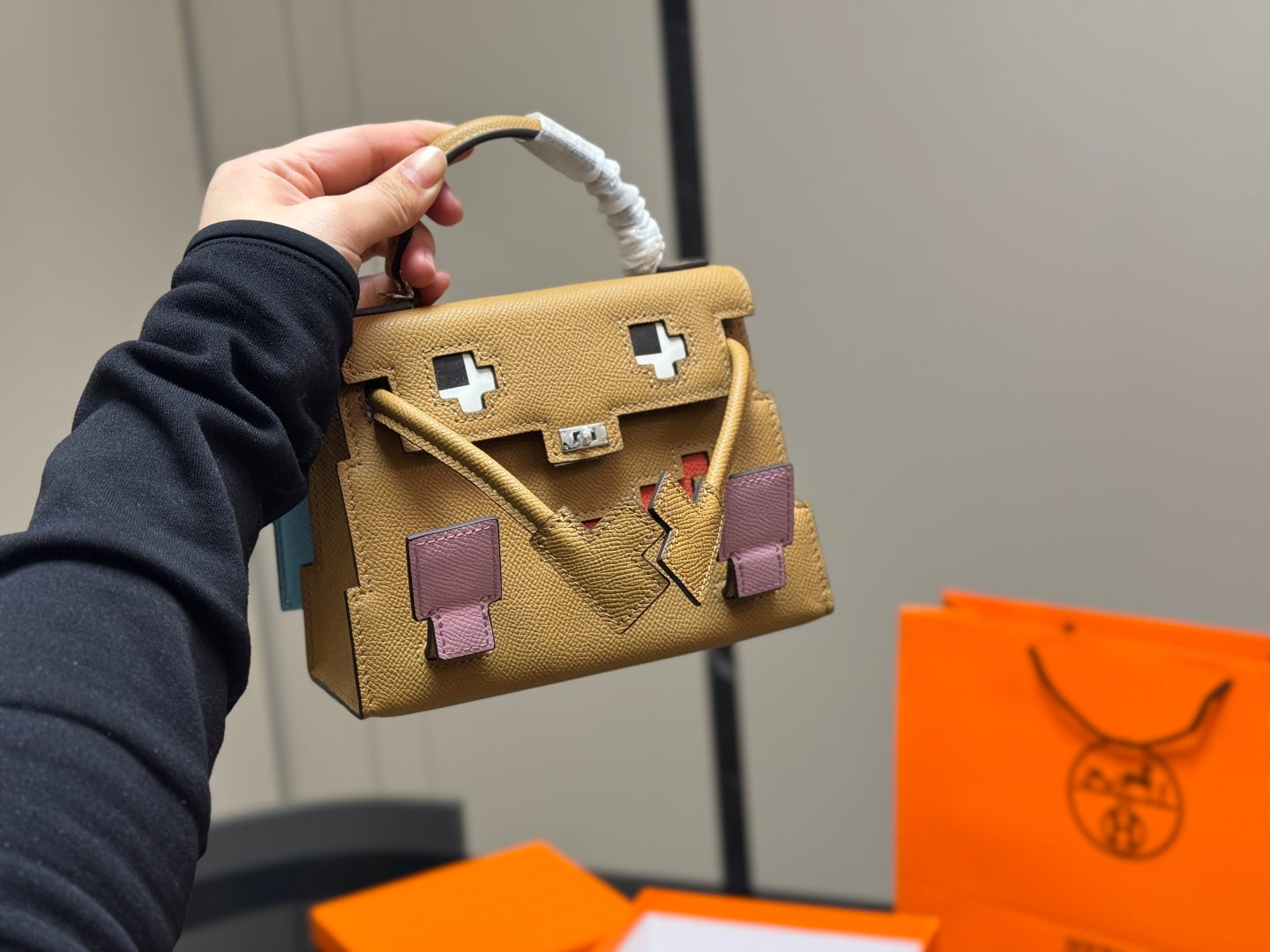 Hermès Kelly Doll Picto Mosaic - Biscuit & Mallow Purple Leather, 18cm