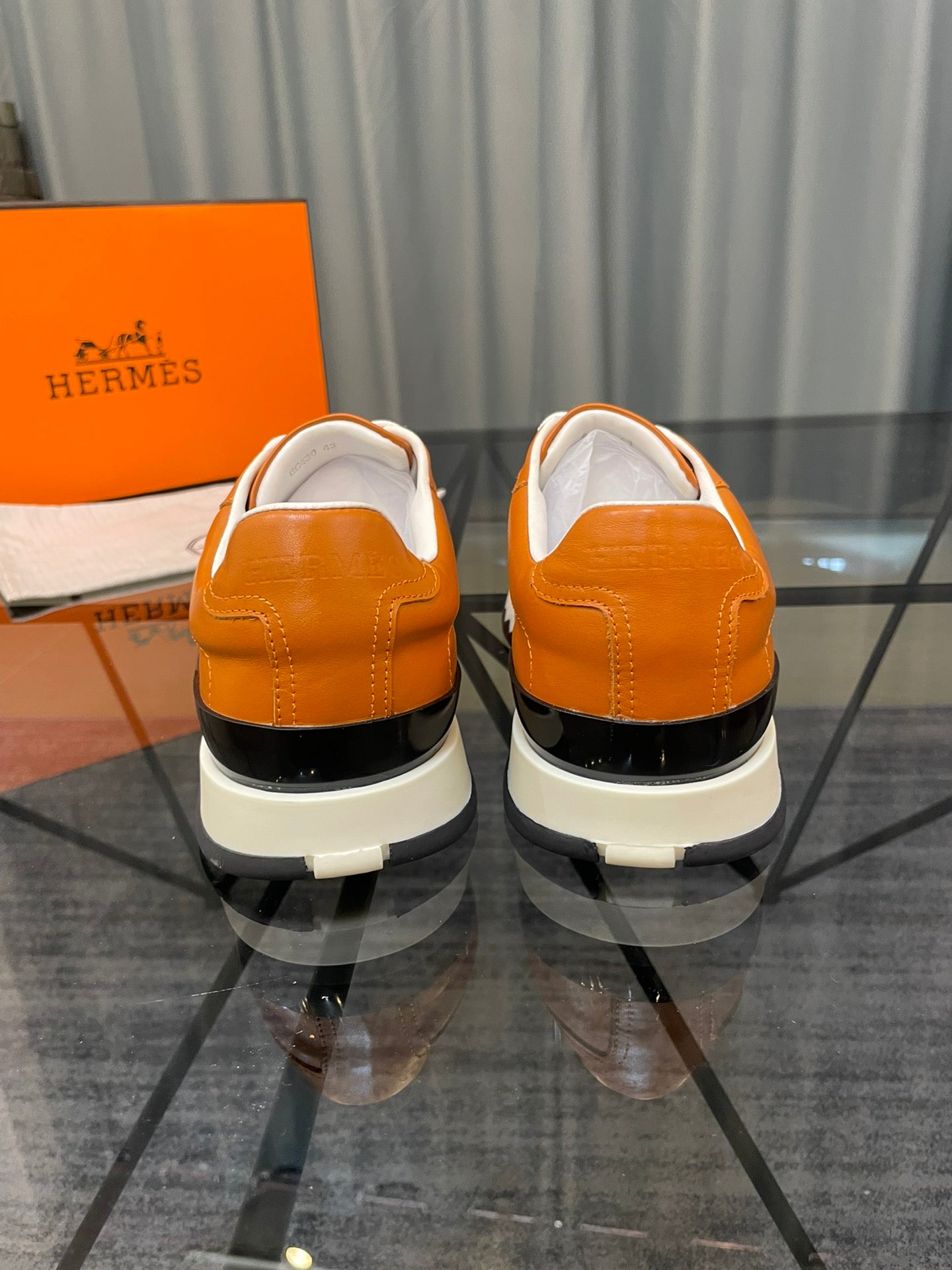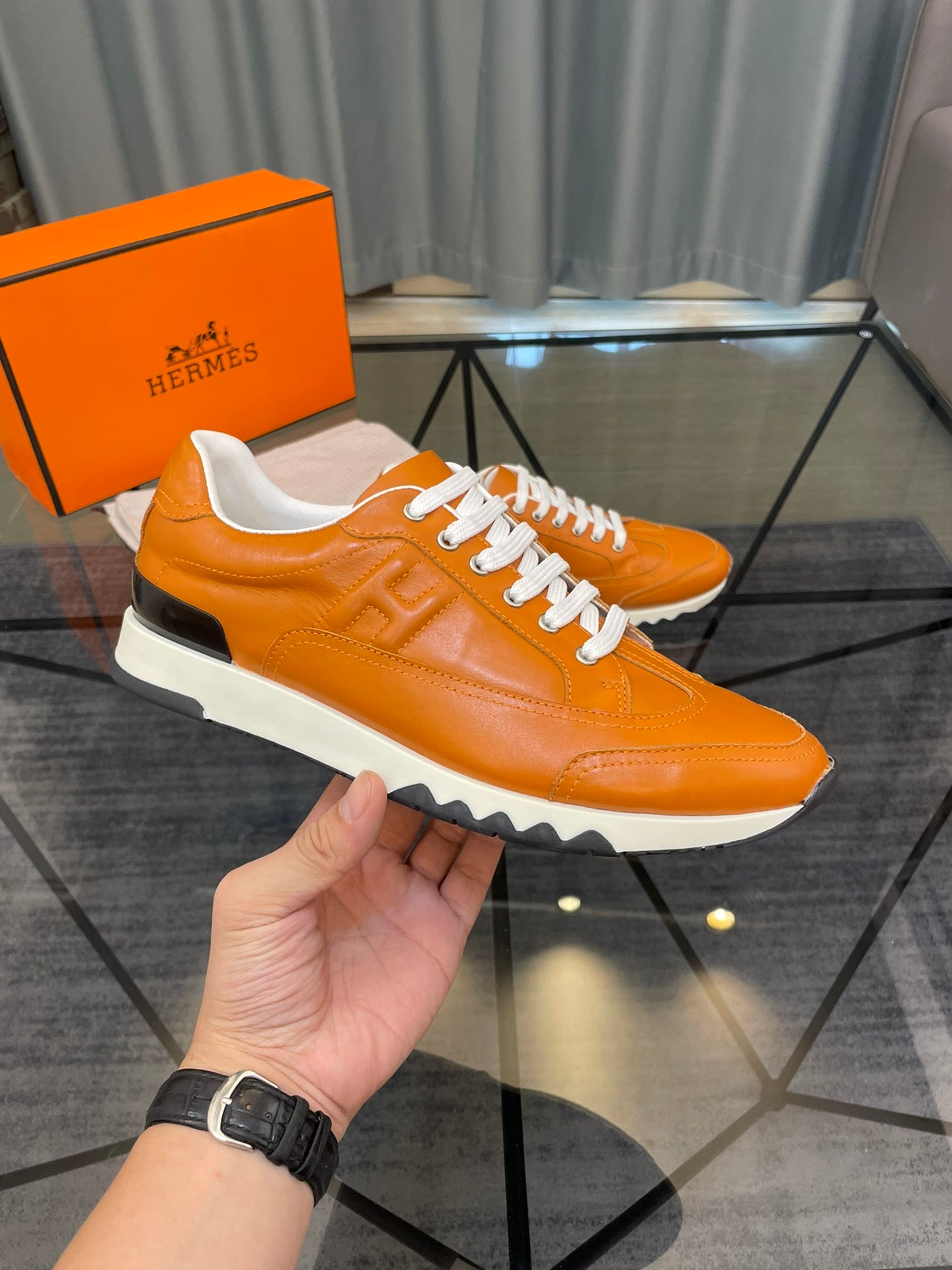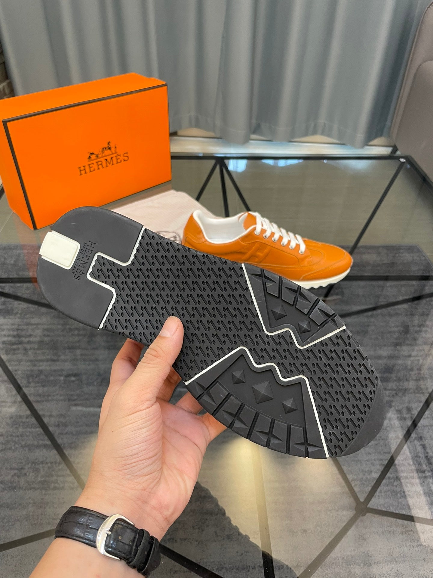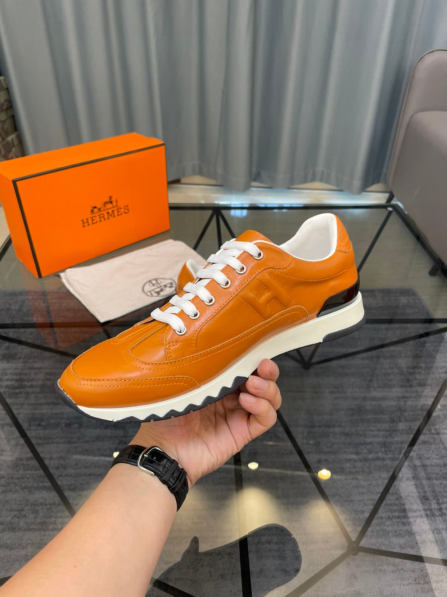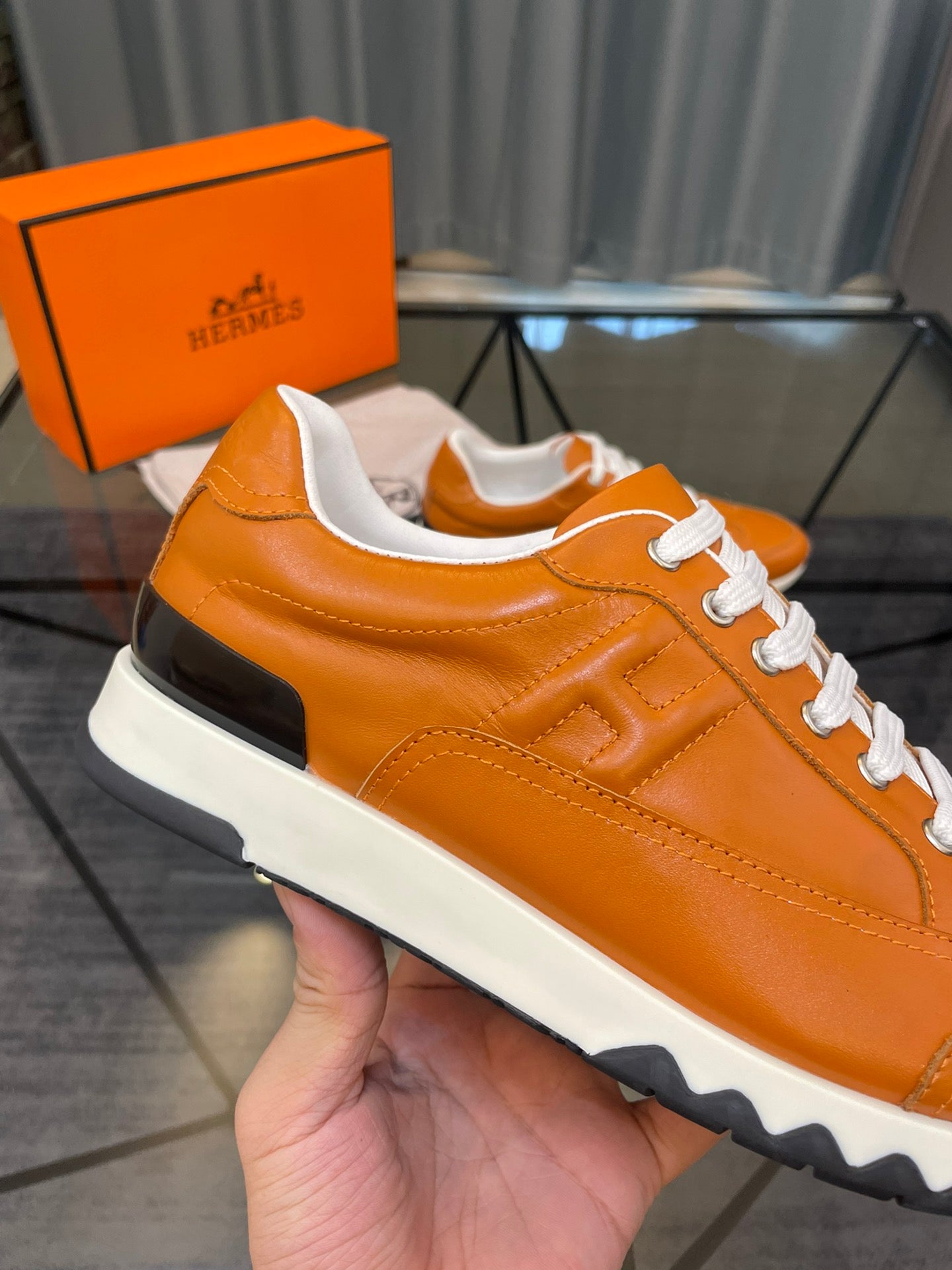 Elevate your footwear collection with the Hermès low-top sneakers, expertly crafted from imported cowhide for a luxurious look and feel. Featuring a soft sheepskin lining for added comfort and an original outsole for superior traction, these sneakers seamlessly blend style and functionality. Available in sizes 38-44, with the option for custom sizing up to 45. Experience the perfect balance of sophistication and everyday wear with Hermès.