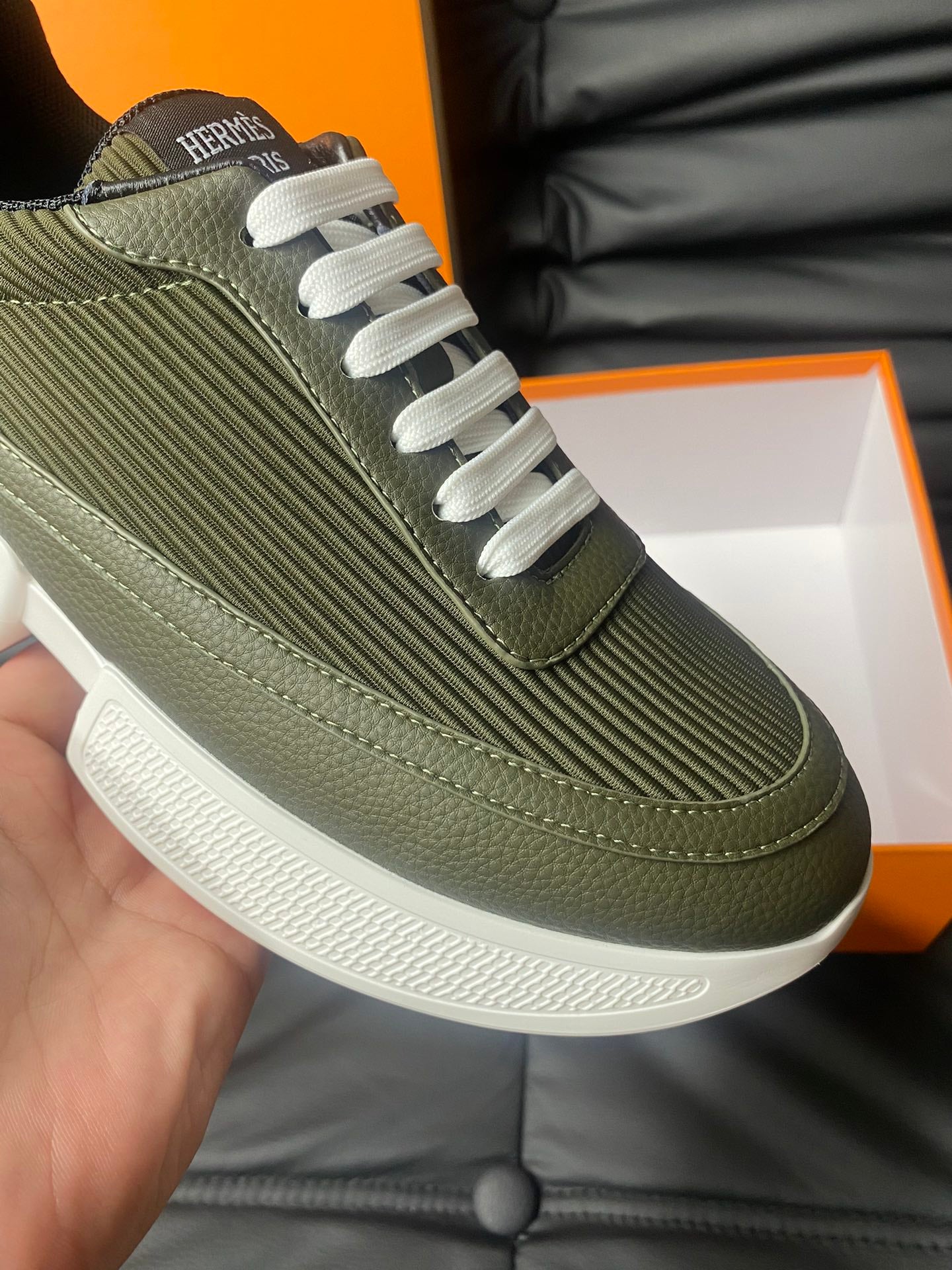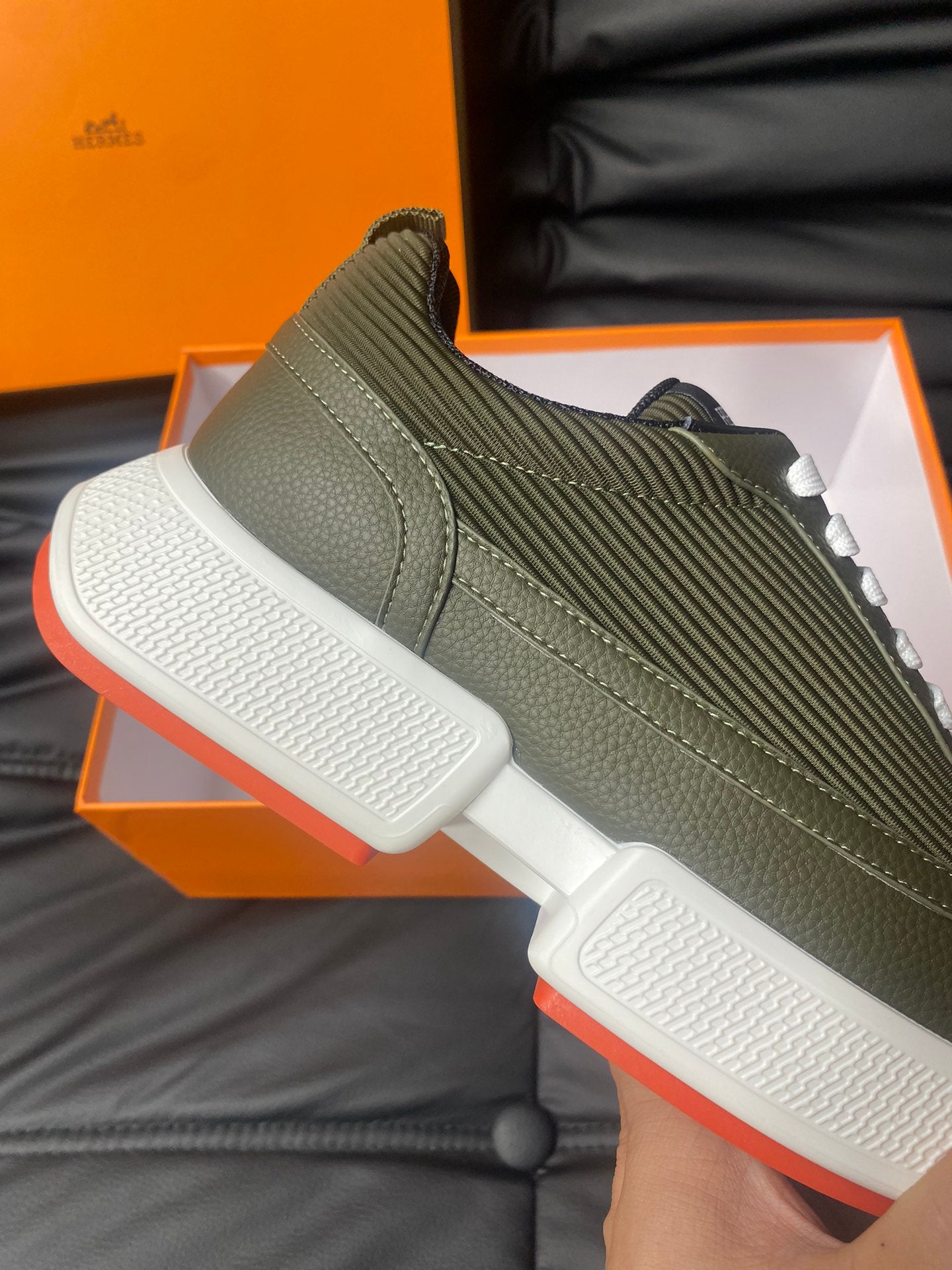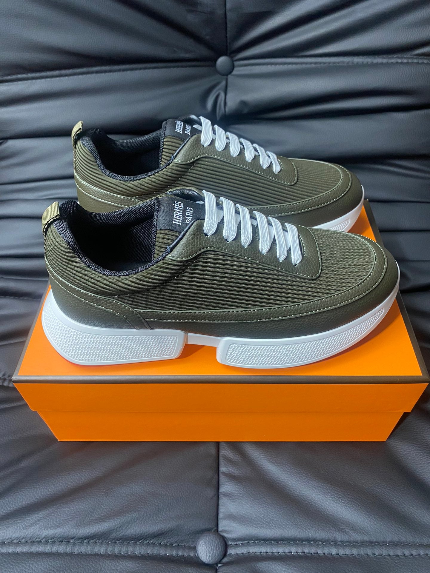 Discover the ultimate in luxury and comfort with the Hermès Premium Napa Calfskin Sneakers. Meticulously crafted from high-end materials, these sneakers feature an upper made of sumptuous Napa calfskin and an embossed thickened Lycra for a sophisticated look.