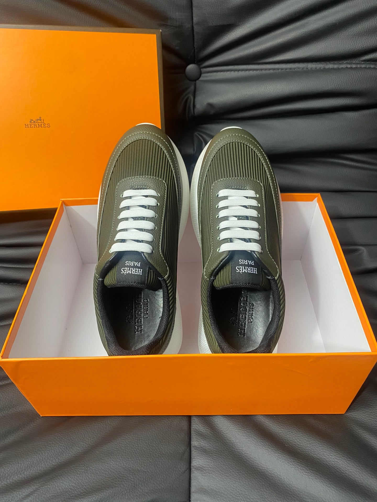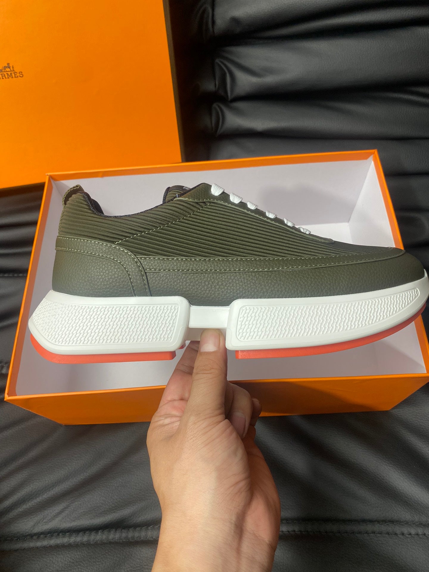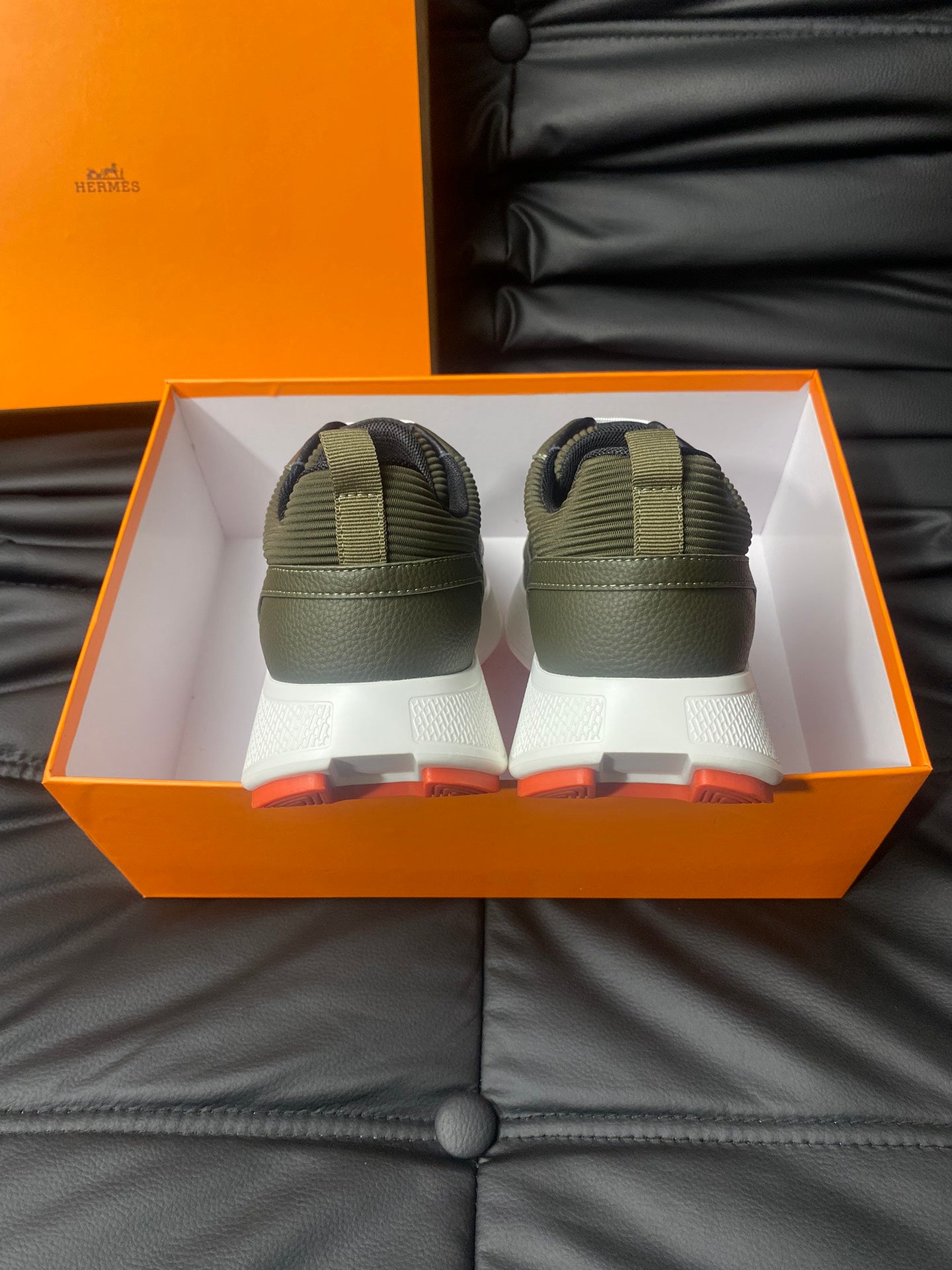 Discover the ultimate in luxury and comfort with the Hermès Premium Napa Calfskin Sneakers. Meticulously crafted from high-end materials, these sneakers feature an upper made of sumptuous Napa calfskin and an embossed thickened Lycra for a sophisticated look.