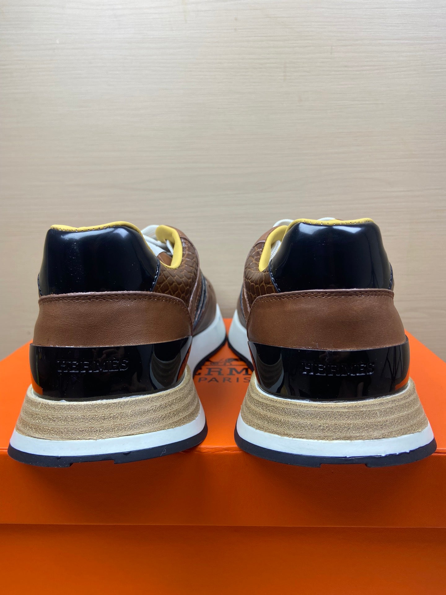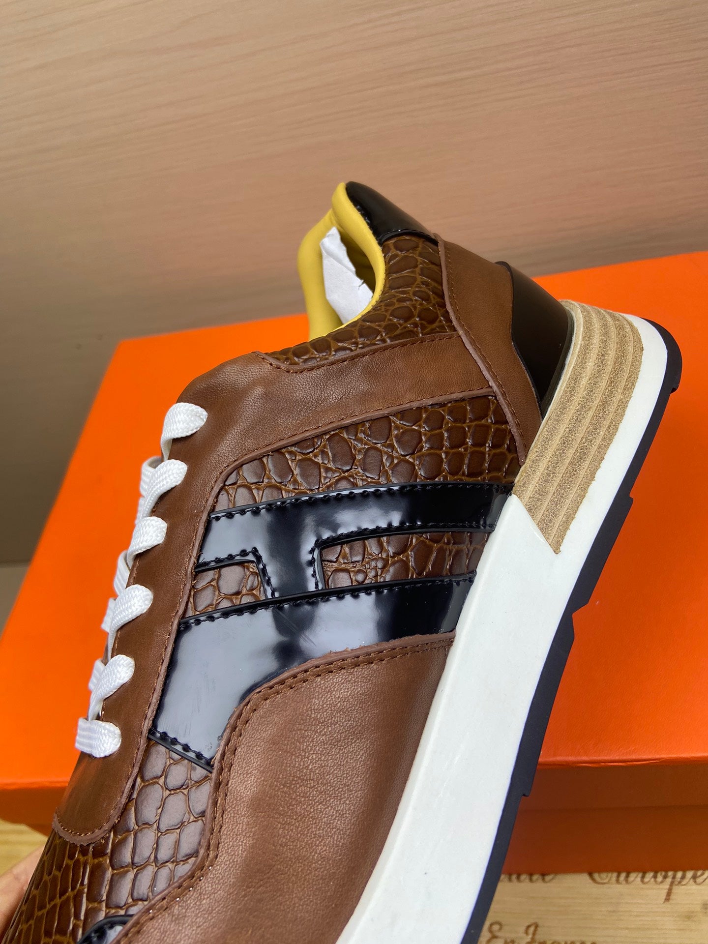 Discover the Hermès SS24 Spring/Summer sports shoes, designed for the modern athlete. These new H Heros sports shoes feature a sleek and simple upper, providing a lightweight, comfortable, and breathable fit for all-day wear. The dynamic contrasting color design adds a fashionable edge to your athletic wardrobe. Enhancements include natural rubber inserts at the toe and elastic webbing at the heel for an innovative, stylish look. Available in sizes 38-45, these shoes can be customized to meet your needs. Elevate your active lifestyle with Hermès!