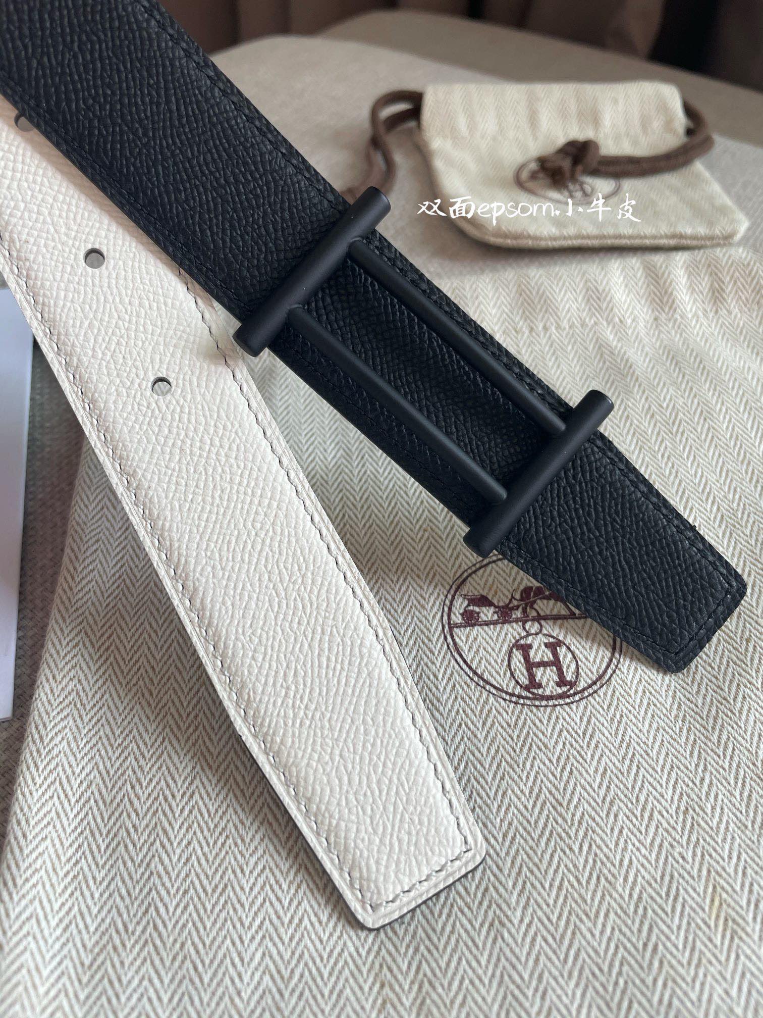 Hermes 32MM Double-Sided Epsom Calfskin Belt with Stainless Steel Hardware