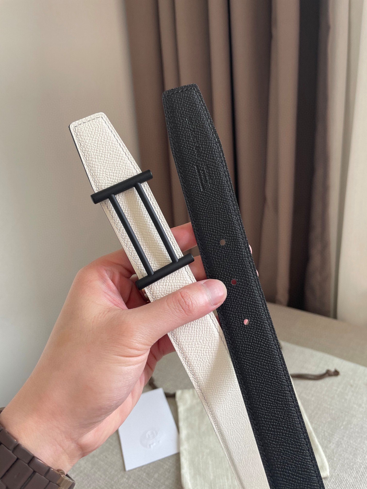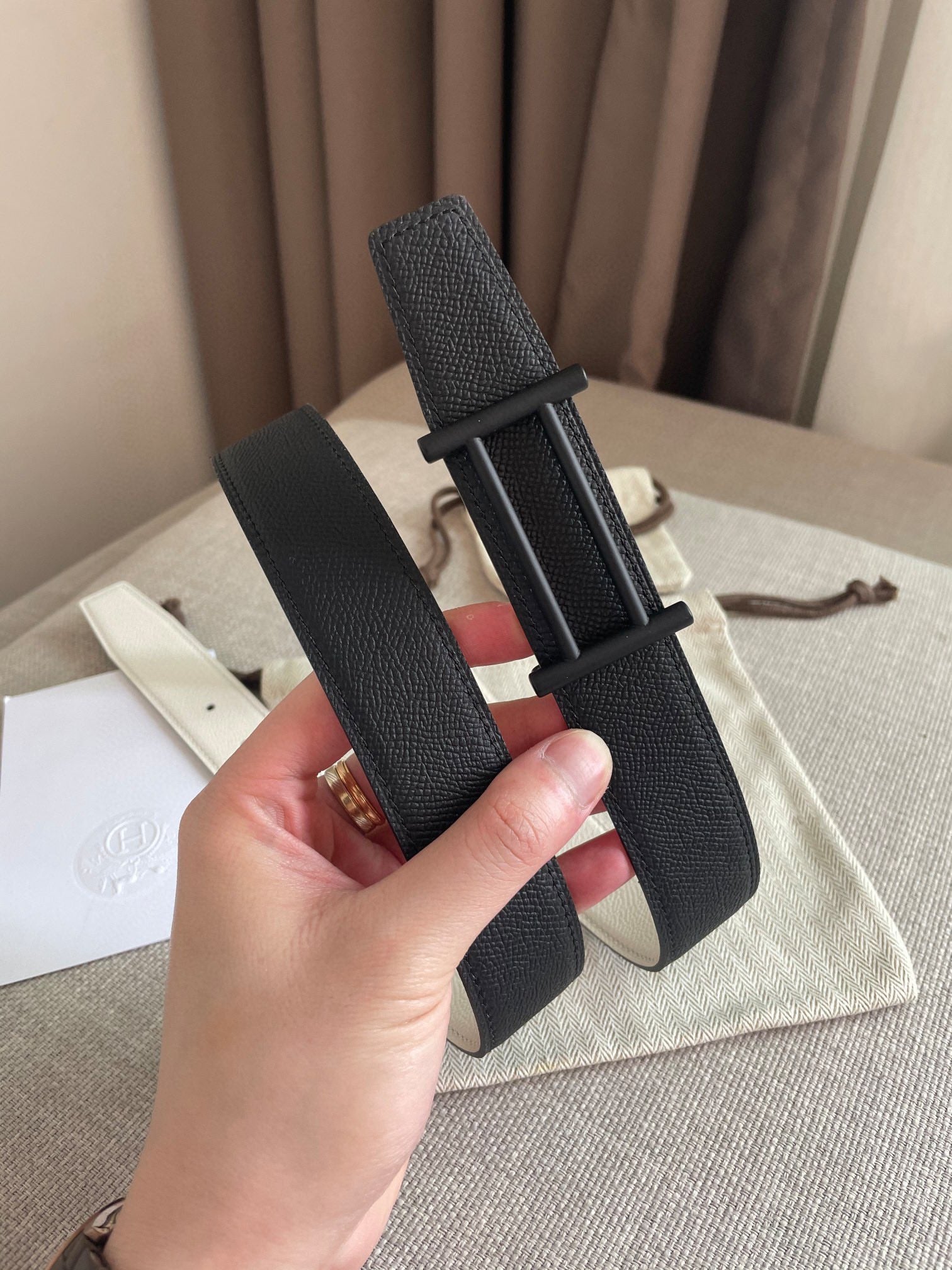 Elevate your style with the Hermes 32MM Belt, expertly crafted from imported double-sided Epsom calfskin for a luxurious feel. Featuring durable stainless steel boutique hardware, this versatile accessory seamlessly complements any outfit. Its reversible design offers additional styling options, making it the perfect addition to your wardrobe. Experience the perfect blend of elegance and functionality with this iconic piece.