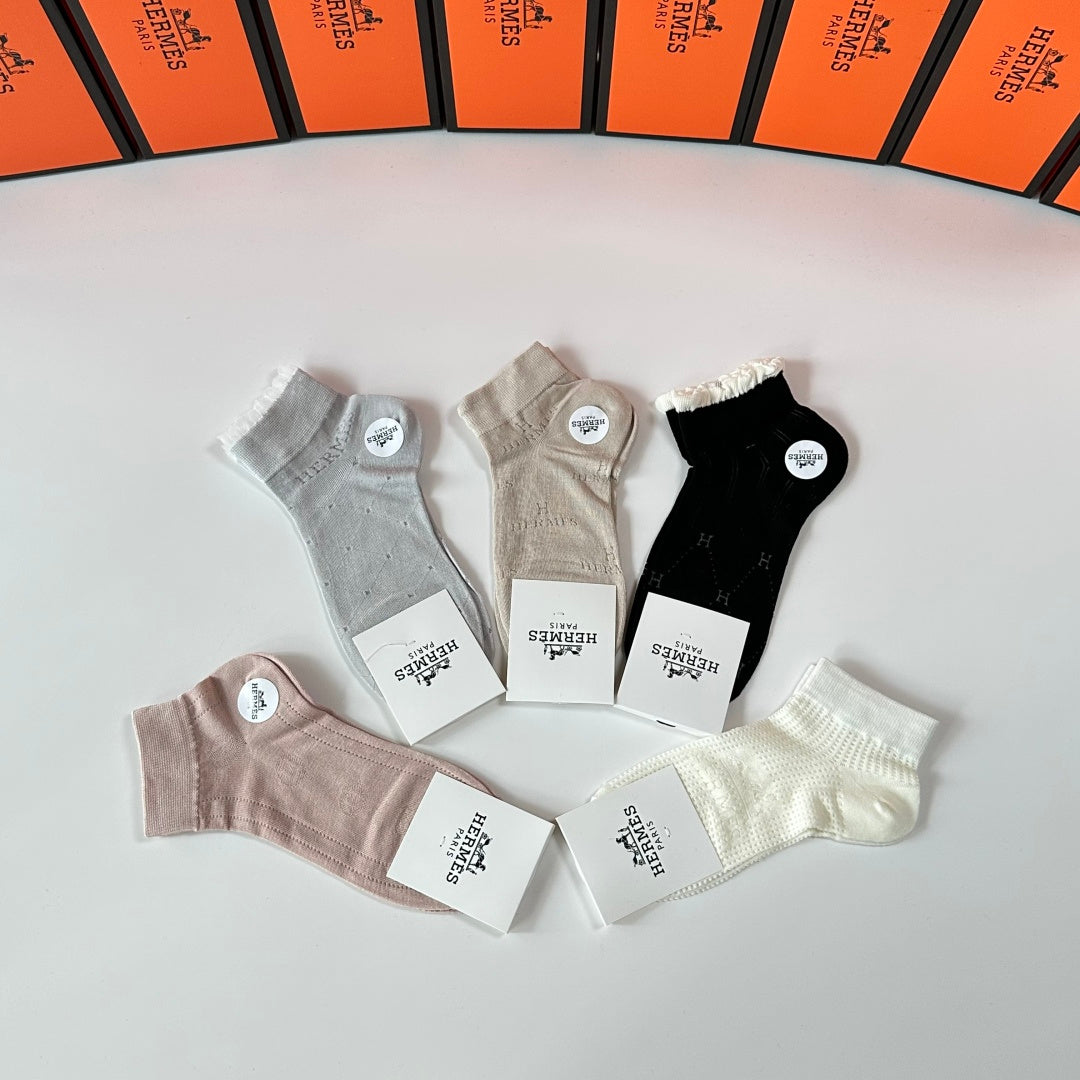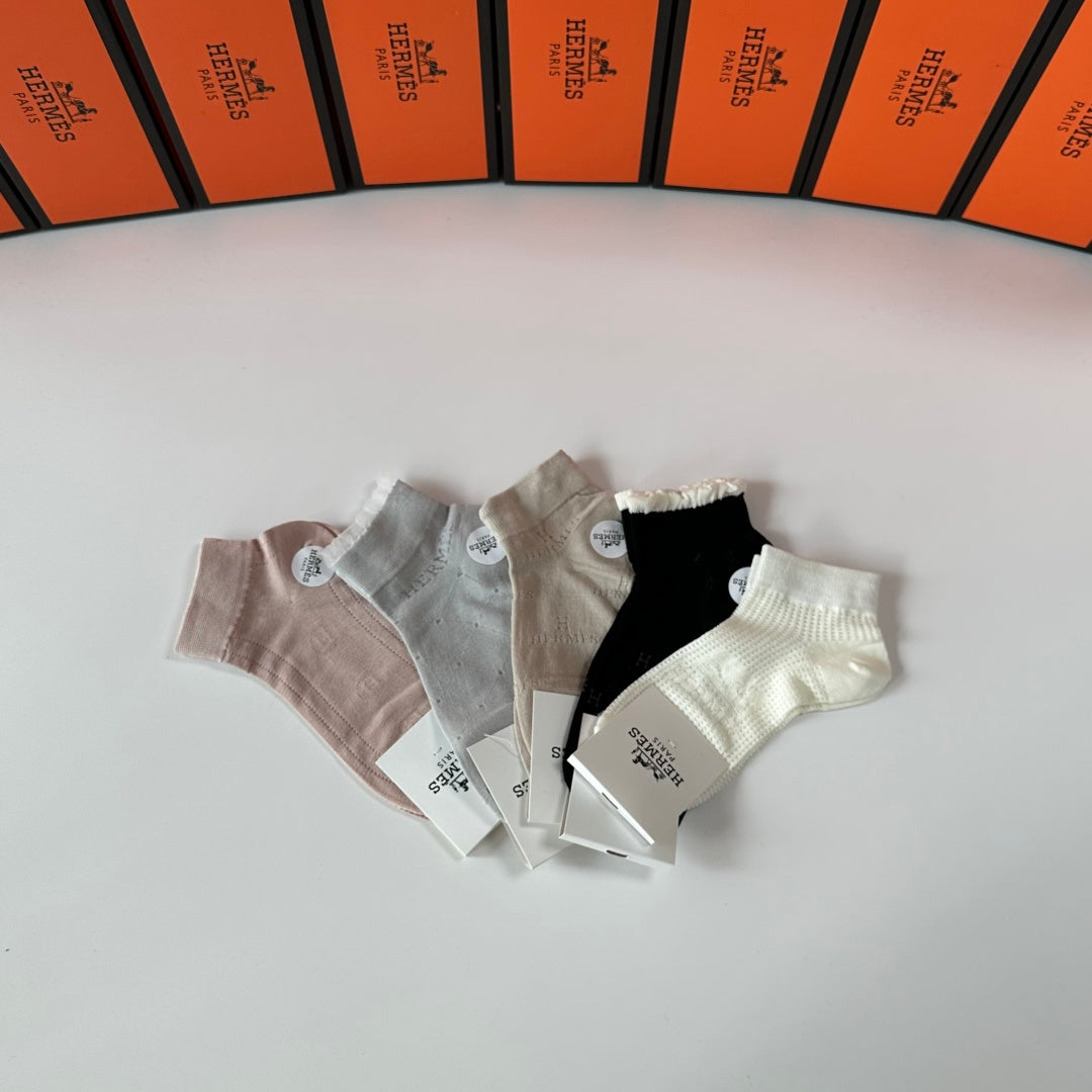 Hermes 5-Pair Short and Medium Style Pile Socks