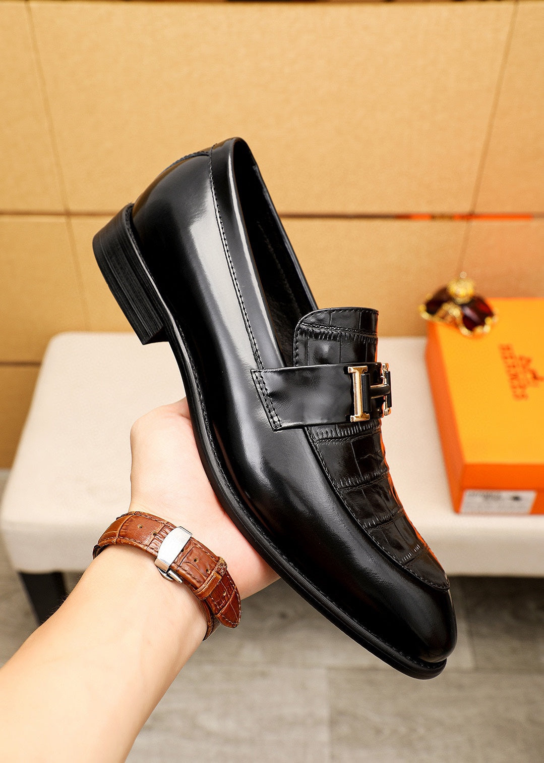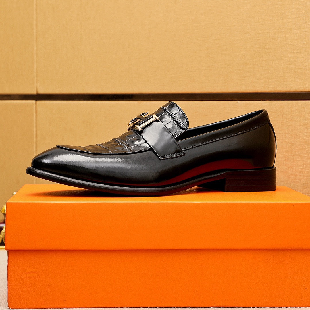Elevate your footwear collection with the HERMES Casual Leather Shoes, meticulously crafted for unparalleled comfort and style. These shoes feature a premium first-layer calfskin embossed upper, paired with a classic hardware buckle for a touch of sophistication. The imported water-dyed cowhide lining ensures a luxurious feel, while the strong three-dimensional visual effect enhances their elegance. Available in sizes 39-44, with custom sizing options, these shoes are designed to suit every individual's preference. Choose from two classic colors to complement any outfit. Experience the perfect blend of fashion and functionality with HERMES.