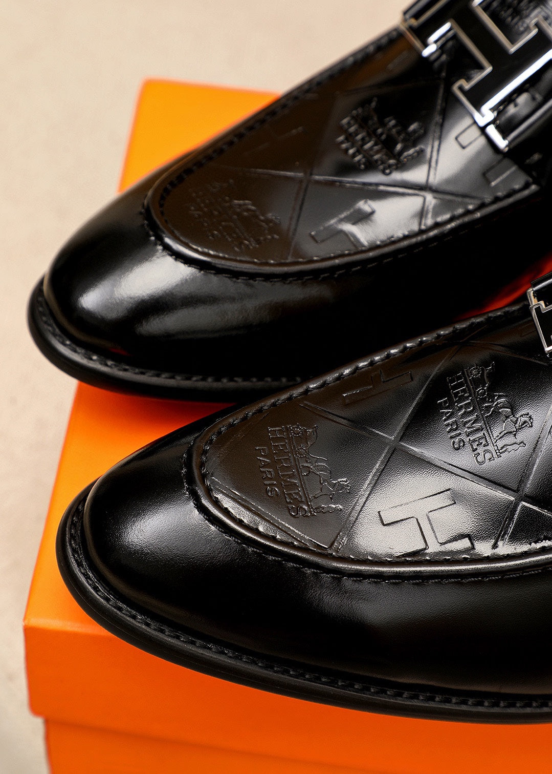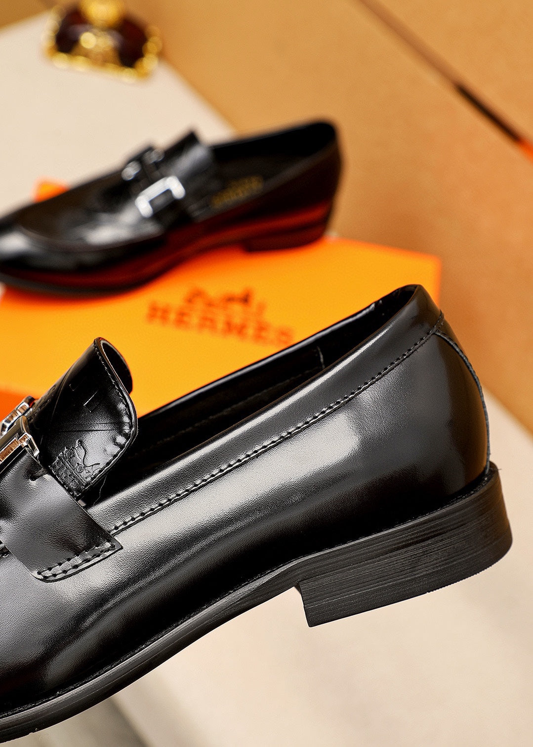 Step into luxury with the Hermes Casual Leather Shoes, expertly crafted from imported first-layer calfskin with an embossed finish. Featuring a classic hardware buckle for a refined touch, these shoes are lined with high-quality water-dyed cowhide for ultimate comfort. The shoes boast a strong three-dimensional visual effect, perfectly complemented by a durable combined outsole. Available in sizes 39-44, with custom sizing available for 38, 45, and 46. Choose from a stylish single color option to elevate your casual wardrobe. Experience the perfect blend of sophistication and comfort with Hermes footwear.