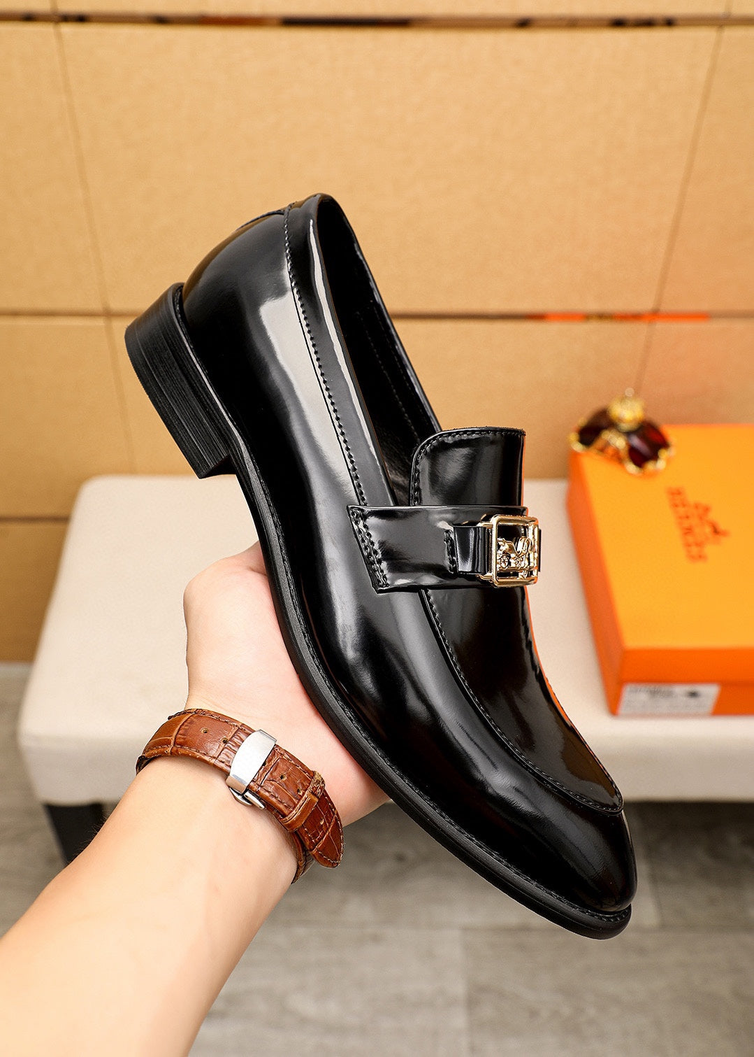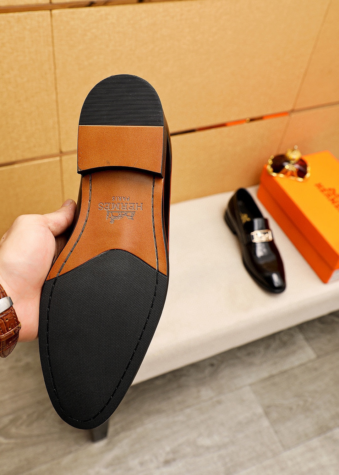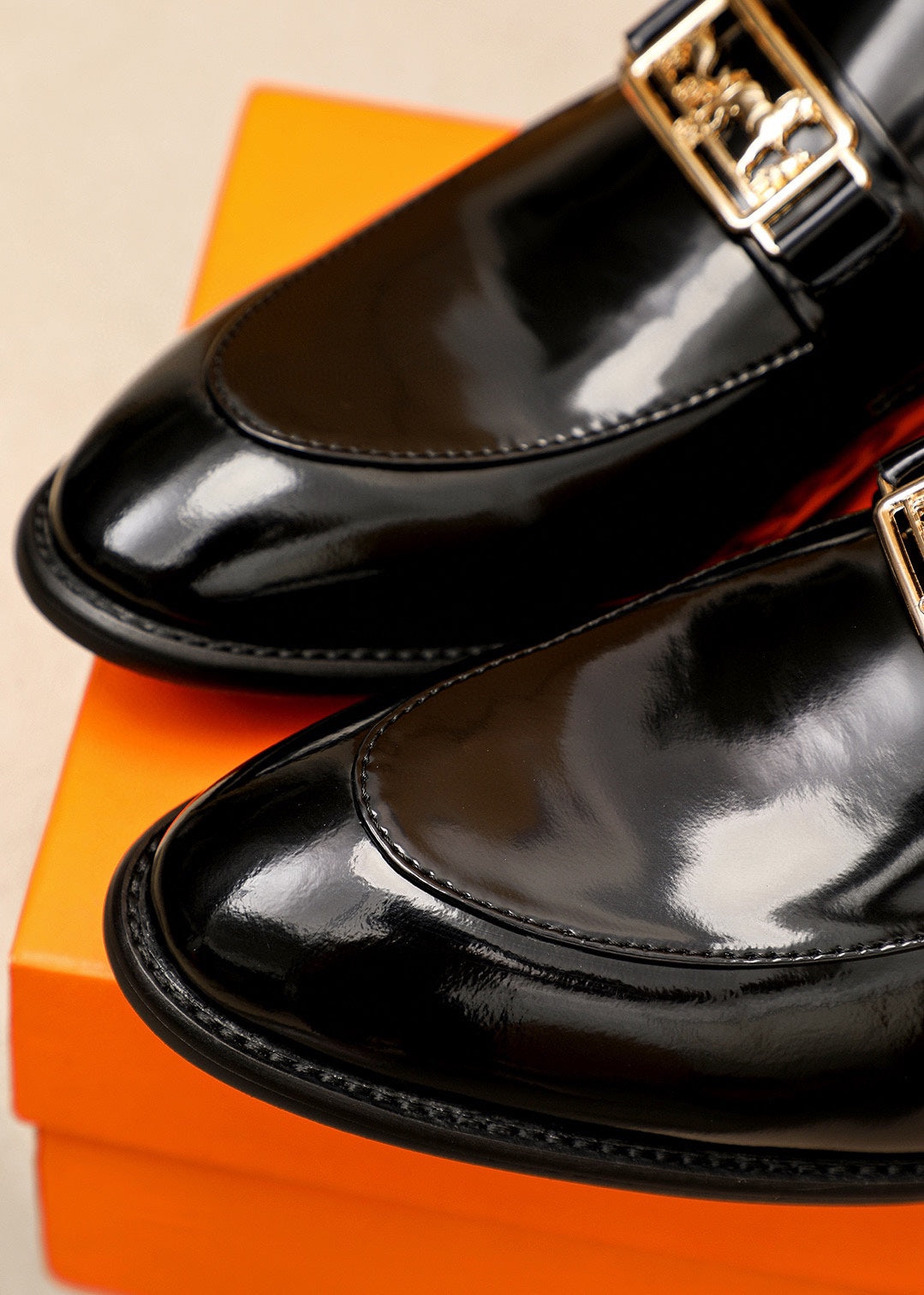 Discover the perfect blend of style and comfort with the Hermes Casual Leather Shoes. Crafted from imported first-layer beaded cowhide, these shoes feature a classic hardware buckle and a luxuriously soft, water-dyed cowhide lining for unparalleled comfort. The innovative design presents a strong three-dimensional visual effect, ensuring you make a statement wherever you go.