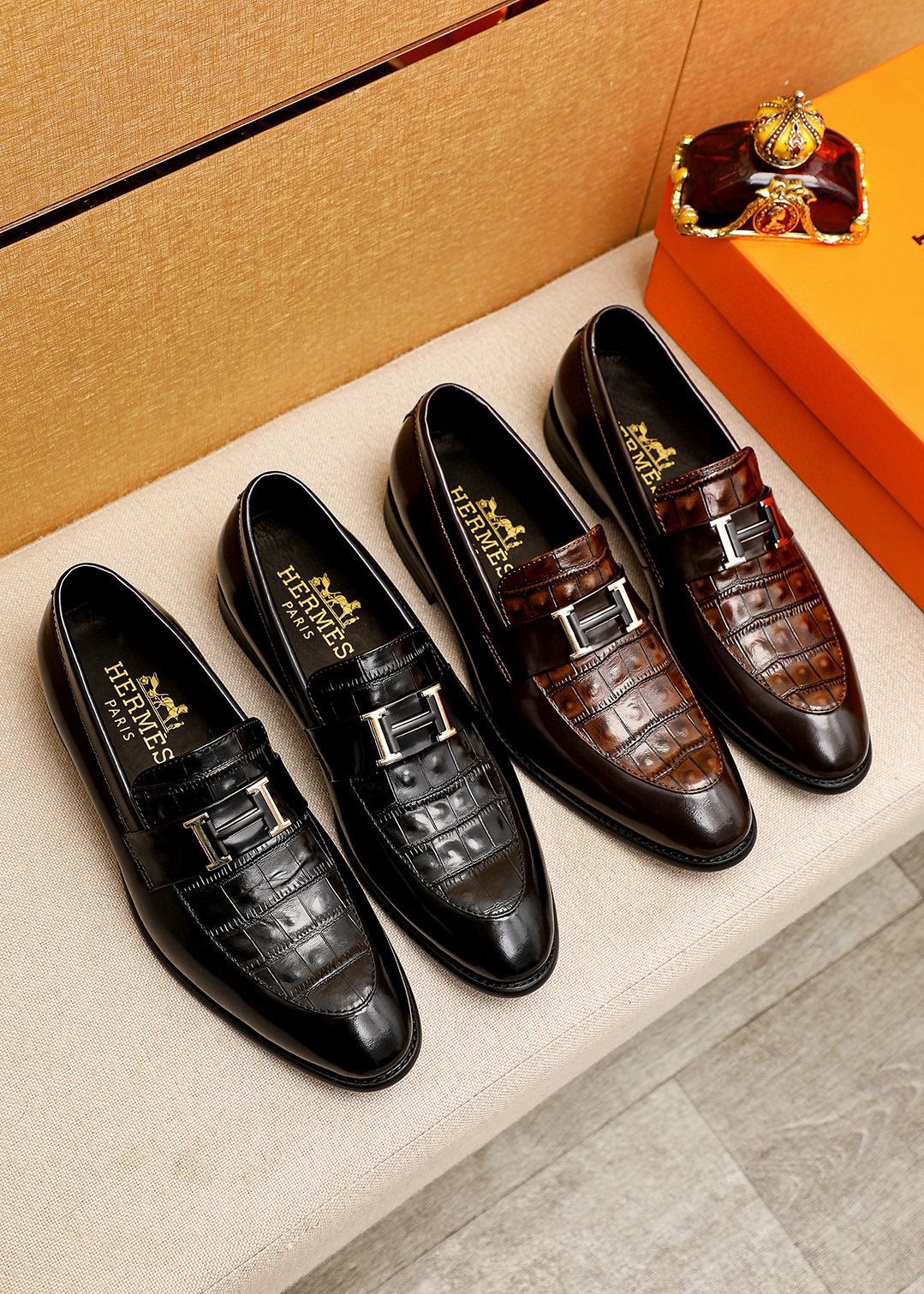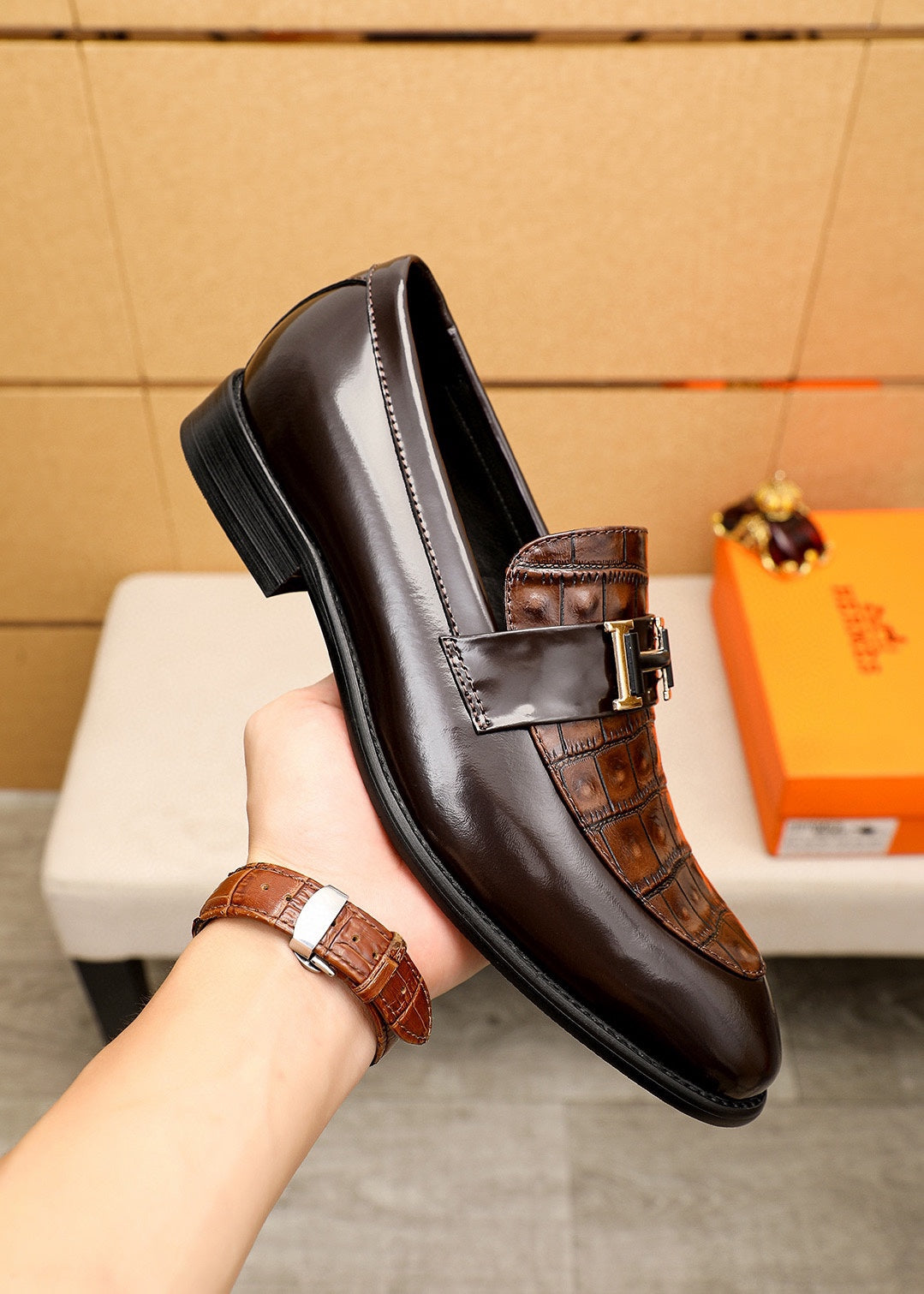 Elevate your footwear collection with the Hermes Casual Leather Shoes, expertly crafted from premium first-layer calfskin. Featuring an embossed upper and a classic hardware buckle, these shoes combine luxury with comfort. The meticulously designed imported water-dyed cowhide lining offers a sumptuous feel, while the strong three-dimensional visual effect and durable combined outsole ensure both style and longevity. Available in two sophisticated colors, these shoes are perfect for any casual occasion. Sizes range from 39 to 44, with custom sizing options (38, 45, 46) available for a perfect fit. Experience the elegance and quality of Hermes in every step.
