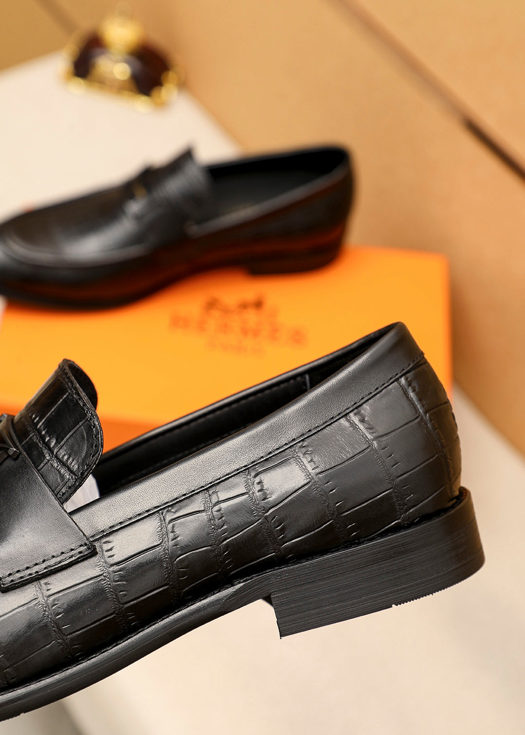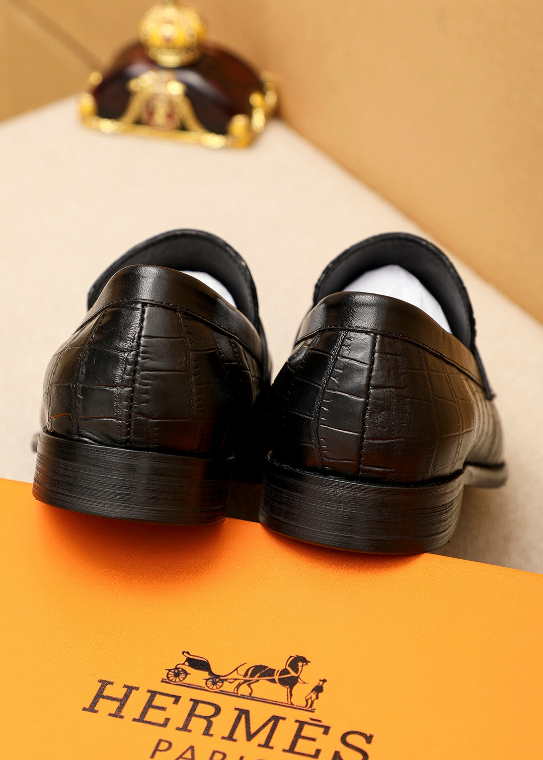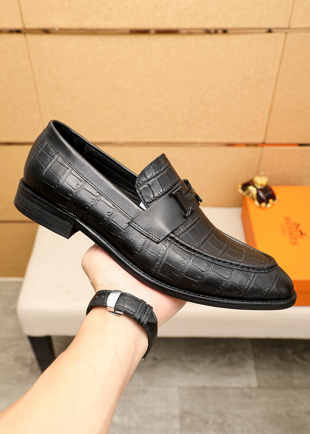 Elevate your footwear collection with the exquisite Hermes Casual Leather Shoes. Crafted from high-quality imported first-layer calfskin, these shoes feature an embossed upper and a classic hardware buckle for a touch of sophistication. The interior is lined with luxurious water-dyed cowhide, ensuring ultimate comfort and durability.