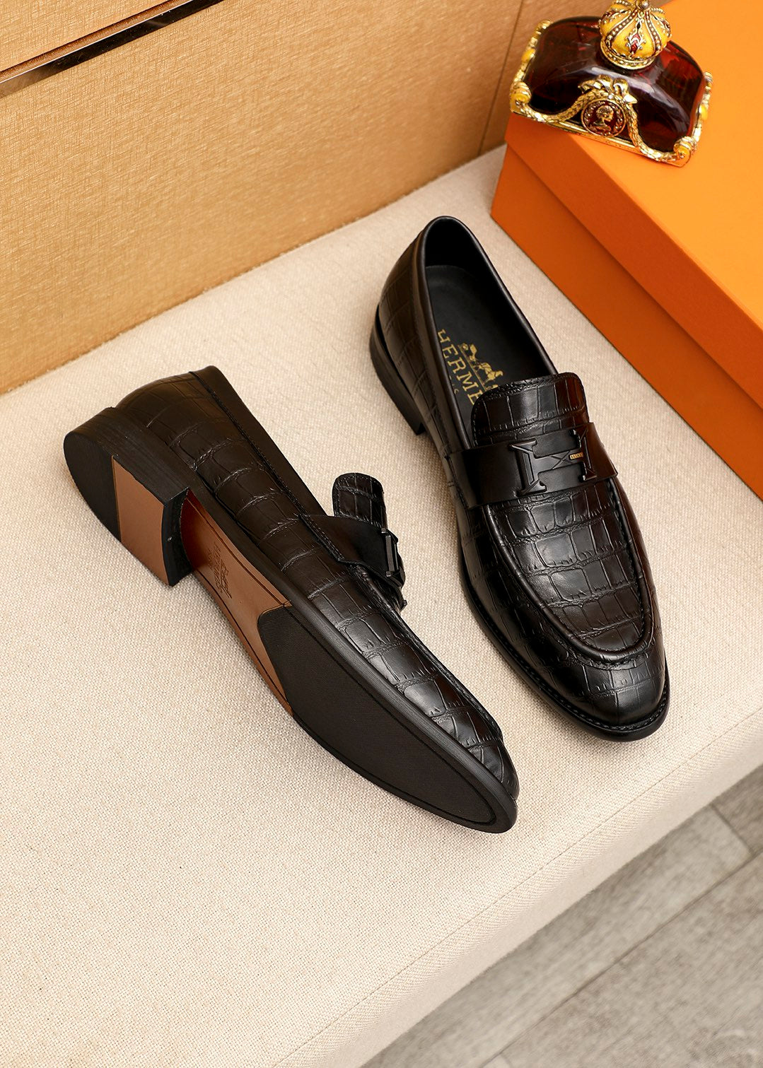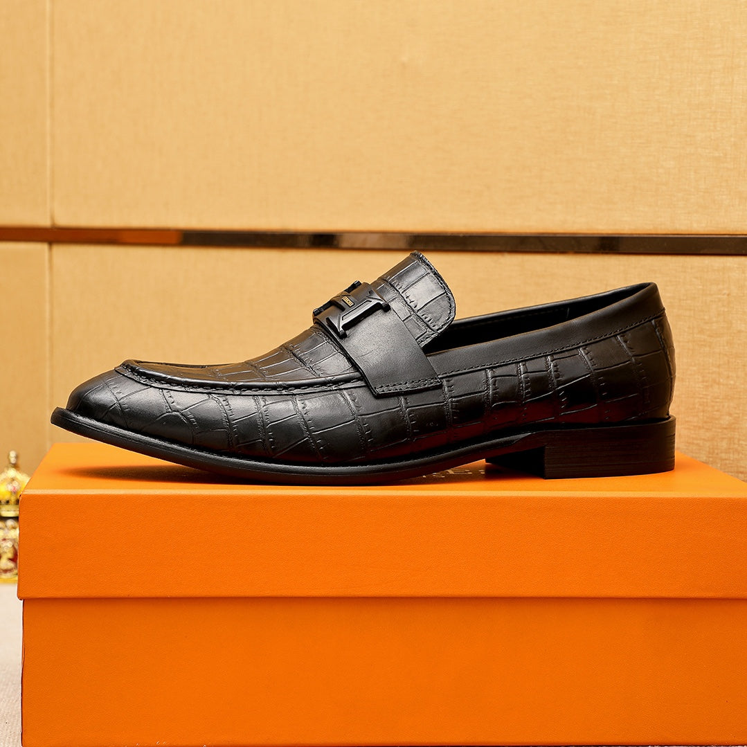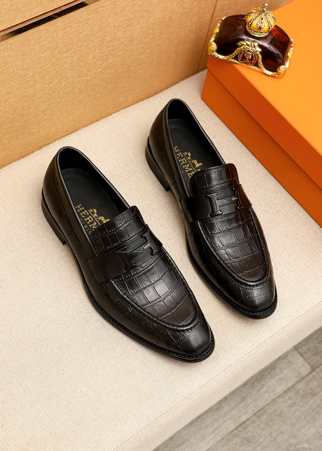 Elevate your footwear collection with the exquisite Hermes Casual Leather Shoes. Crafted from high-quality imported first-layer calfskin, these shoes feature an embossed upper and a classic hardware buckle for a touch of sophistication. The interior is lined with luxurious water-dyed cowhide, ensuring ultimate comfort and durability.