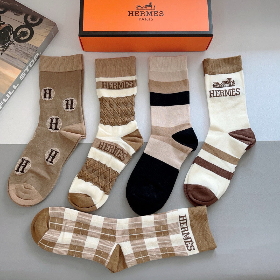 Hermes High-Quality Long Calf Socks - 5 Pairs