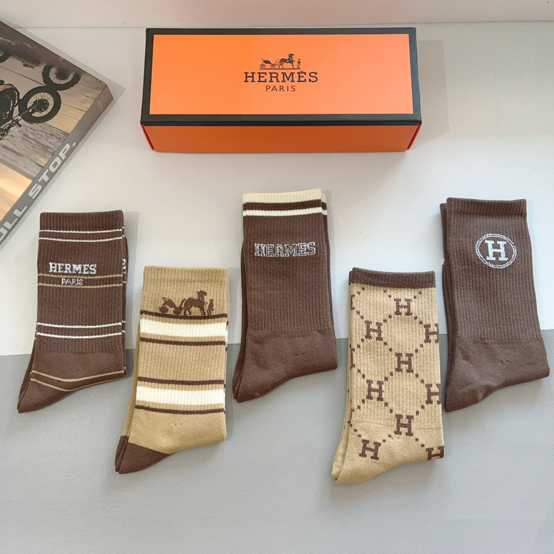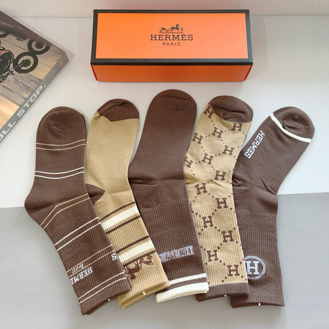 Hermes High-Quality Long Calf Socks - 5 Pairs Box Set