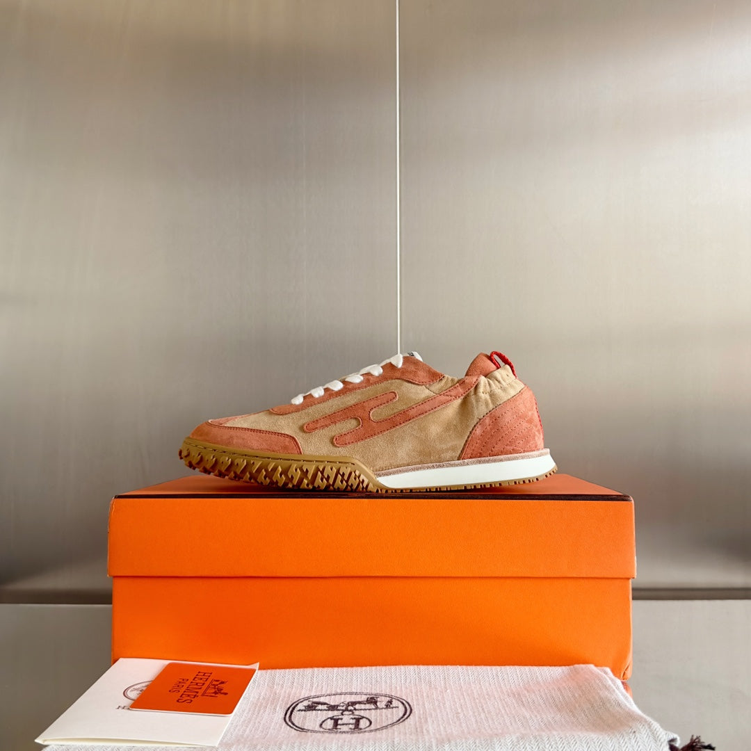 Step up your style game with the Hermes Jet Series Couples Casual Sports Shoes. Designed for both men and women, these premium sneakers blend comfort with an avant-garde retro aesthetic. Crafted from original customized cowhide and adorned with contrasting patterns and iconic "H" details, these shoes are a statement of sophistication.